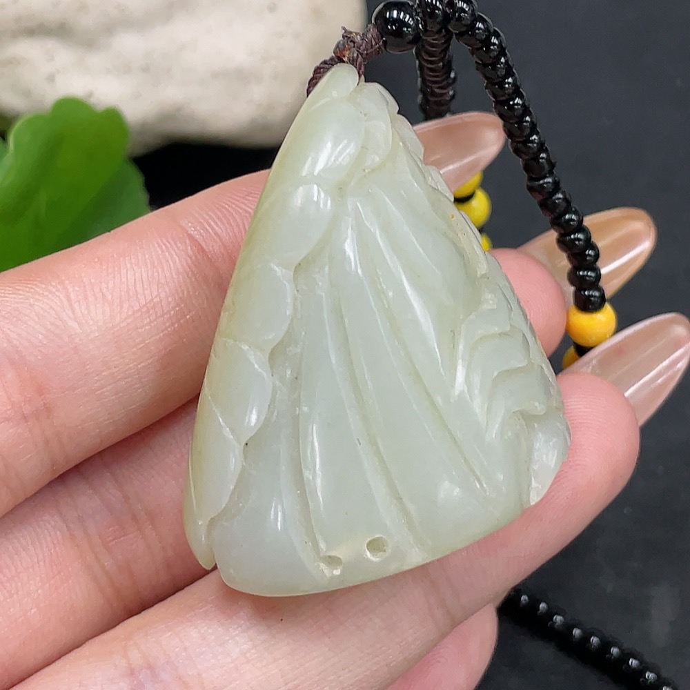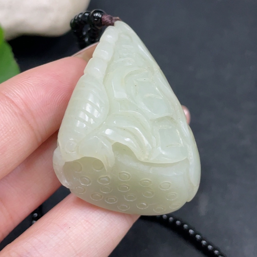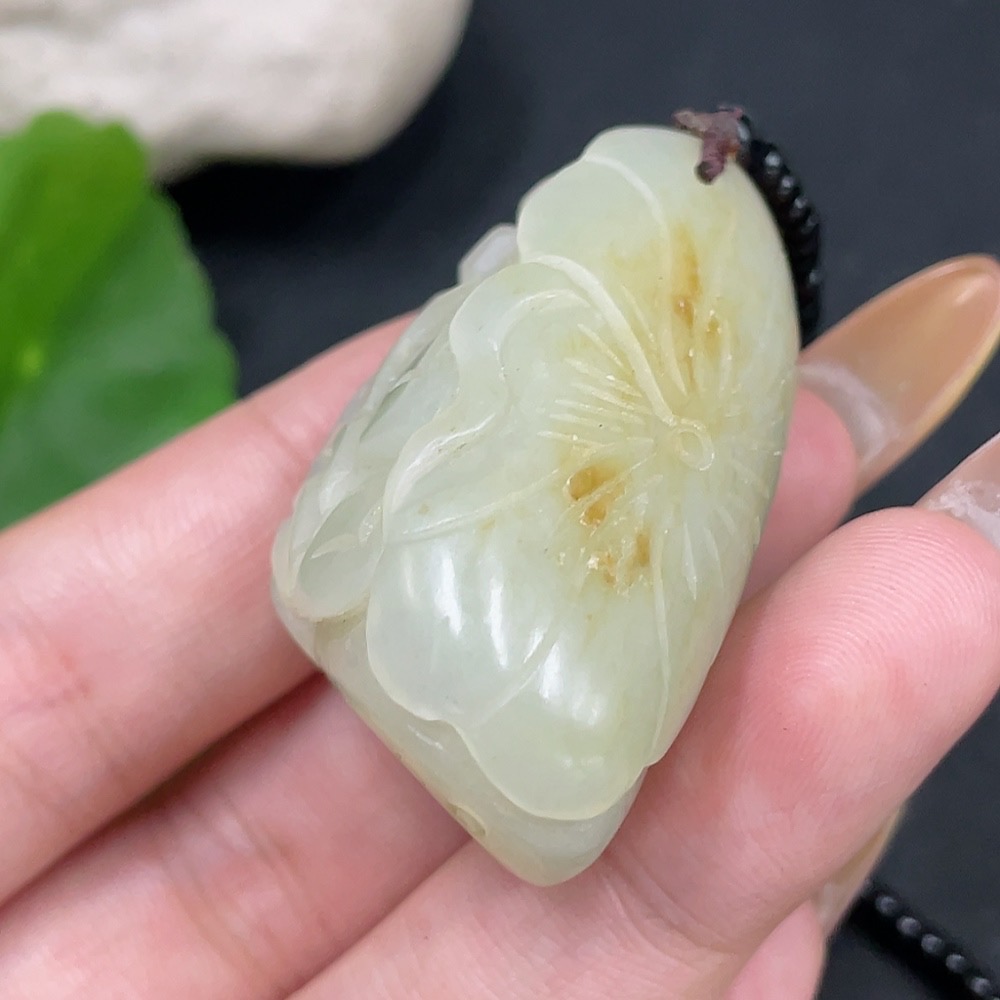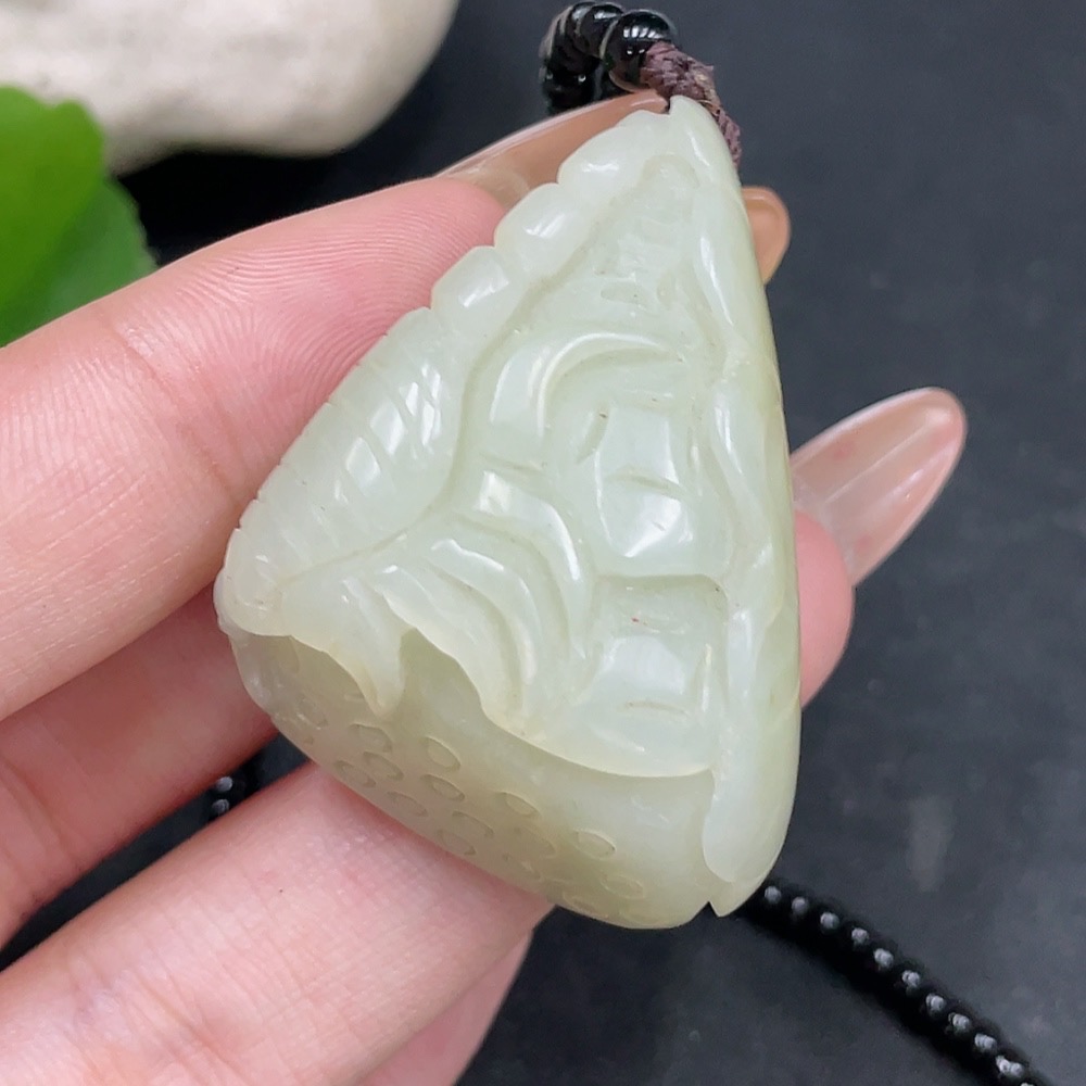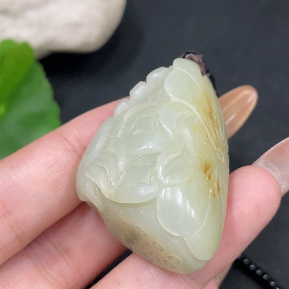 Hetian Jade Pendant Lotus Pod with Undetermined Skin Color Origin, Non-Hetian Jade Chain Included, Total Weight Approx. 46.3g (Including Chain)