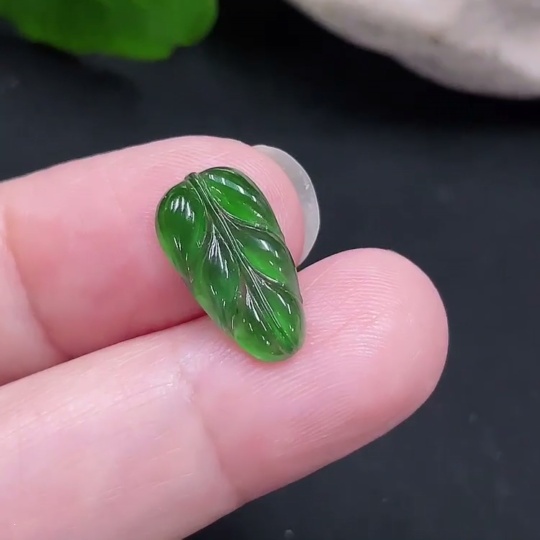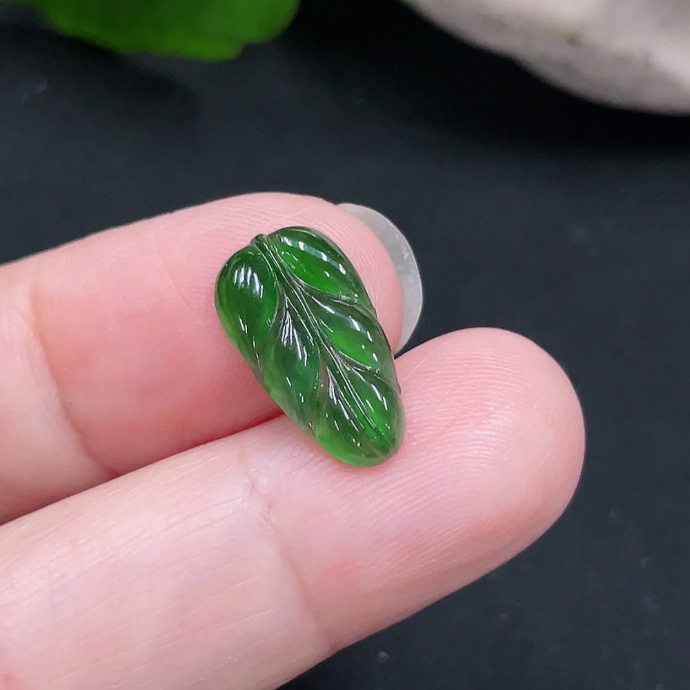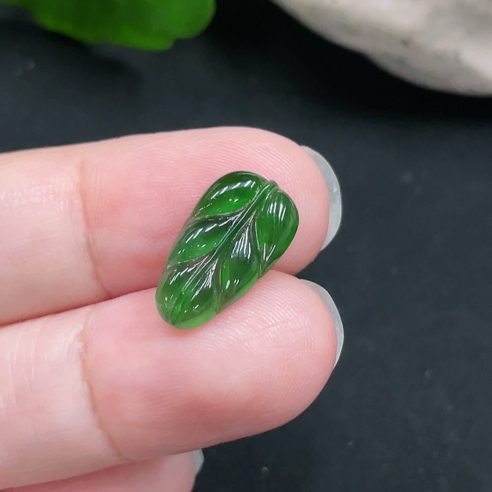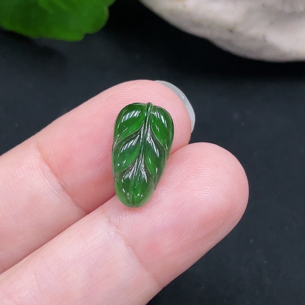 Jadeite Leaf Inlaid Piece Total Weight Approx. 0.6g