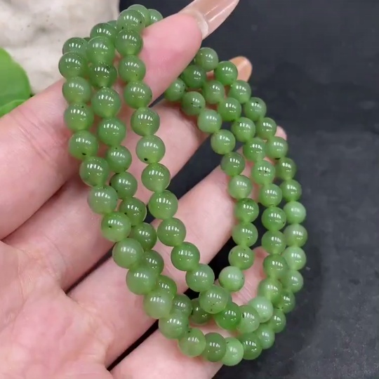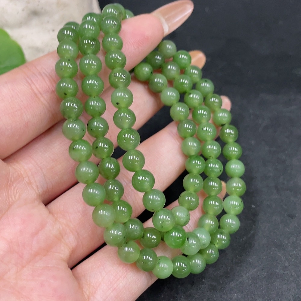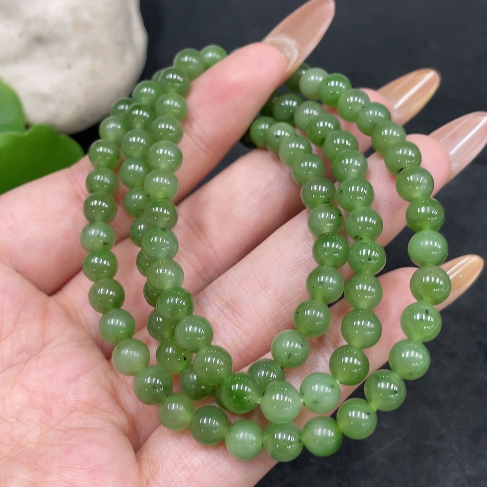 Hetian Jade Bead Necklace Approx. 5.8mm Non-Gold Total Weight Approx. 30.2g