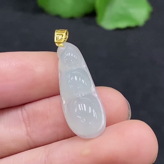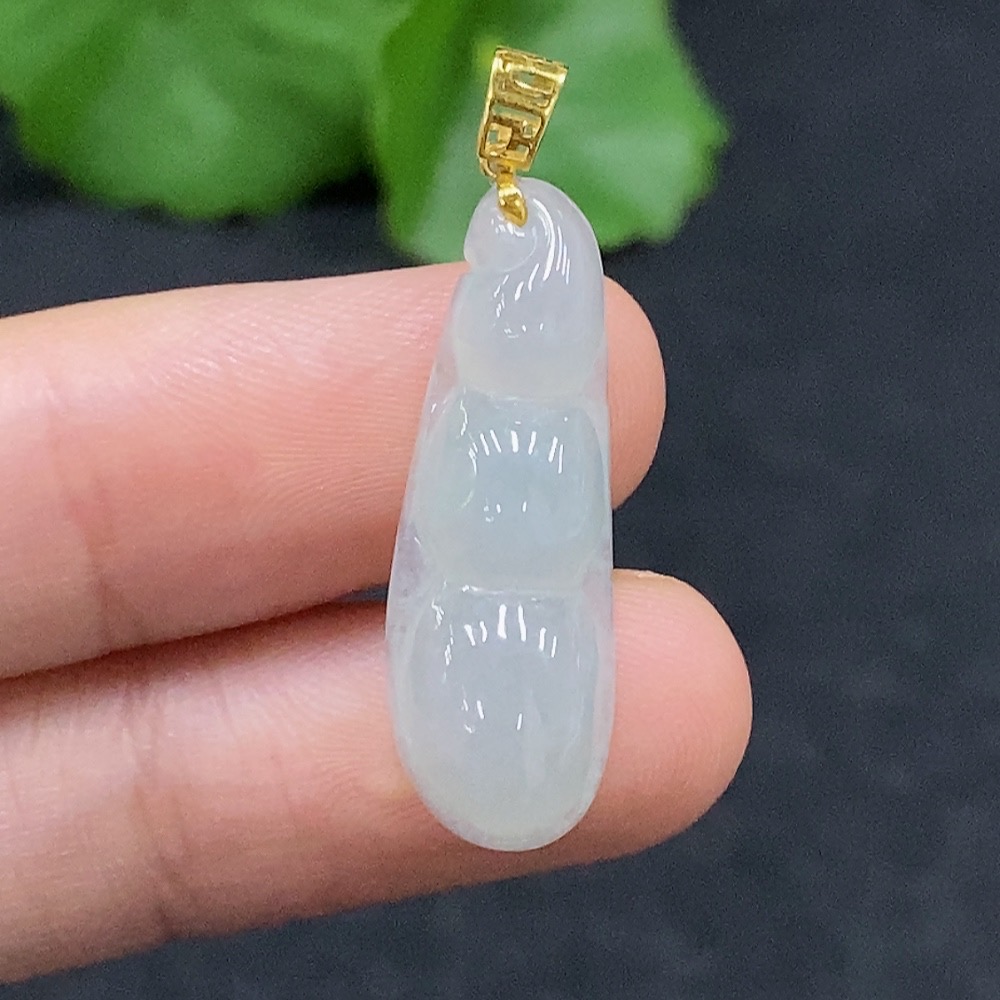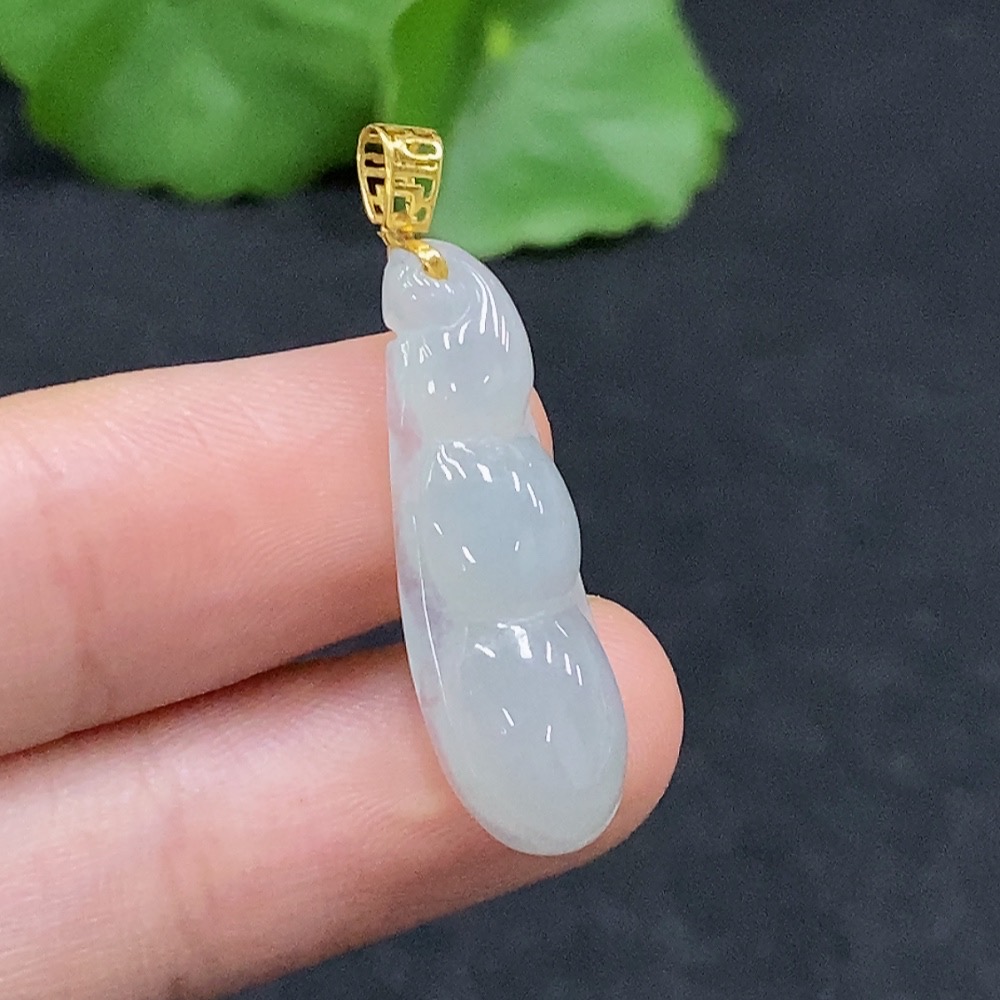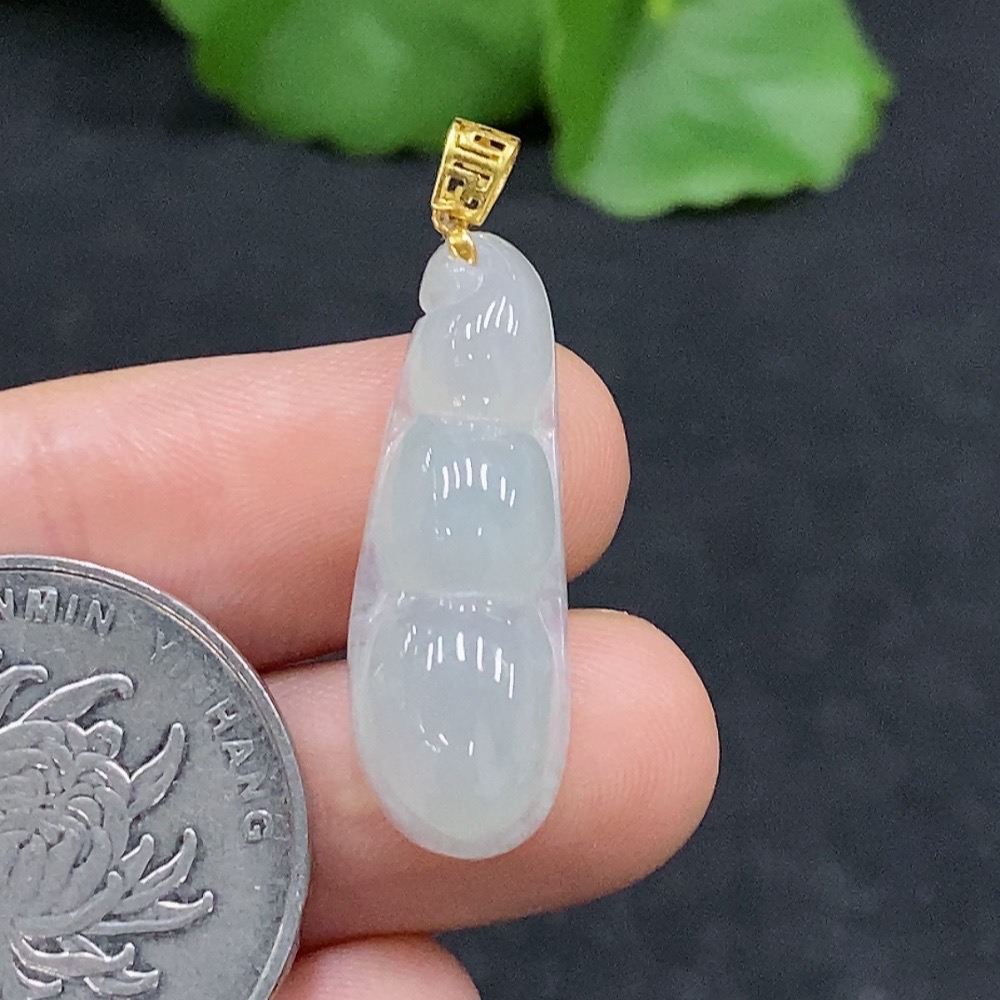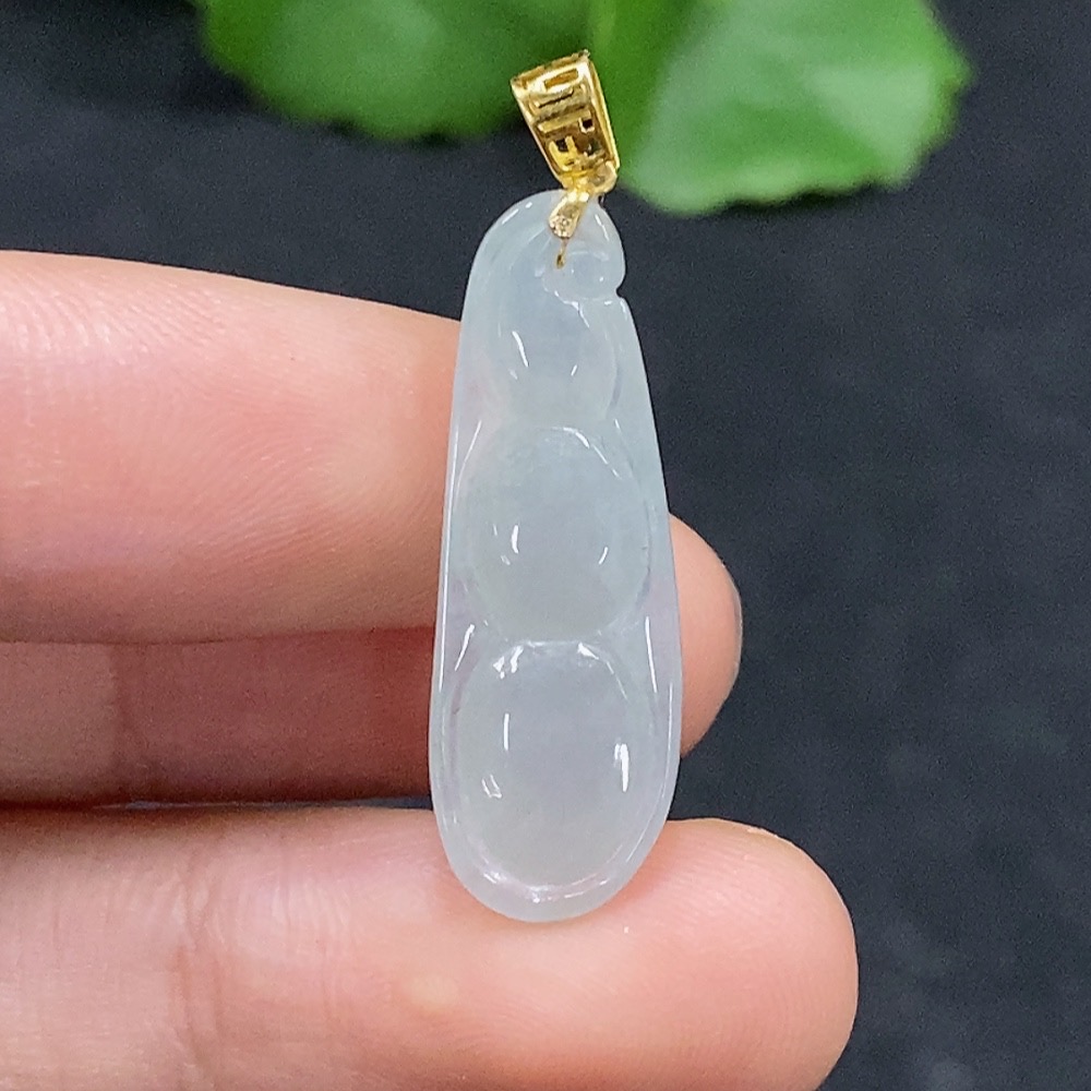 Jadeite Lucky Bean Pendant 18K Gold Total Weight Approx. 2.3g