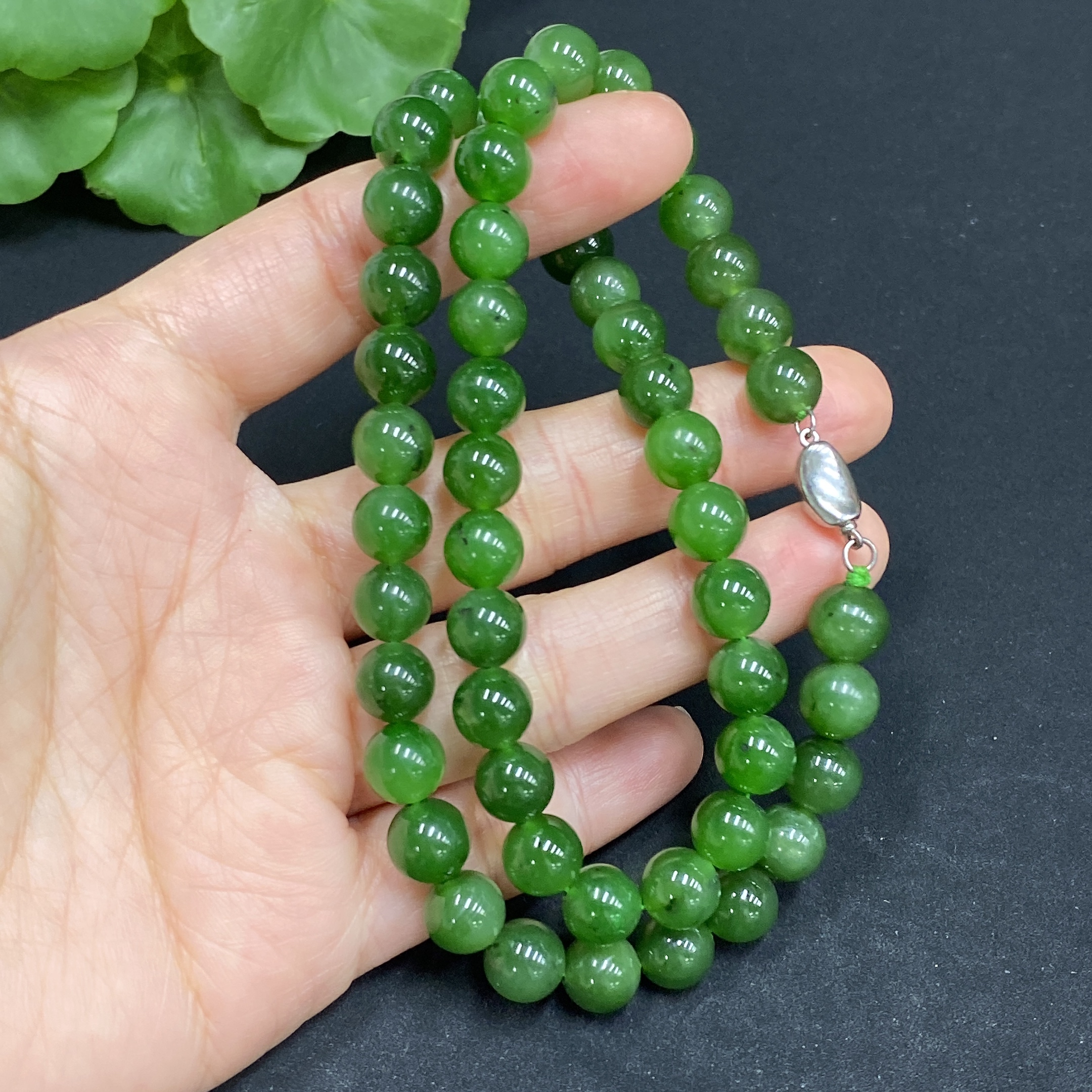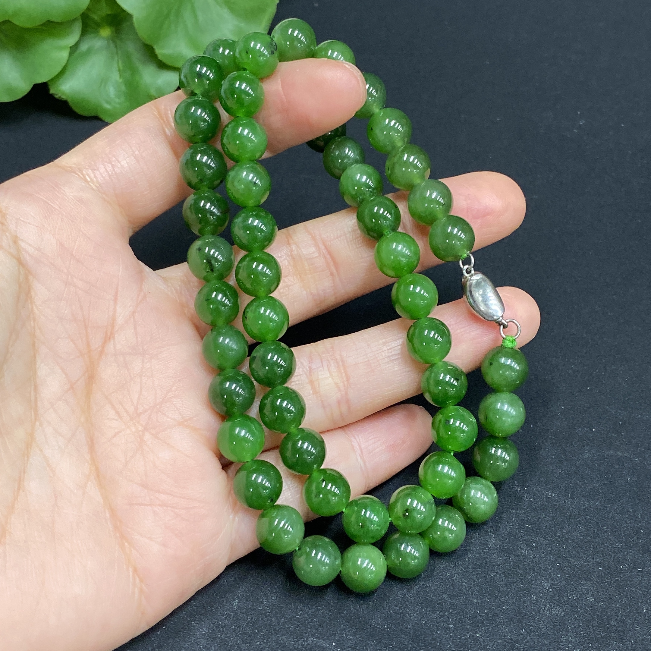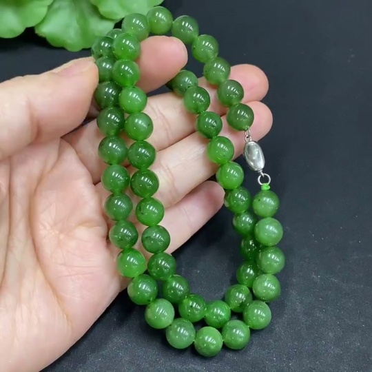Hetian Jade Bead Necklace Approx.7.7mm Non-Gold Total Weight Approx.39.8g