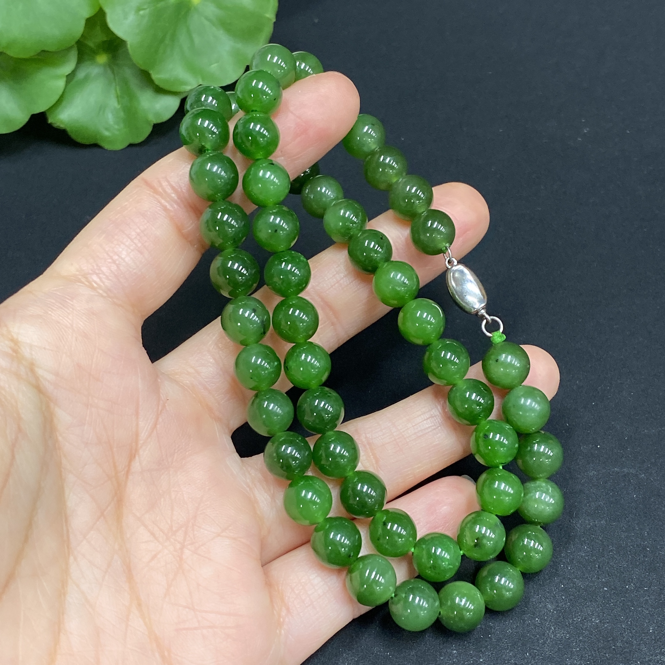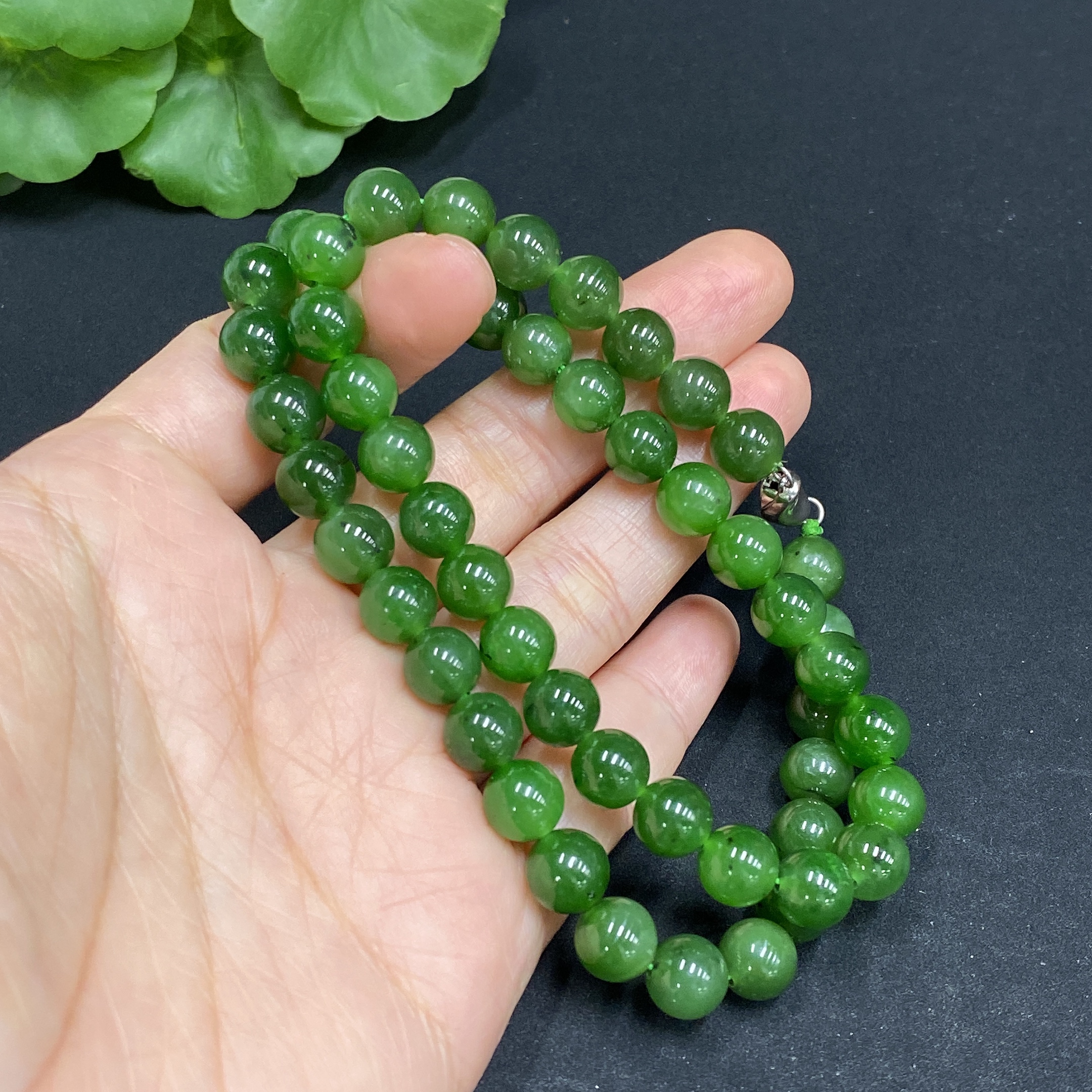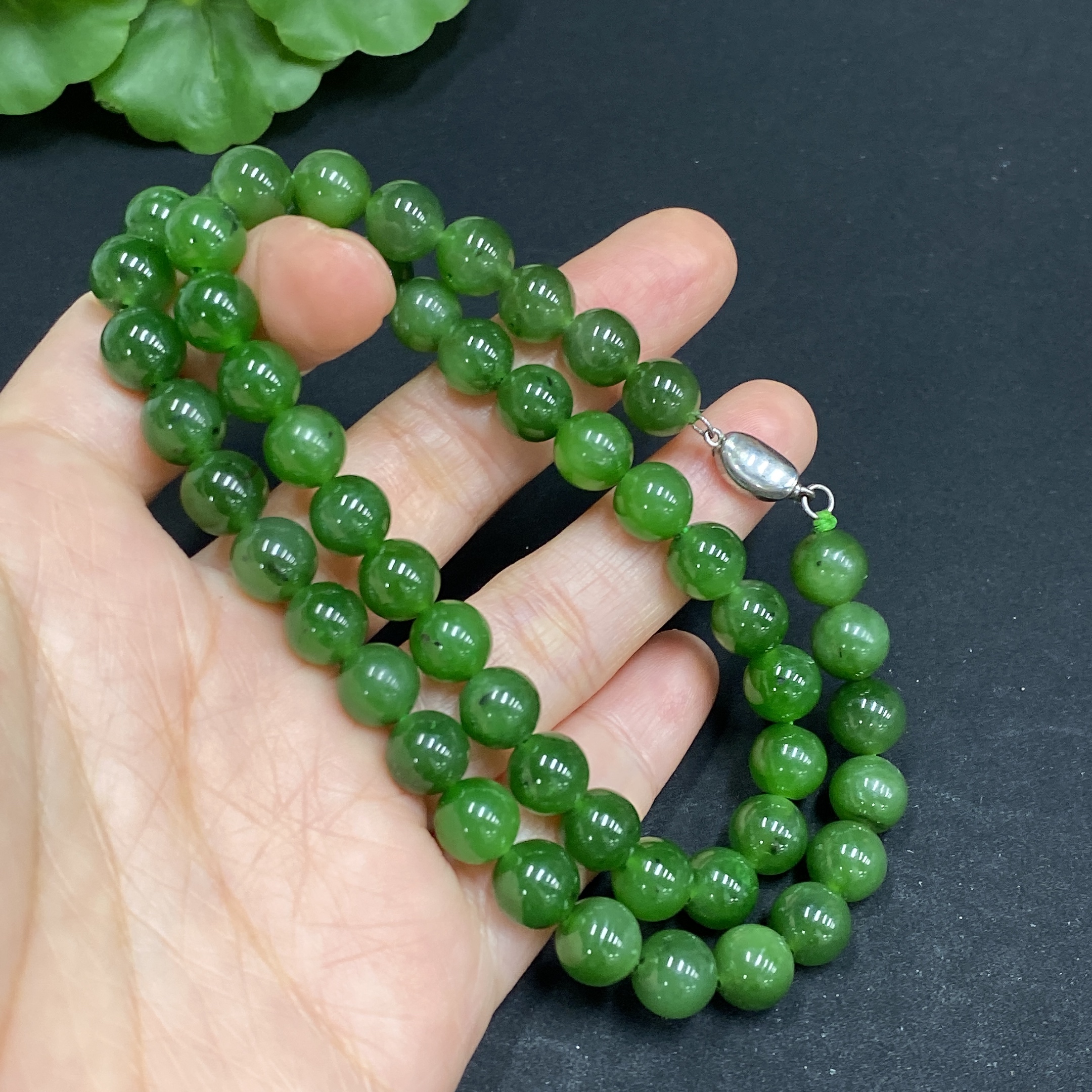 Hetian Jade Bead Necklace Approx.7.7mm Non-Gold Total Weight Approx.39.8g