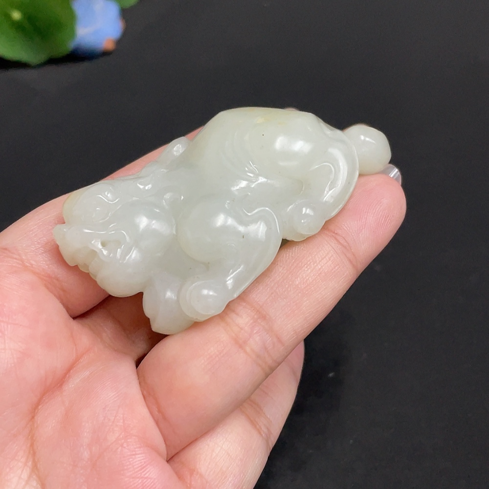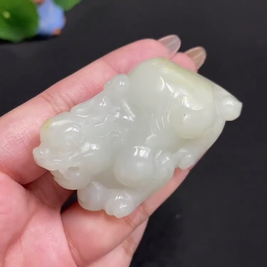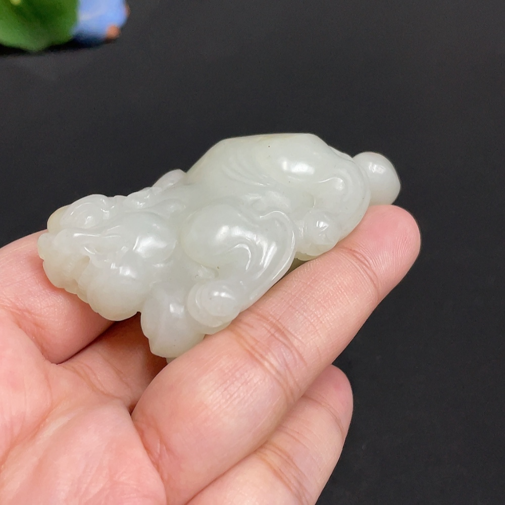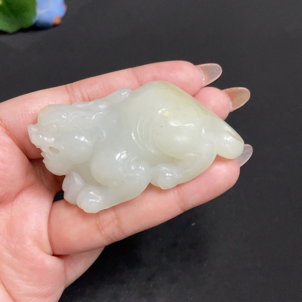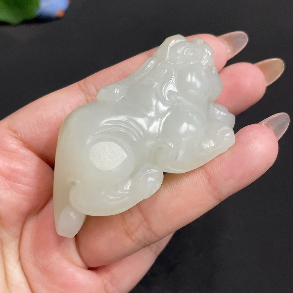 Hetian Jade Pendant Auspicious Beast Undetermined Skin Color Origin Total Weight Approx. 89.3g