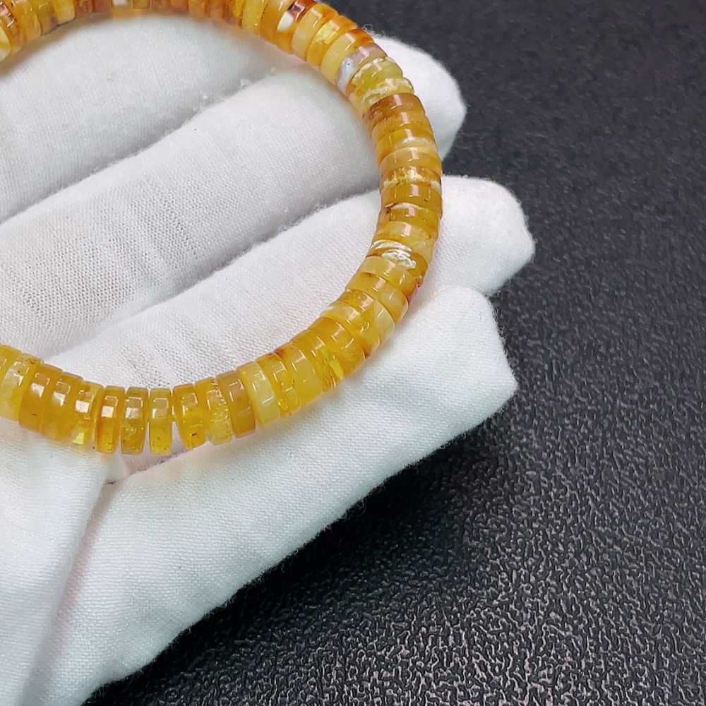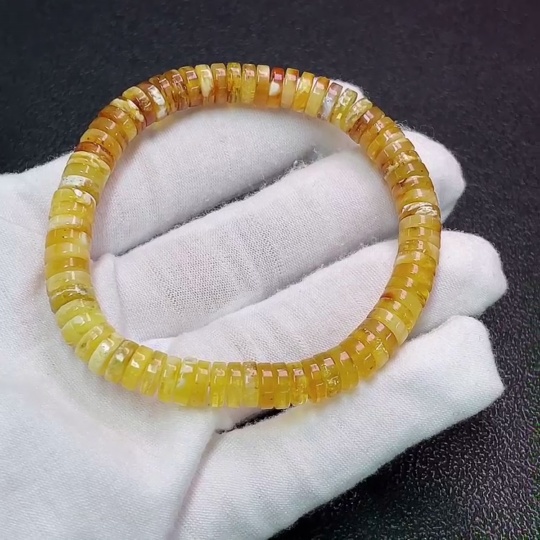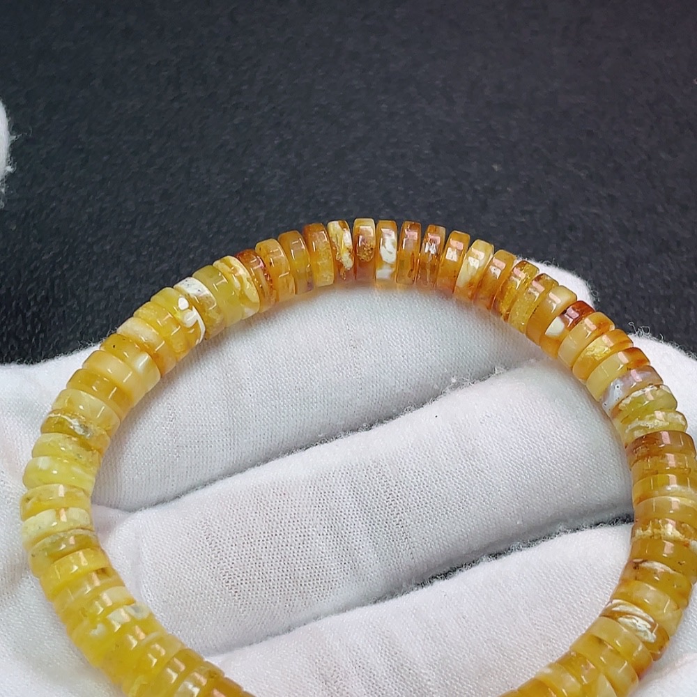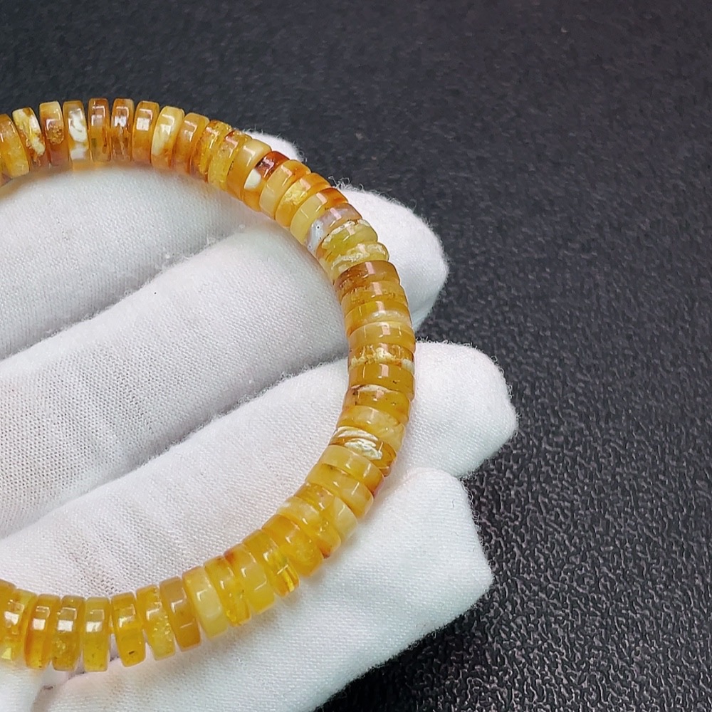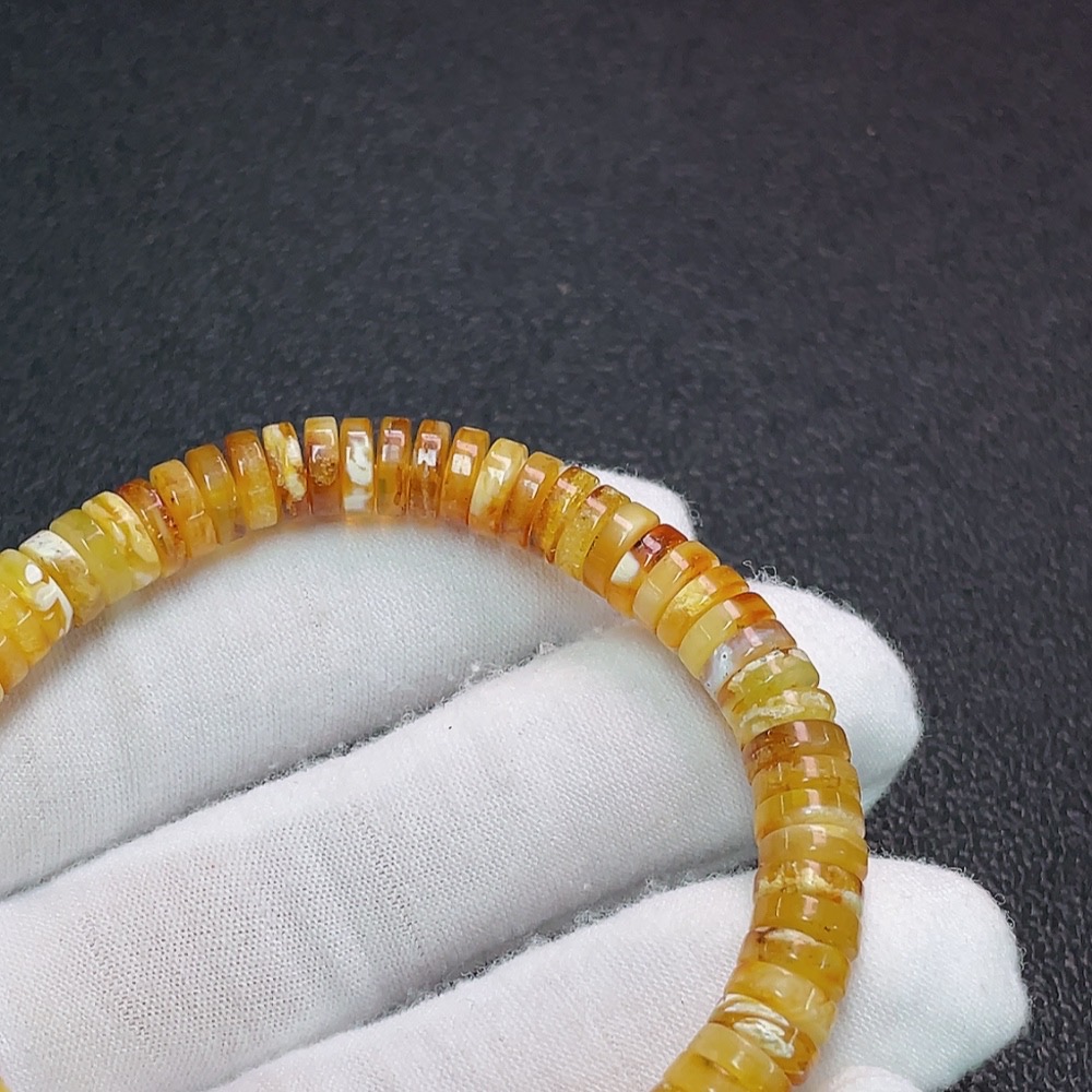 Amber Beeswax Bracelet, Total Weight Approx. 8.15g, Bead Size 7.4mm