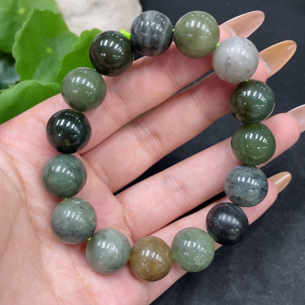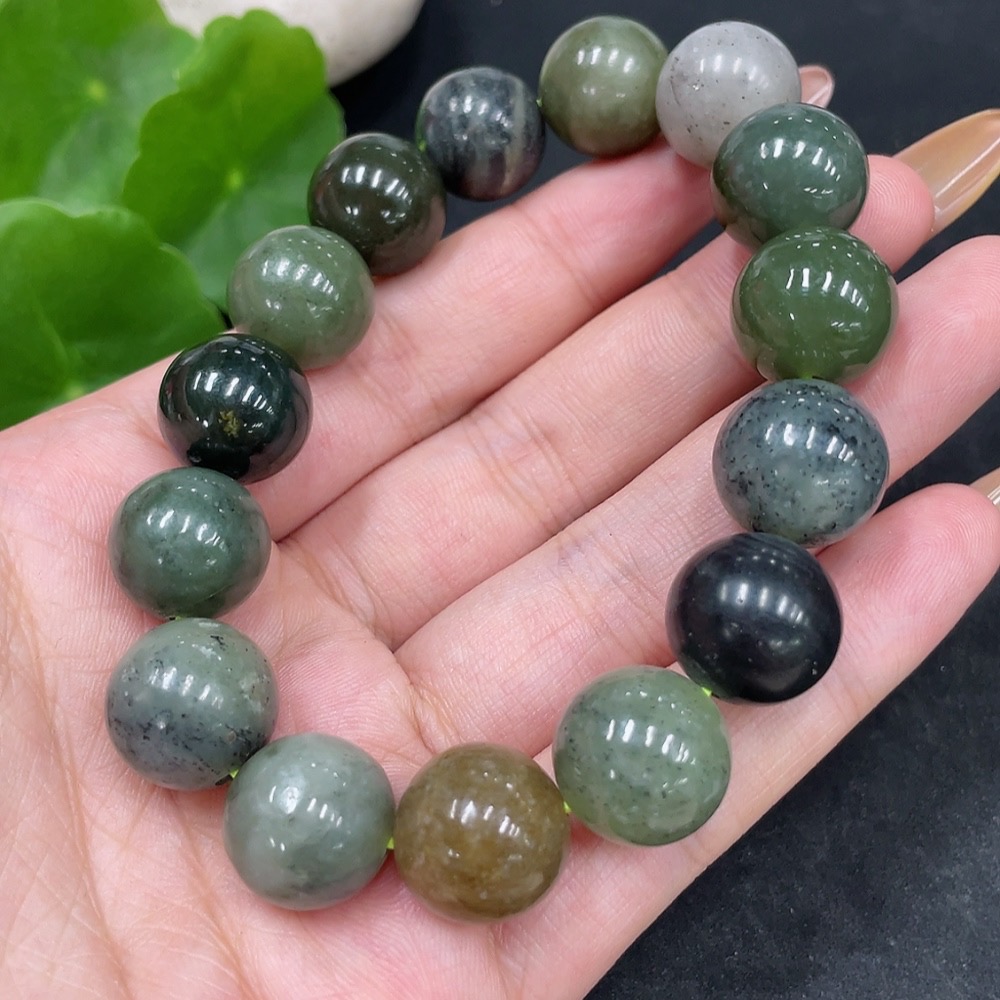 Hetian Jade Bead Bracelet, Approx. 13.3mm, Total Weight About 60.7g