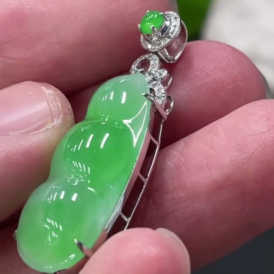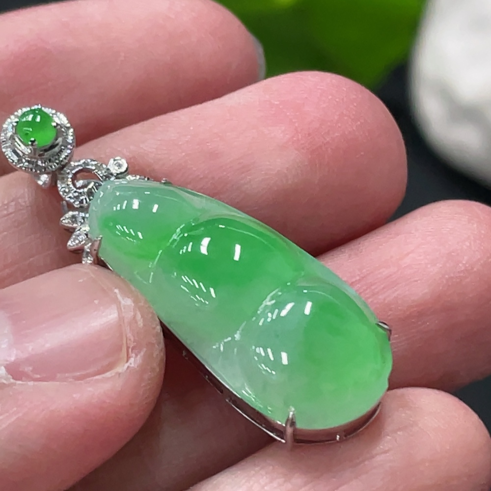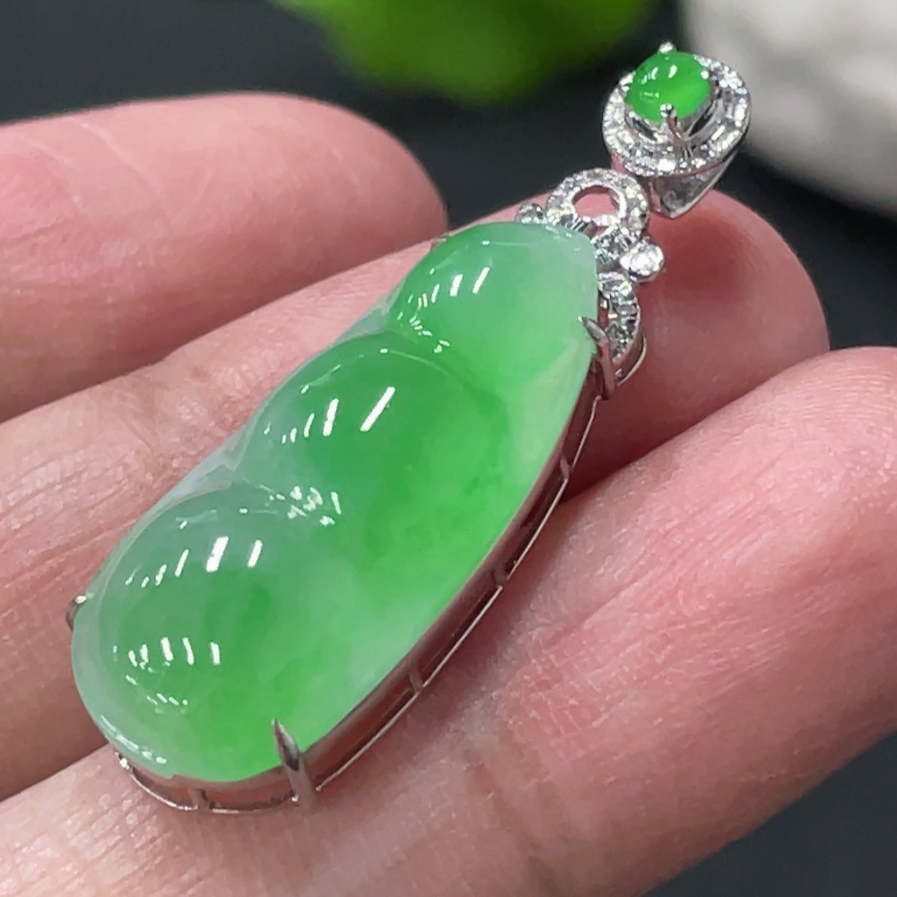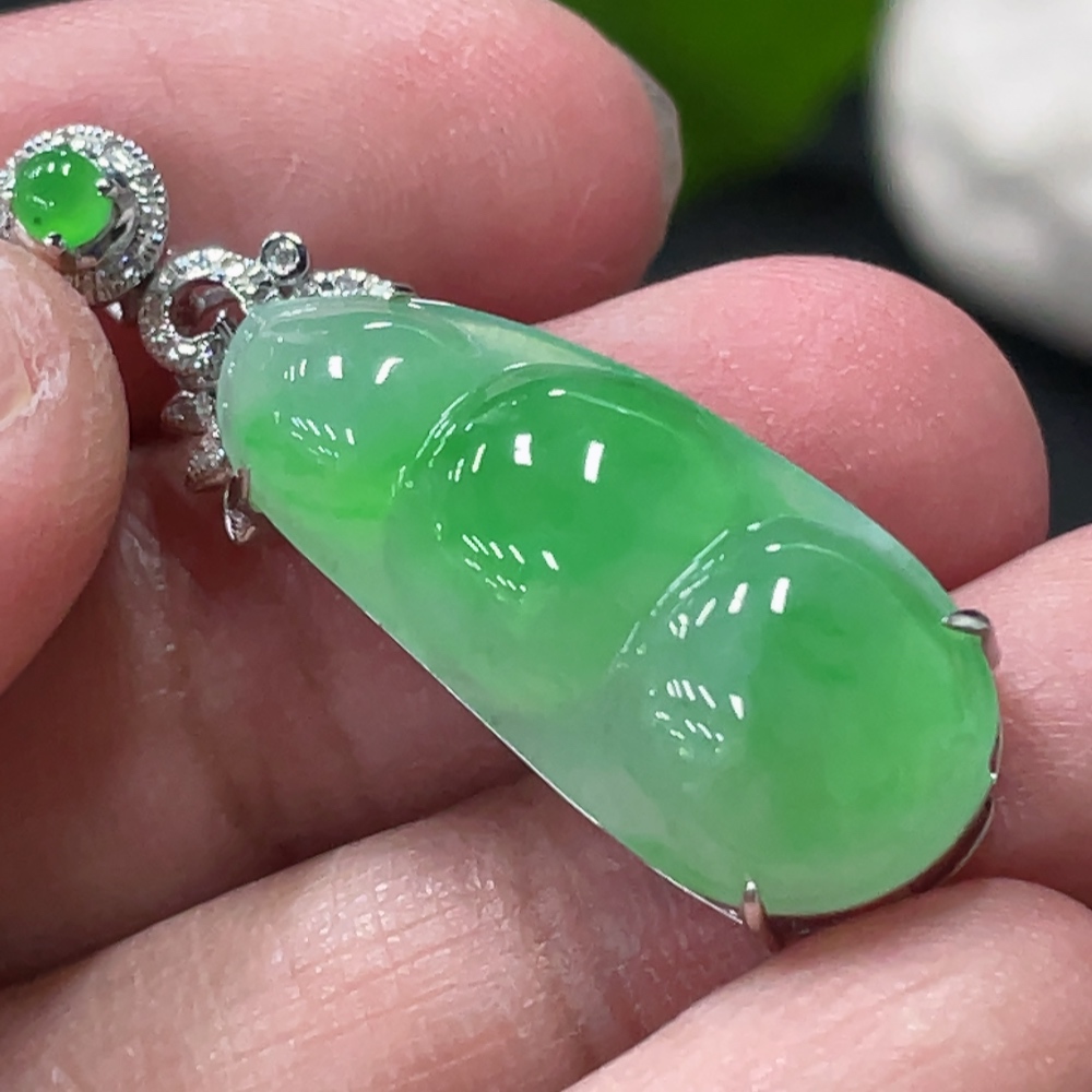 Jadeite Bean Pendant with 18K Gold and Diamond Accents, Total Weight Approx. 3.9g