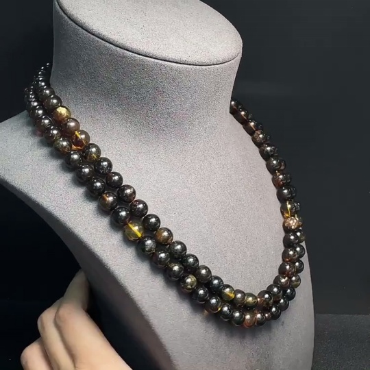 Amber Beeswax Bead Strand with Other Mineral Components, Total Weight Approx. 56.36g, Size Approx. 9.4mm