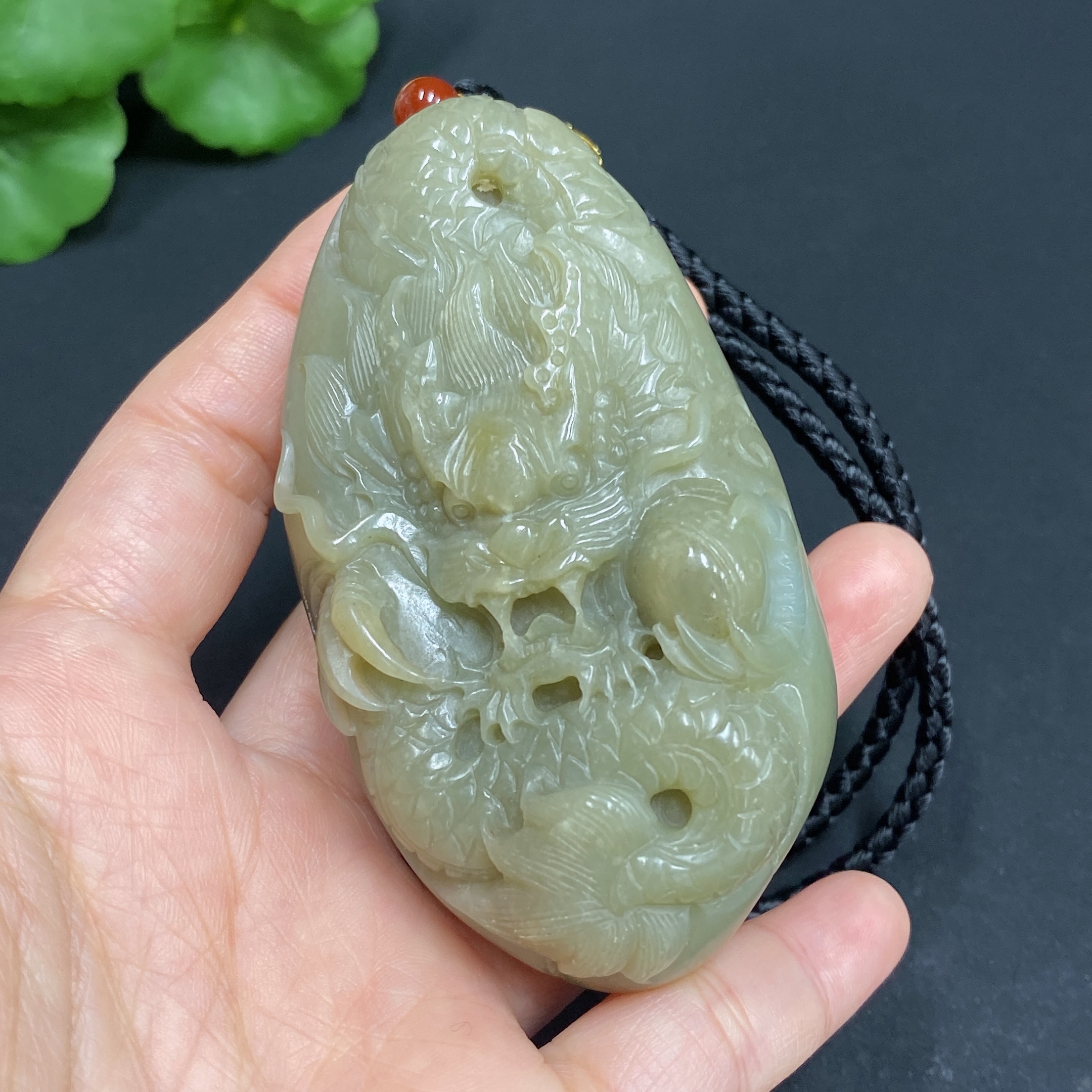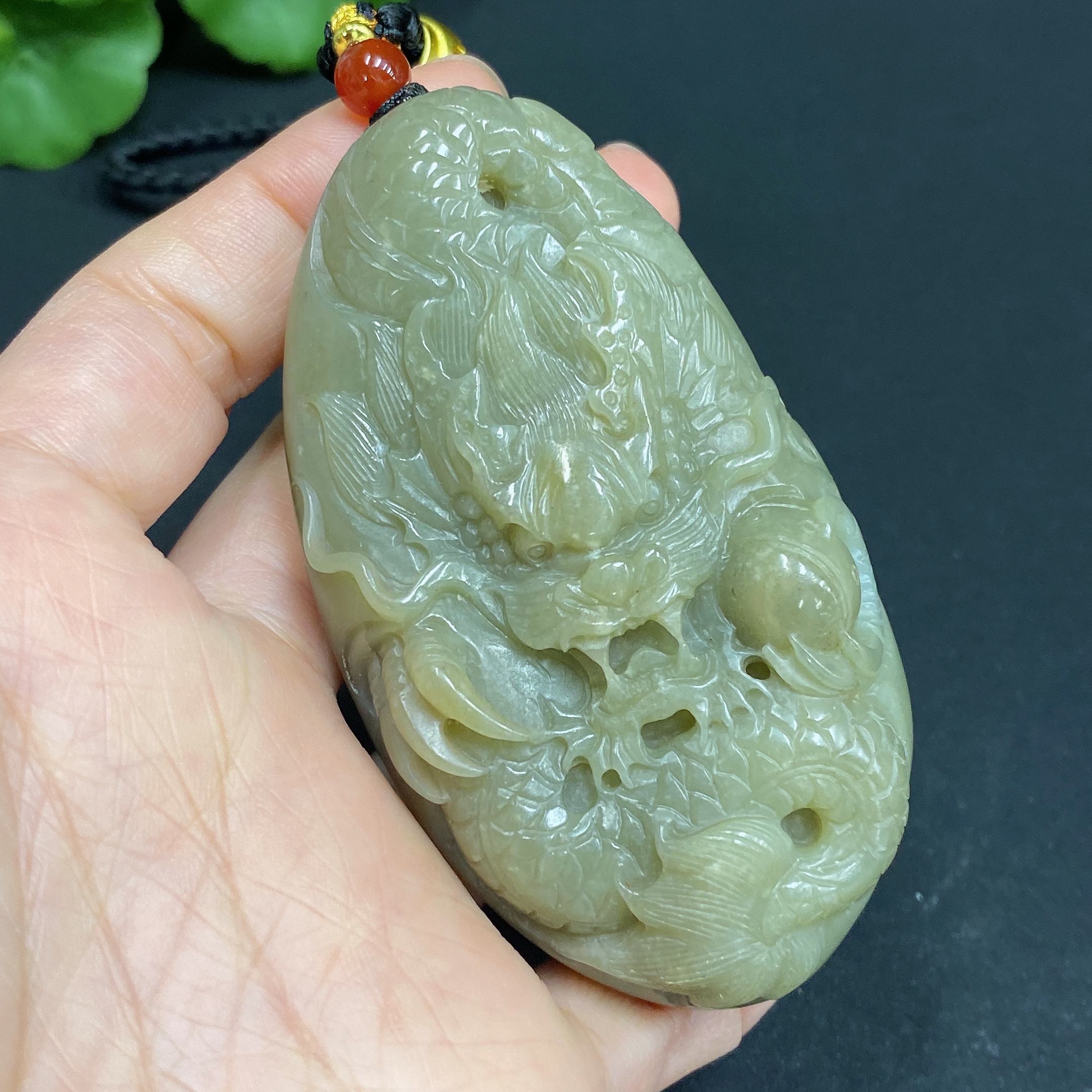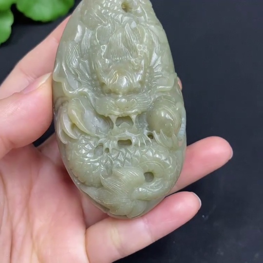 Hetian Jade Handheld Ornament - Dragon, Total Weight (including rope): 157.2g, Undetermined Skin Color Origin, Contains Other Mineral Components