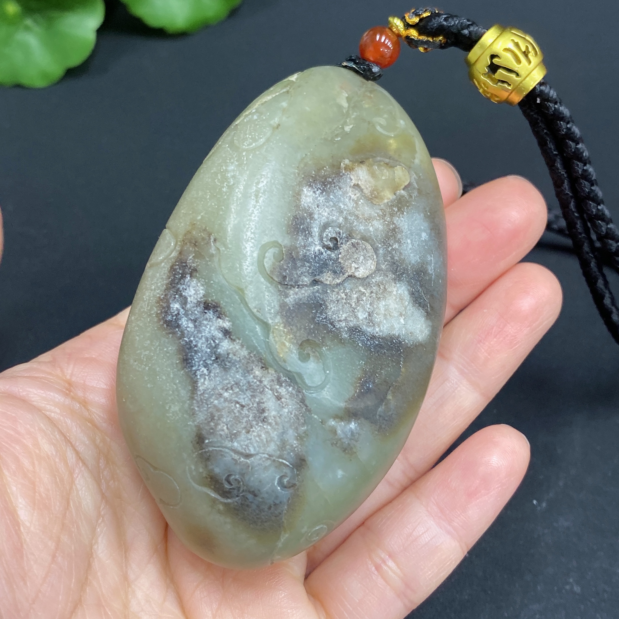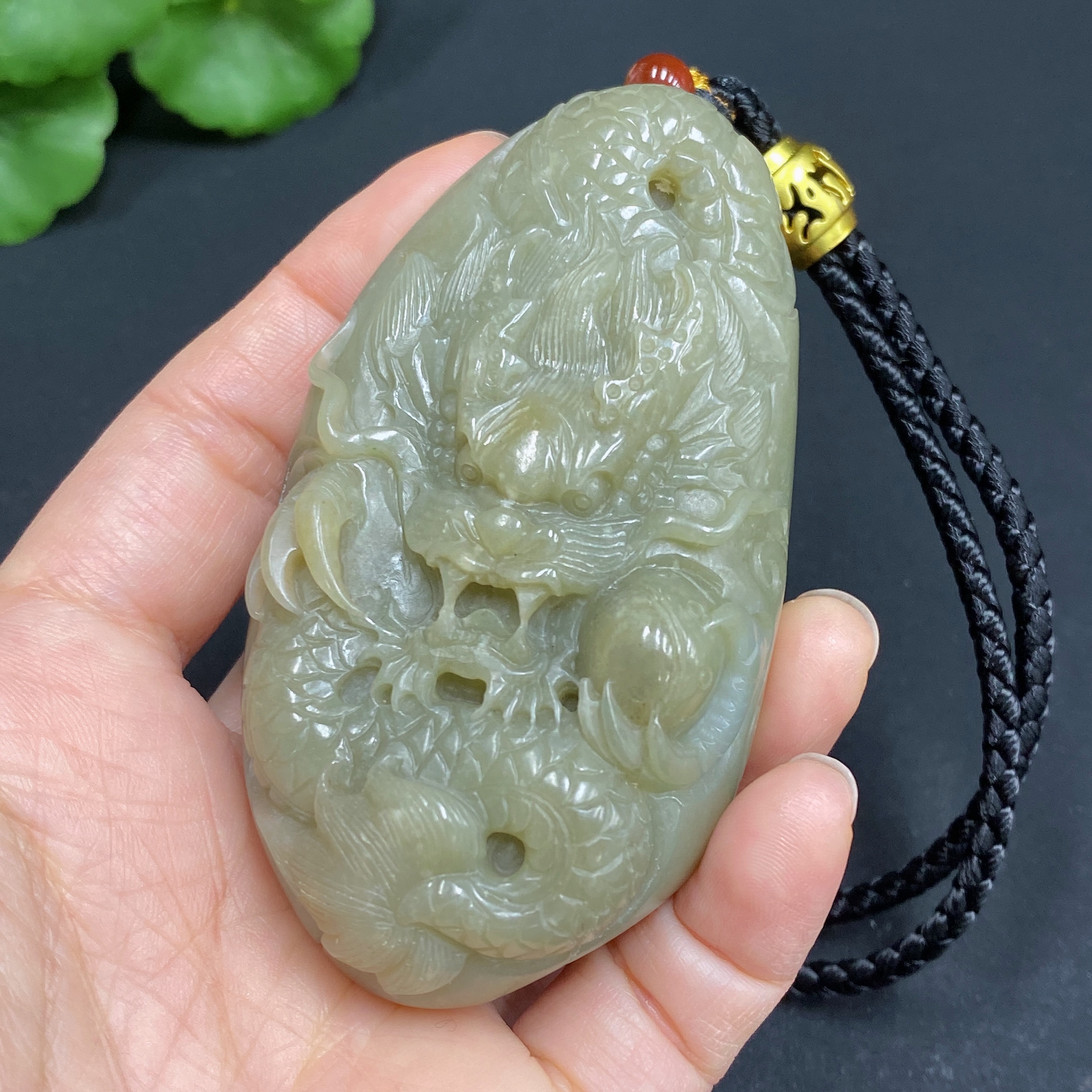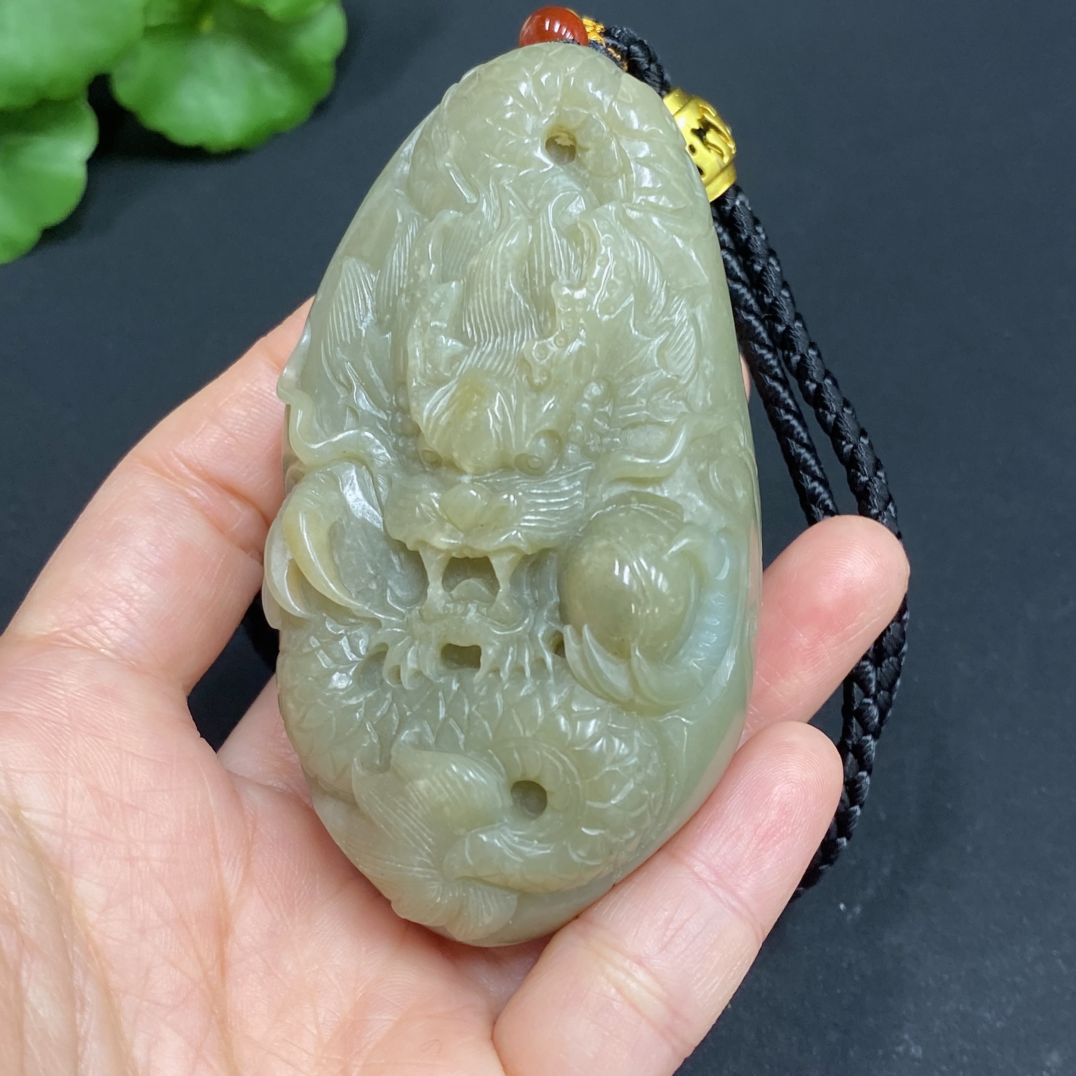 Hetian Jade Handheld Ornament - Dragon, Total Weight (including rope): 157.2g, Undetermined Skin Color Origin, Contains Other Mineral Components