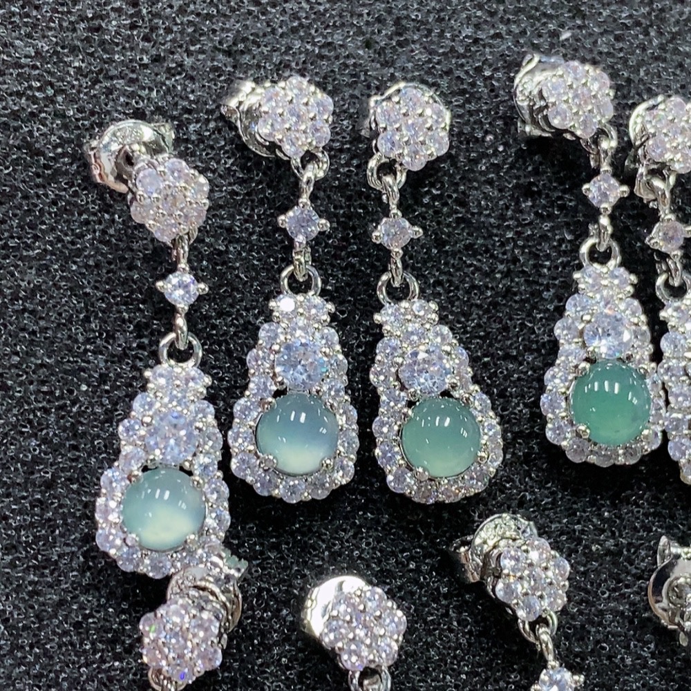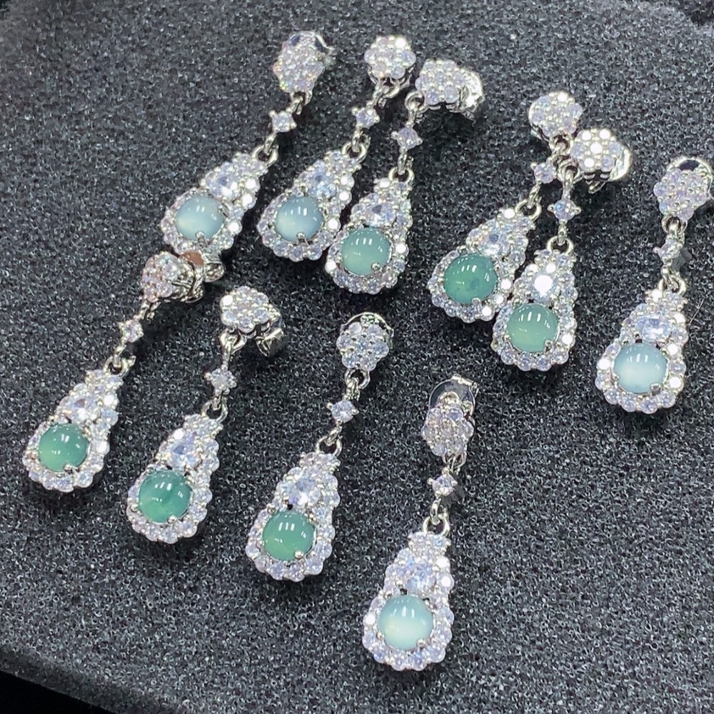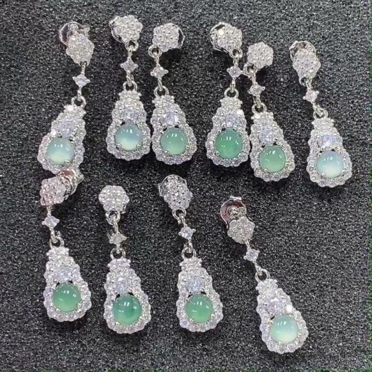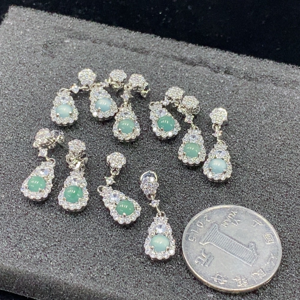 Jadeite Inlaid Earrings Non-Gold