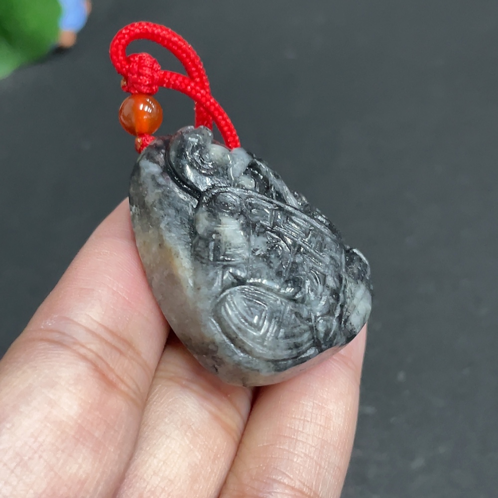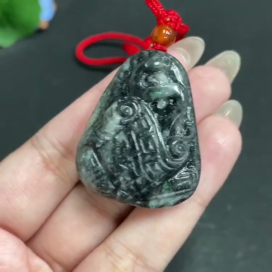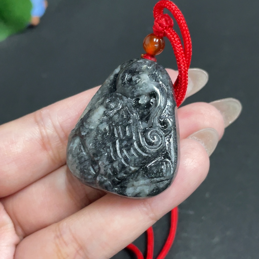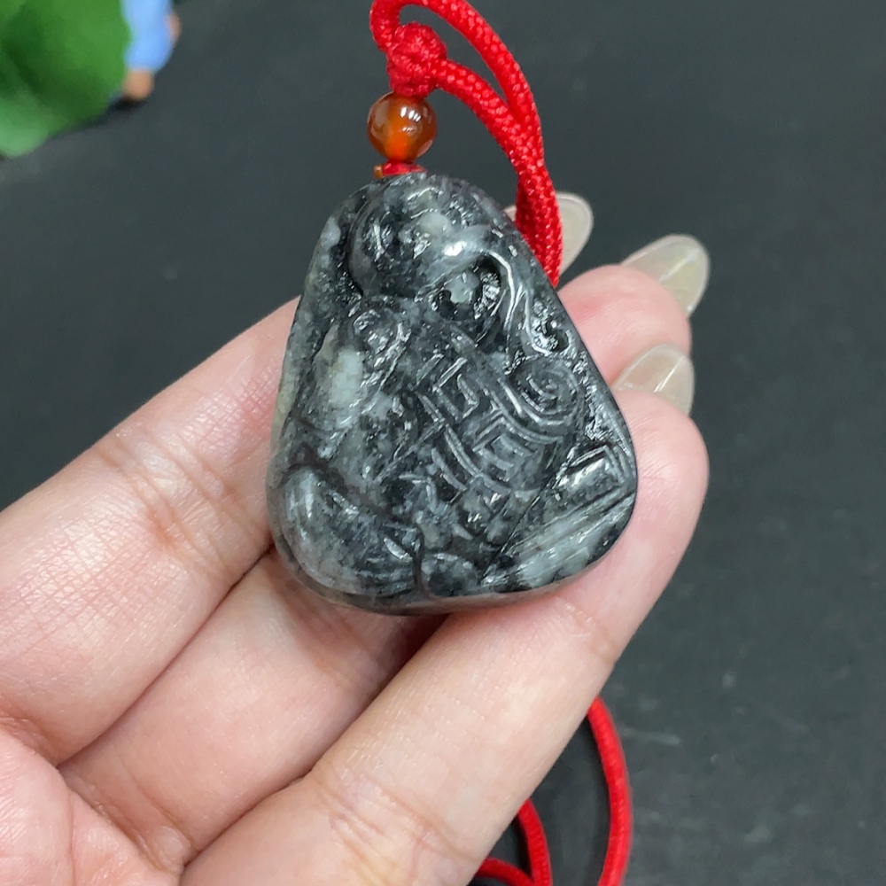 Hetian Jade Pendant Antique Style Containing Other Mineral Components Total Weight Approx. [Including Rope] 37.5g