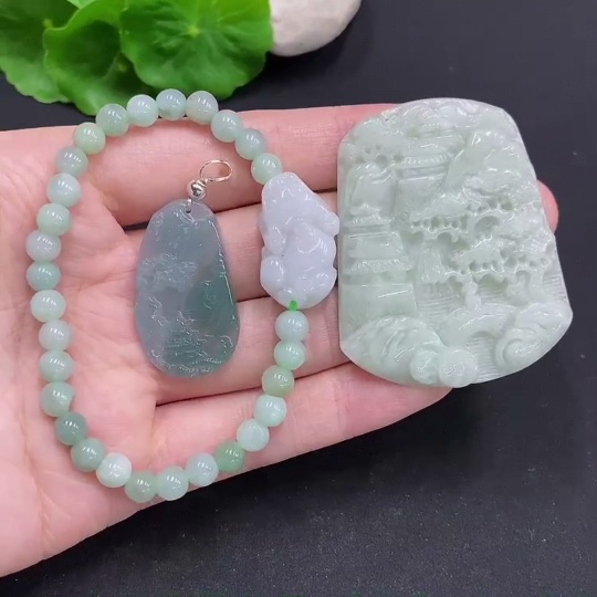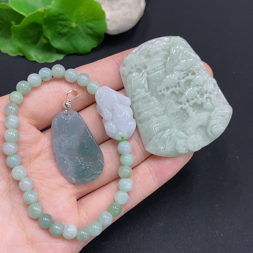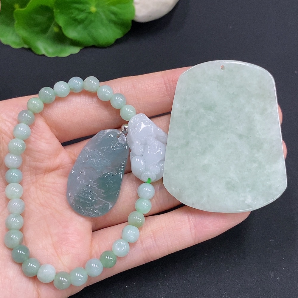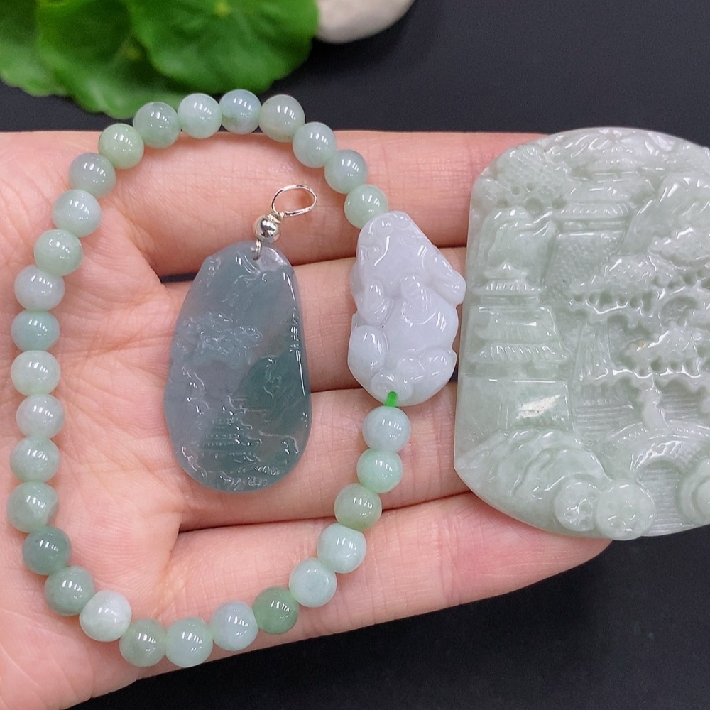 Jadeite Pendant + Bracelet Set (Non-Gold Inlaid)