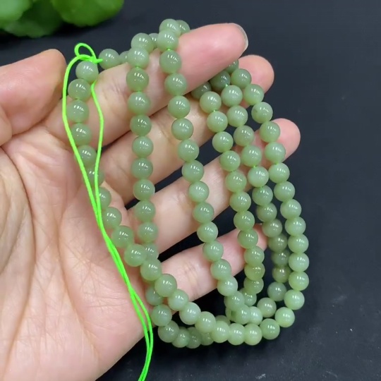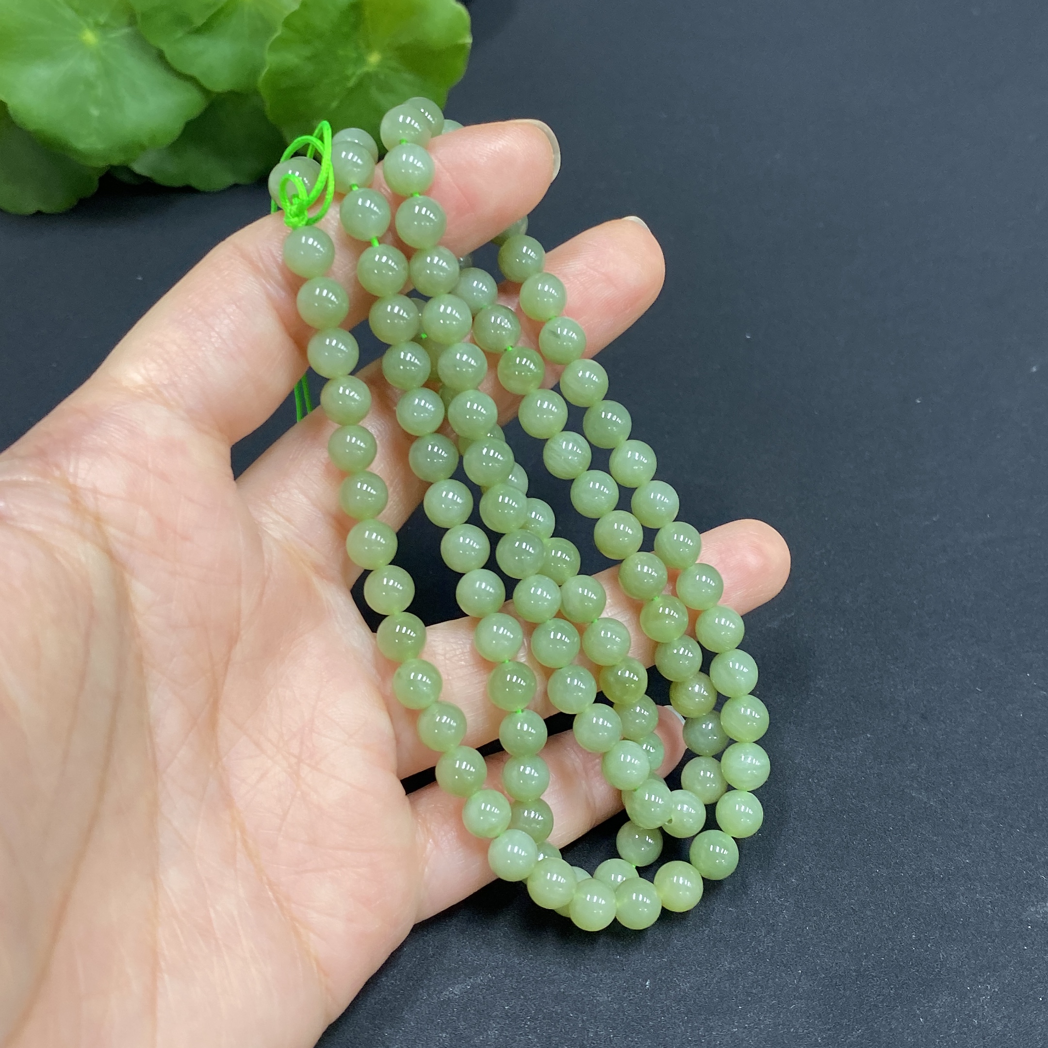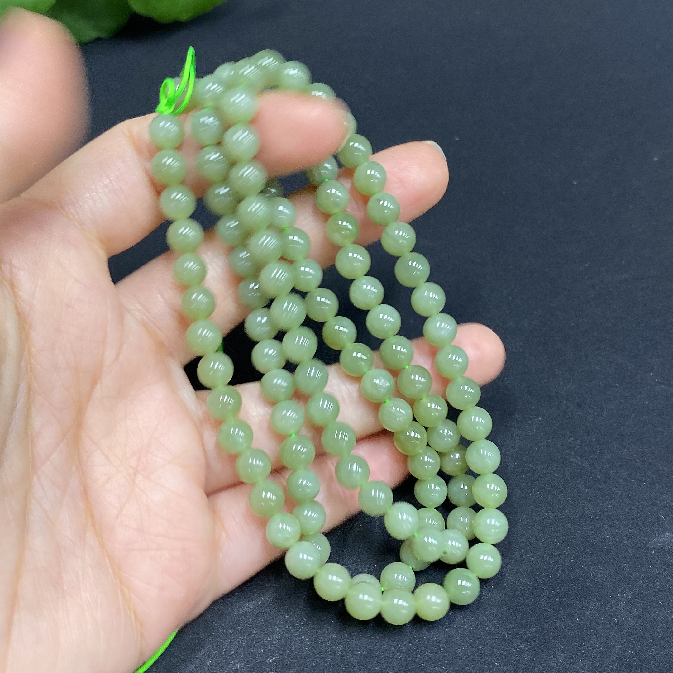 Hetian Jade Bead Necklace, Approx. 5.8mm, Total Weight Approx. 34.3g