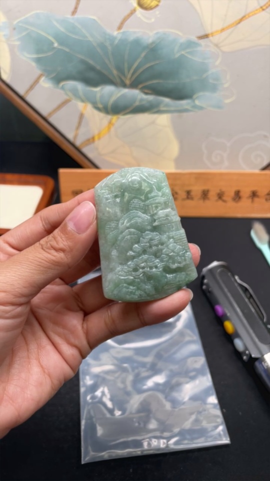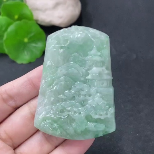 Jadeite Landscape Pendant Total Weight Approx. 37.43g