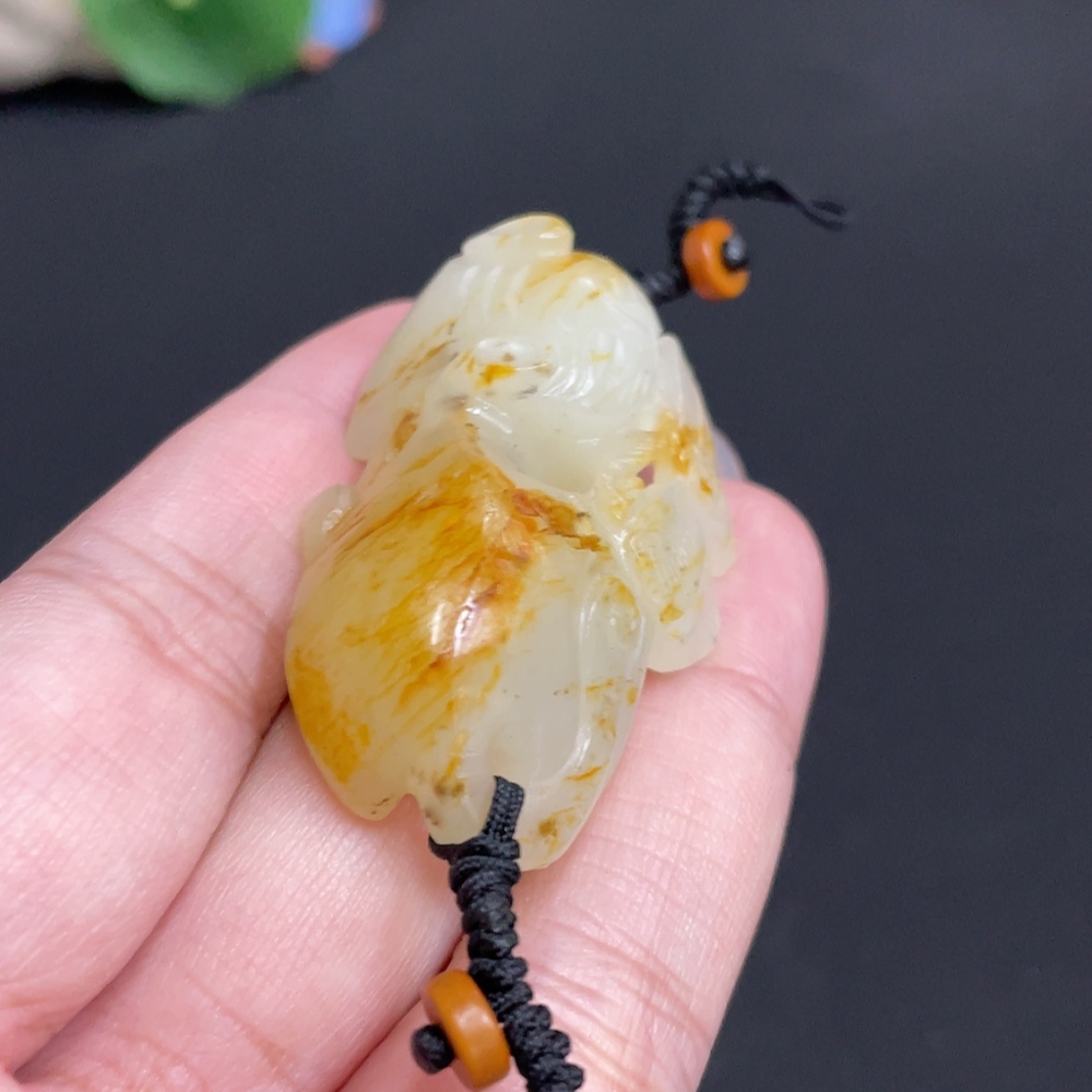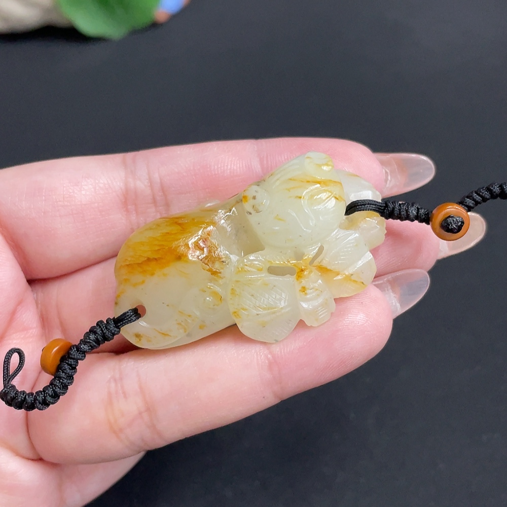 Hetian Jade Pendant, Auspicious Beast, Containing Other Mineral Components, Undetermined Skin Color Origin, Total Weight Approximately 24.9g