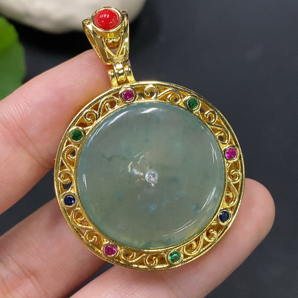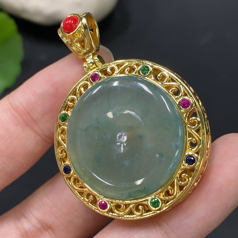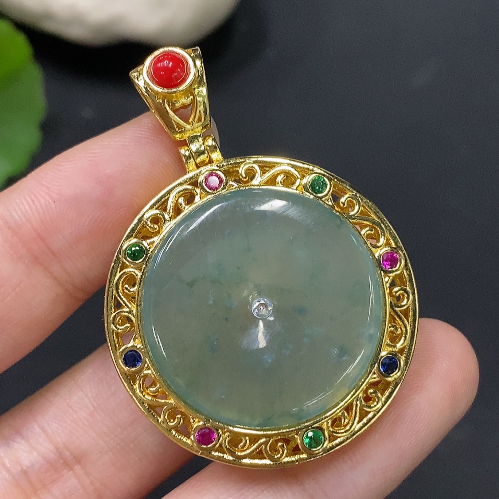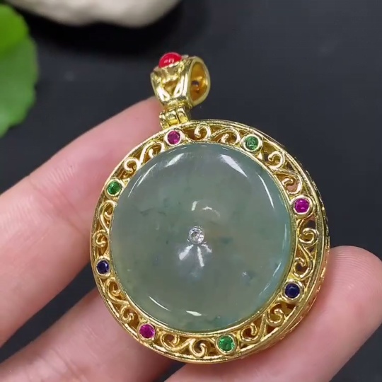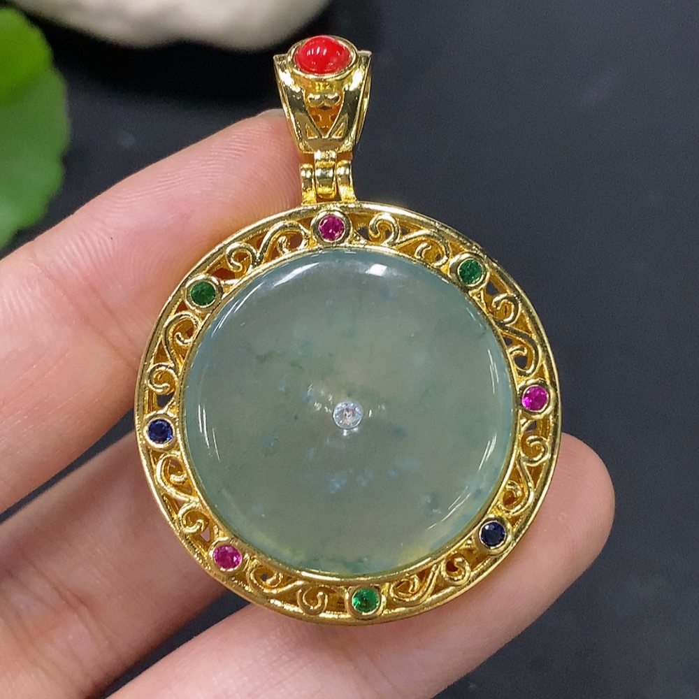 Jadeite inlaid piece non-gold total weight about 14.77g