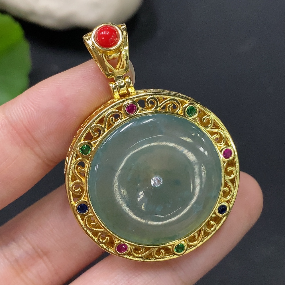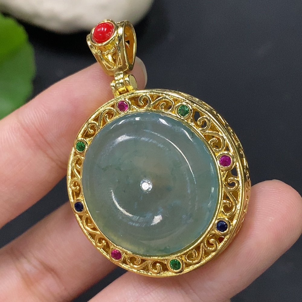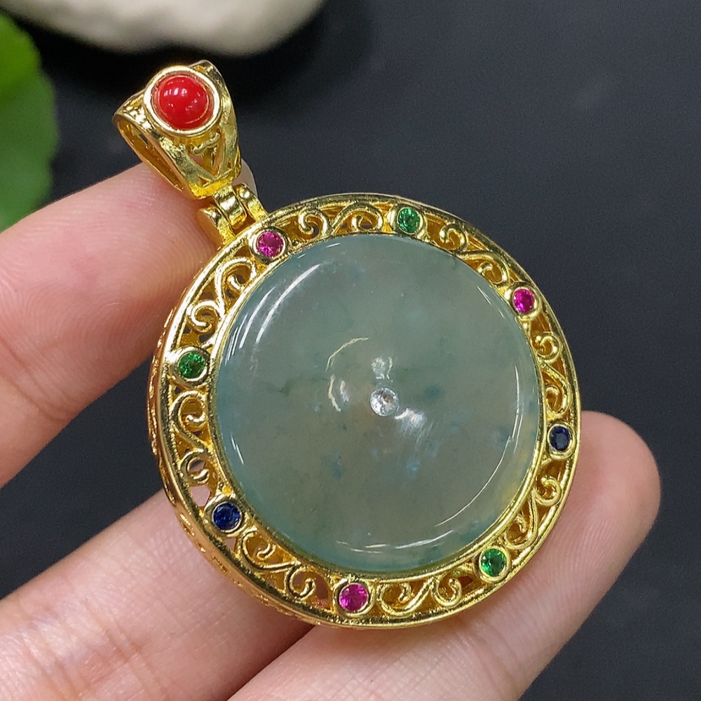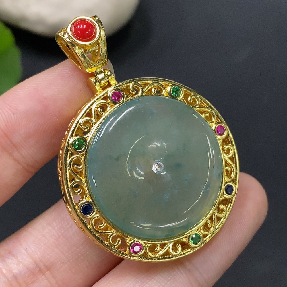 Jadeite inlaid piece non-gold total weight about 14.77g