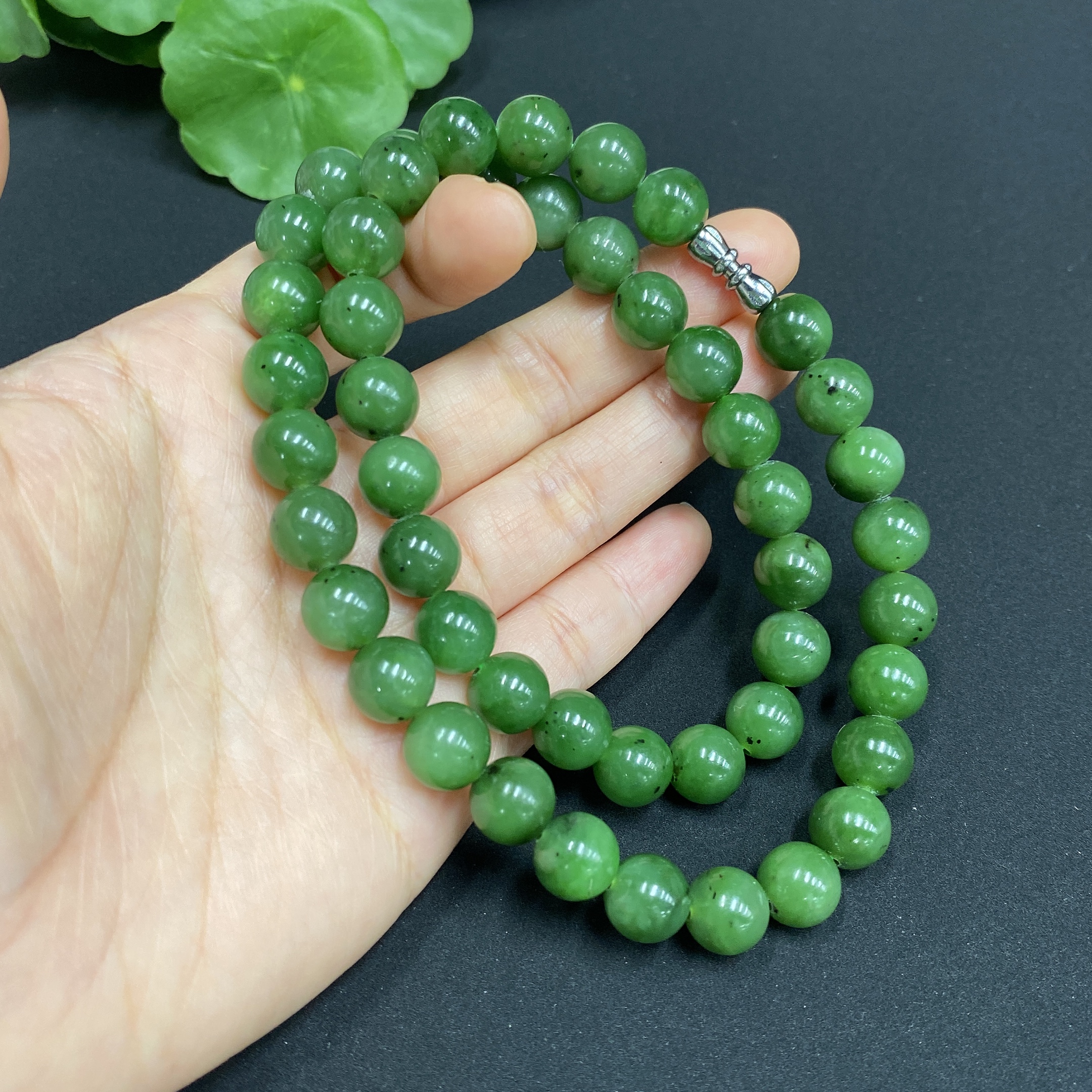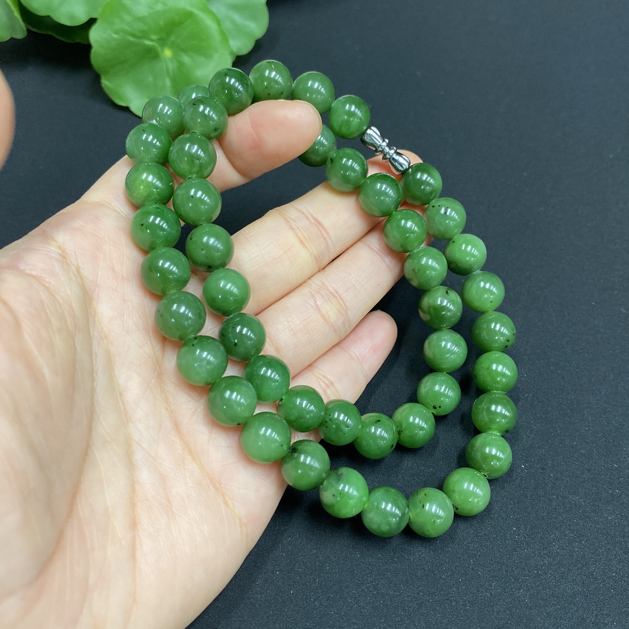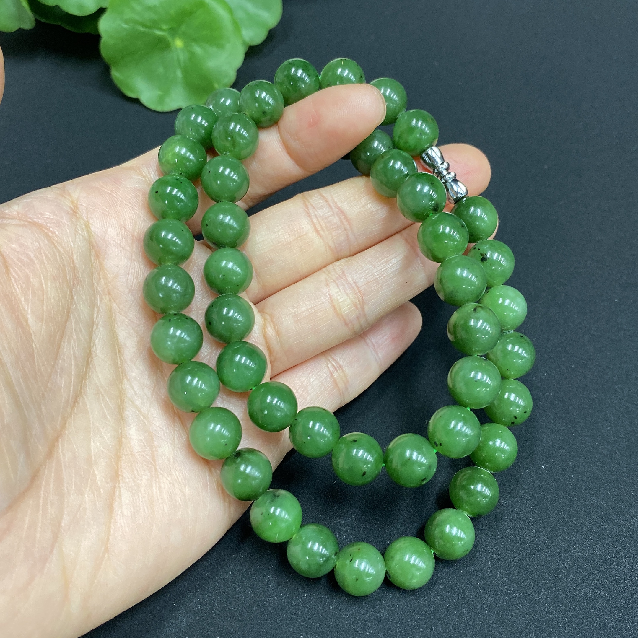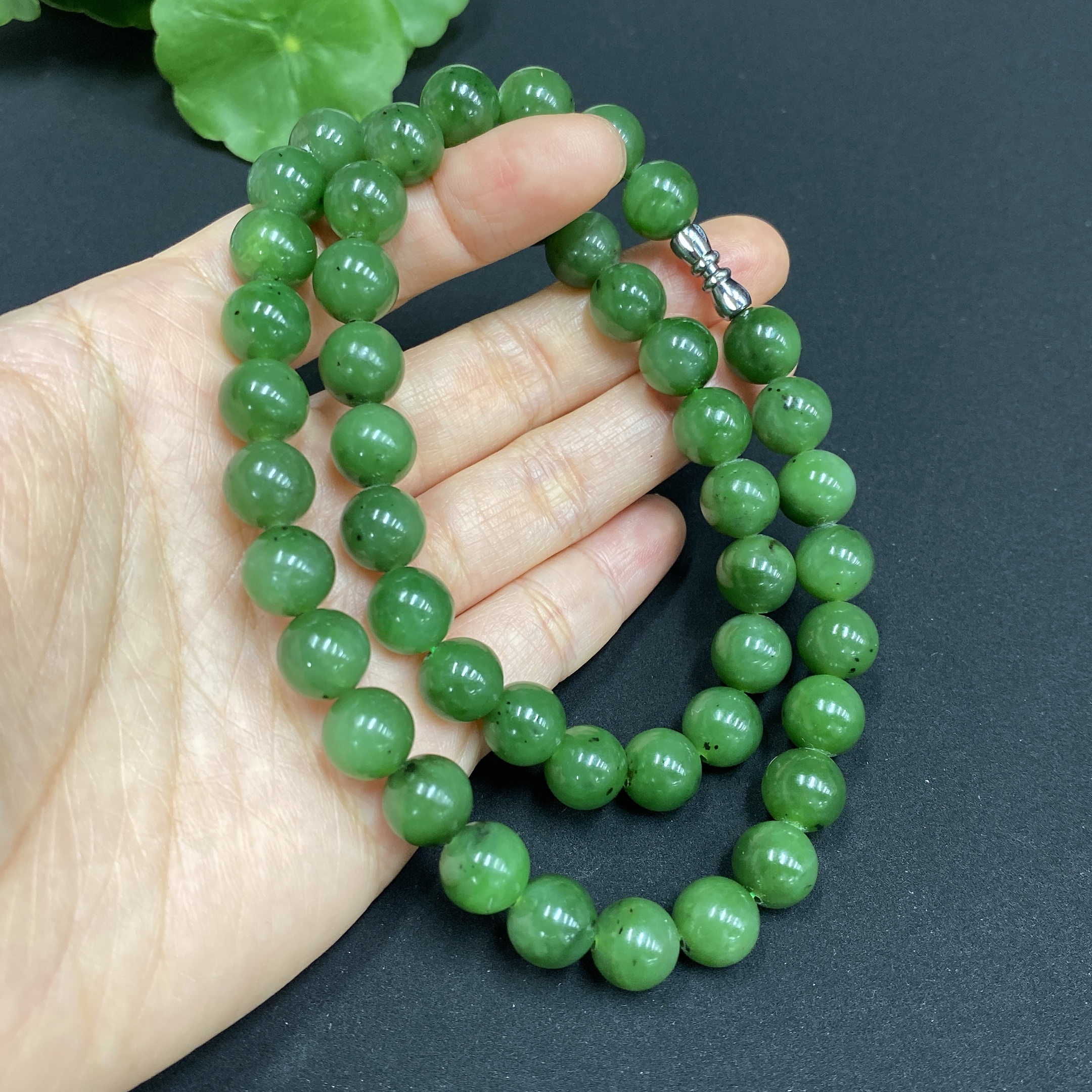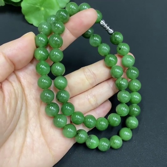 Hetian Jade Bead Necklace Approx. 9.4mm Total Weight Approx. 64.7g