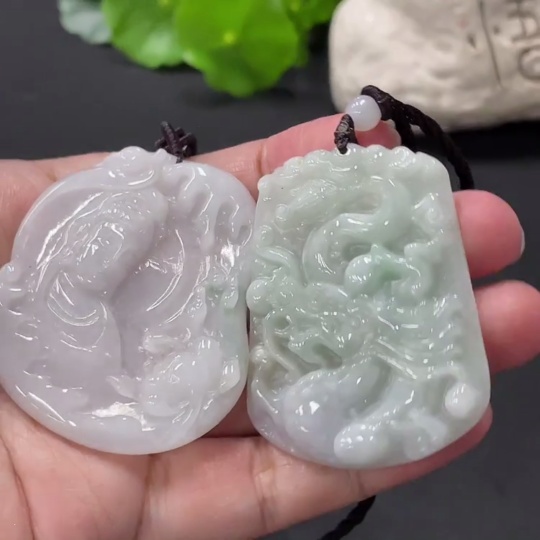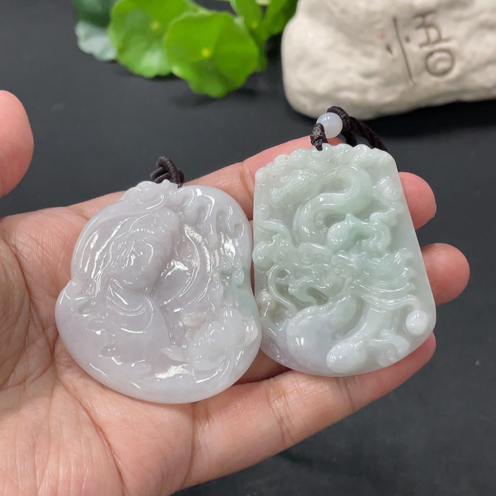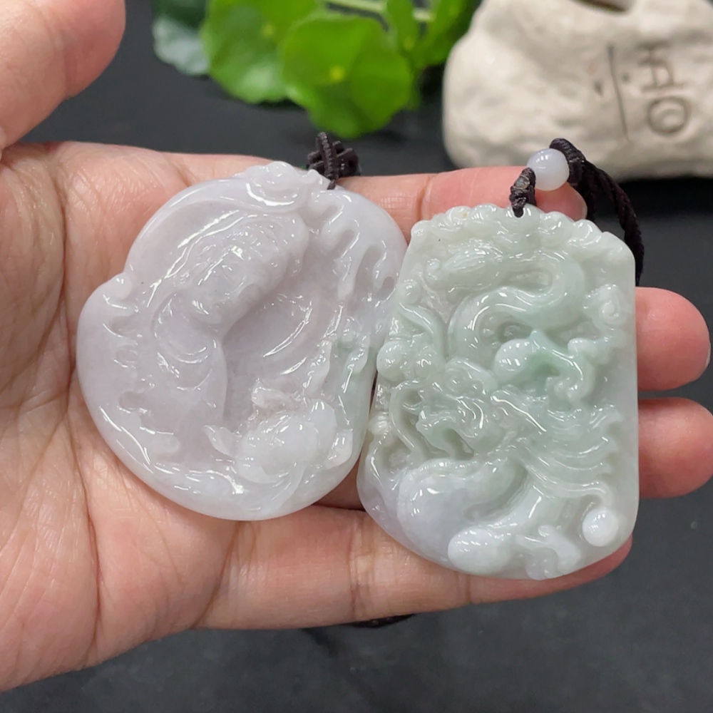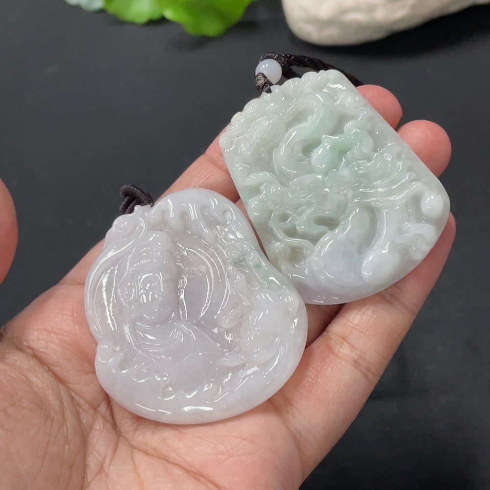 JadeitePendant Guanyin Plaque Dragon Plaque with Non-A Grade Beads