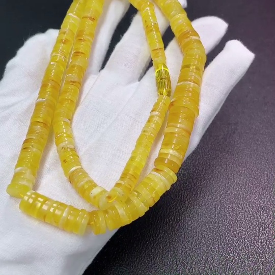Amber Beeswax Bead Strand Non-Gold Total Weight Approx. 34.4g Size 6.3-13.9mm