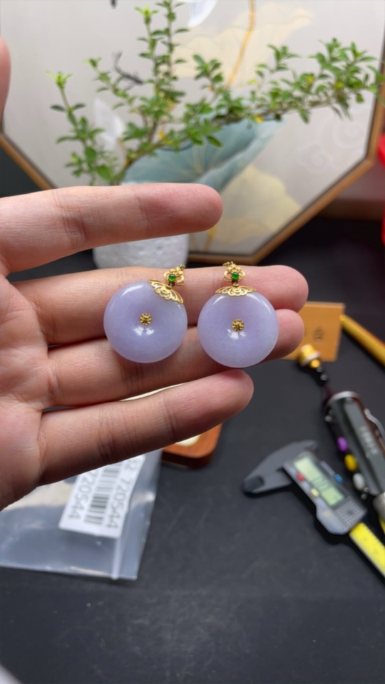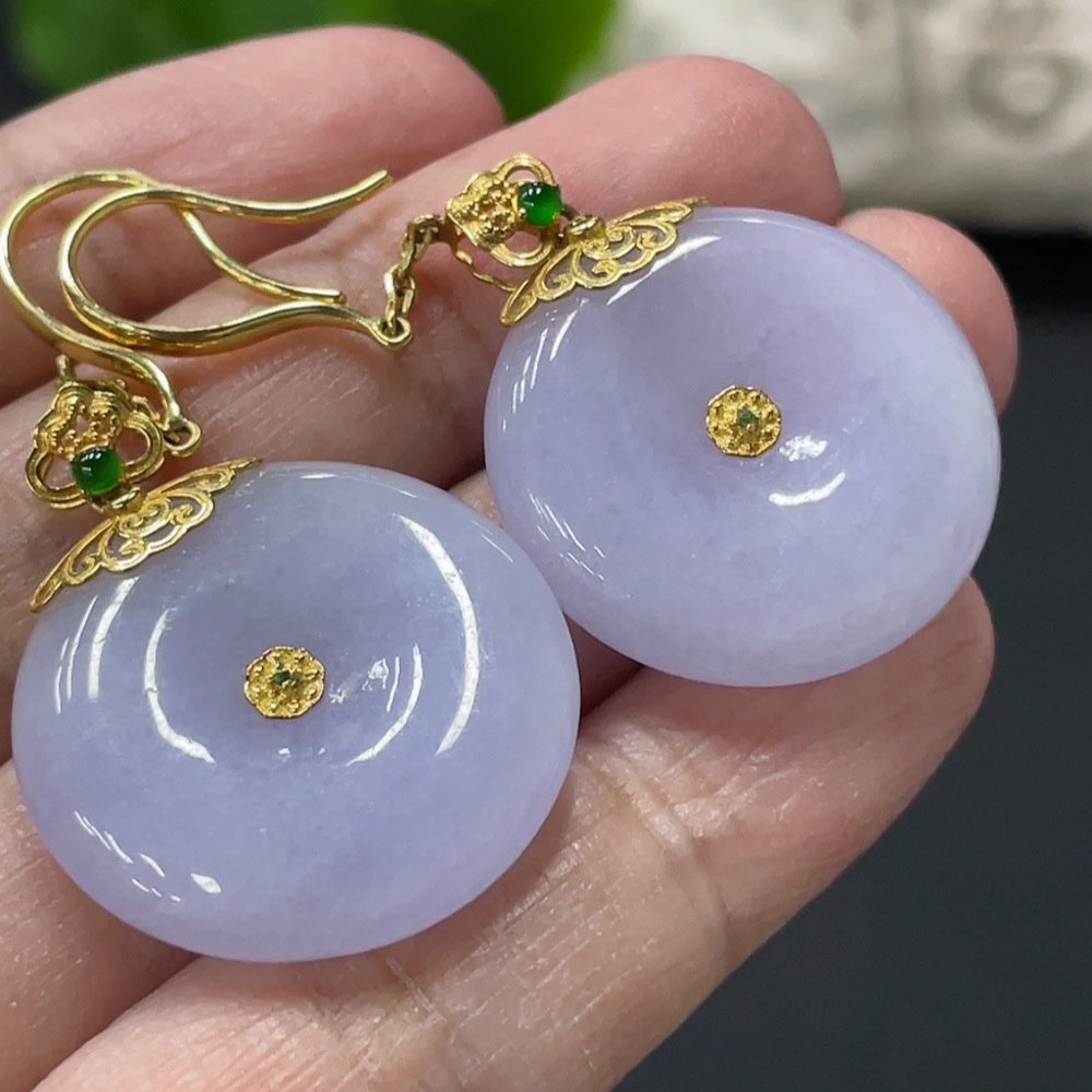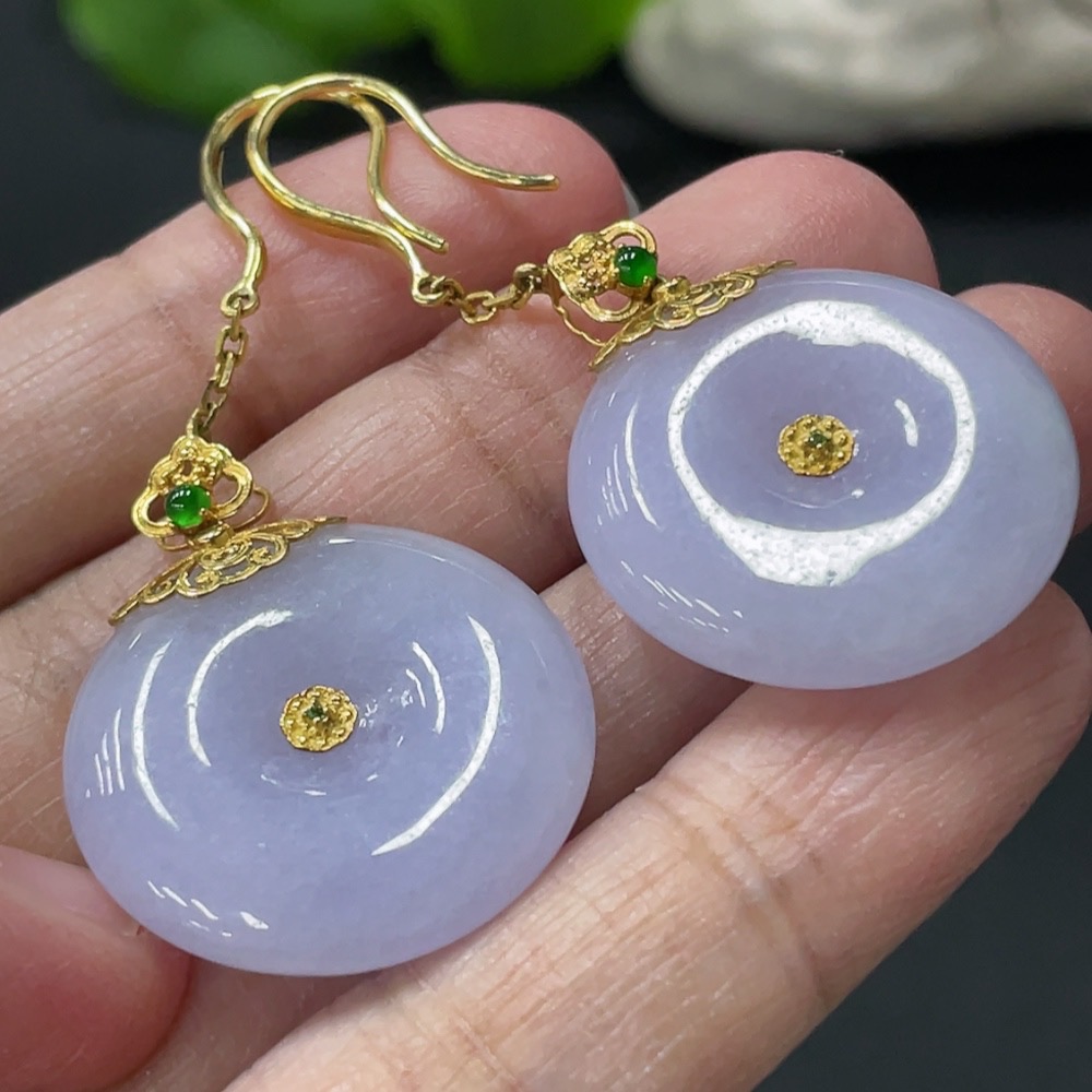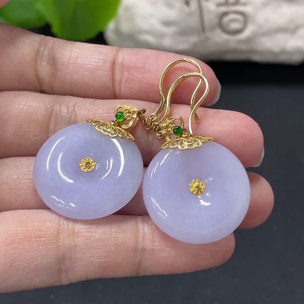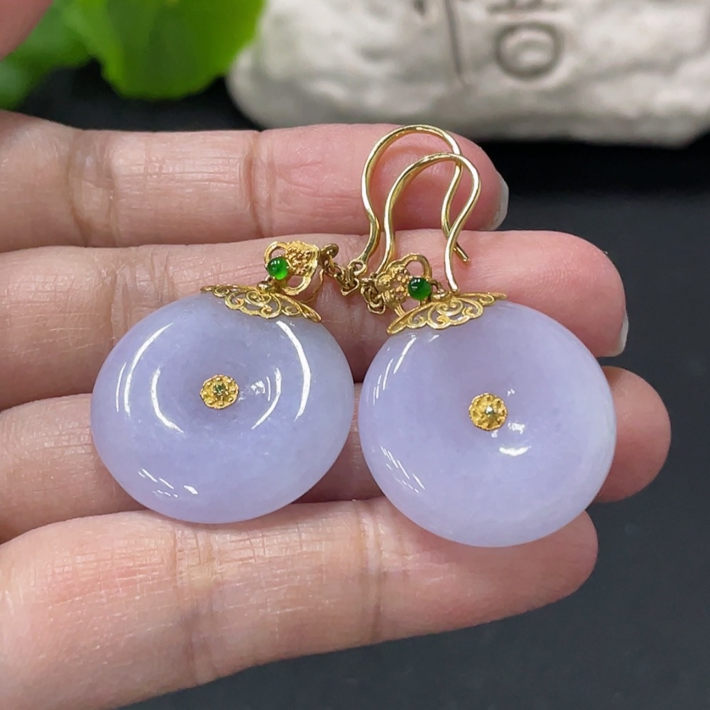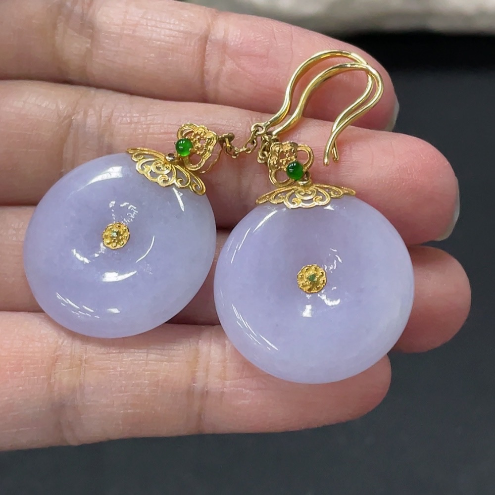 Jadeite Peace Buckle Inlaid Ear Hook Pair 18k Gold Inlaid Total Product Weight Approx. 14.56g