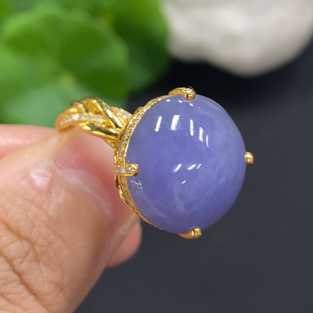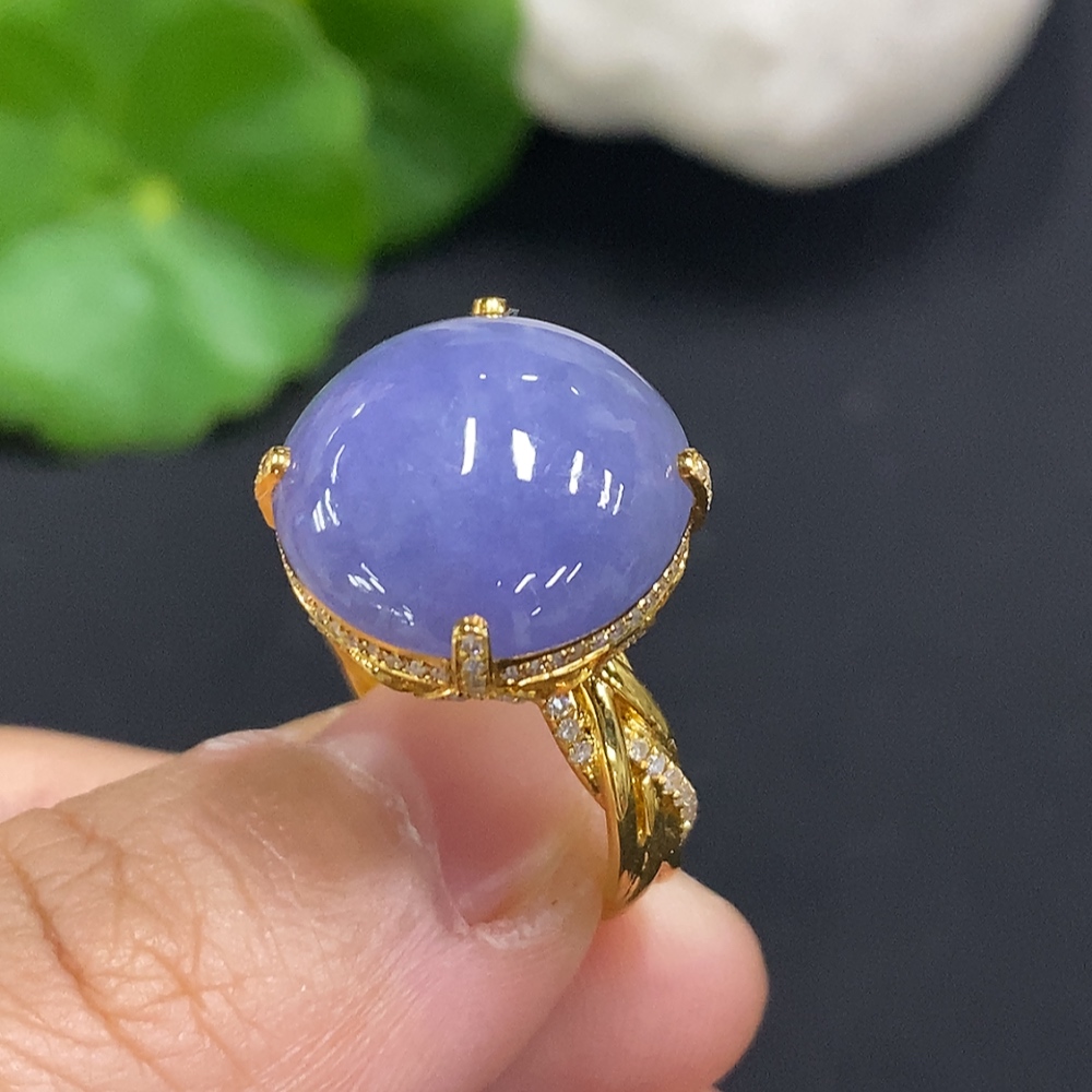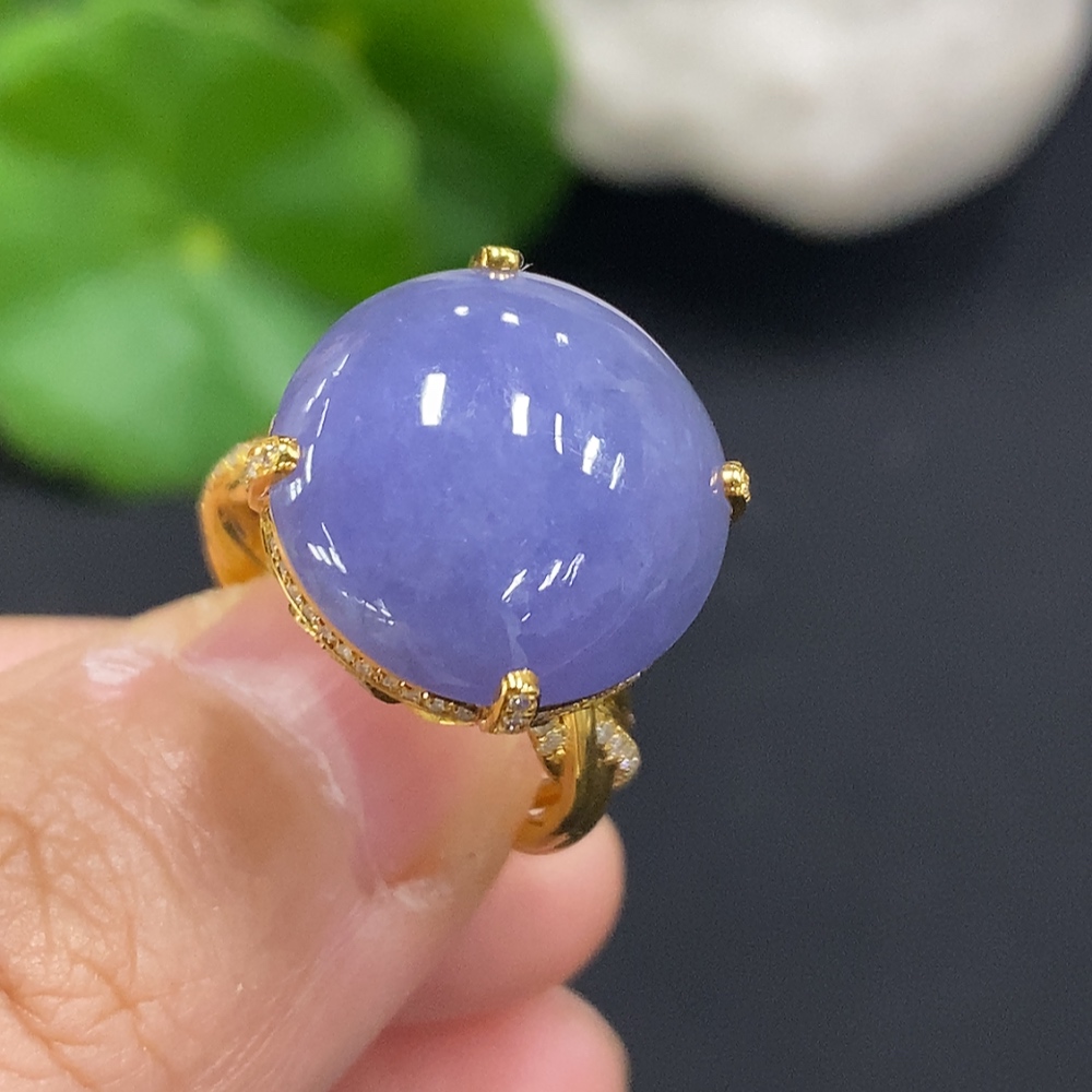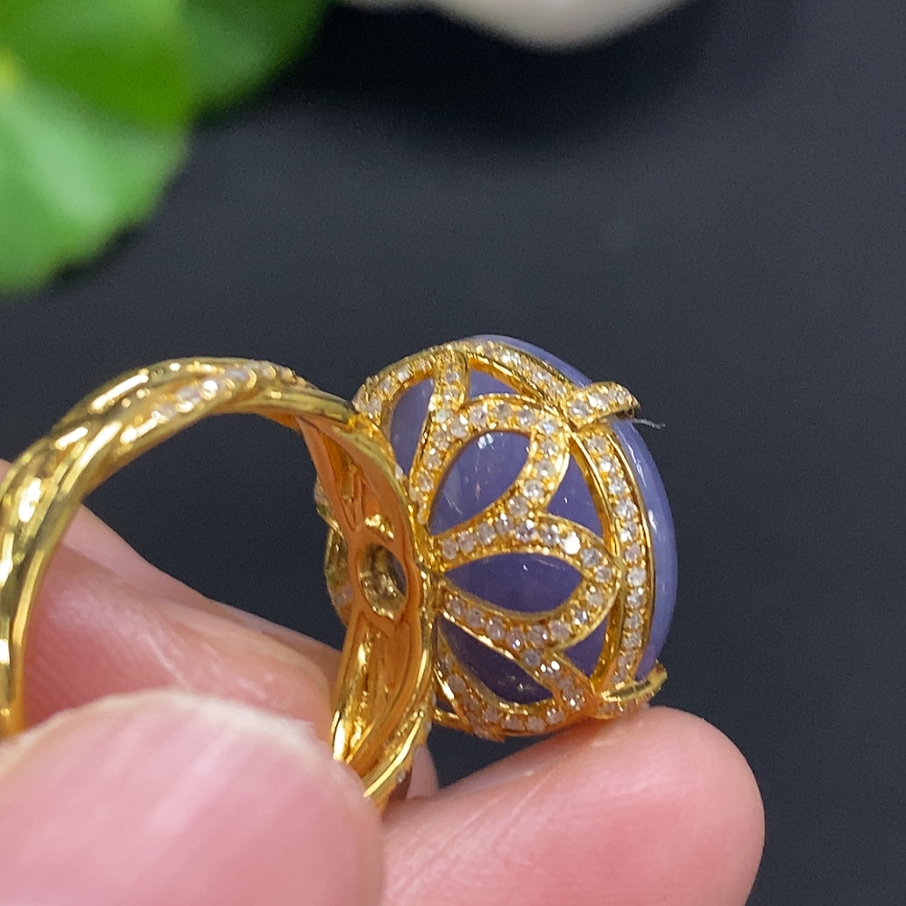 Jadeite Cabochon Inlaid Ring 18K Gold Size 12 Total Weight Approx. 7.5g (with Diamond Accents)