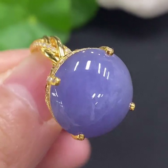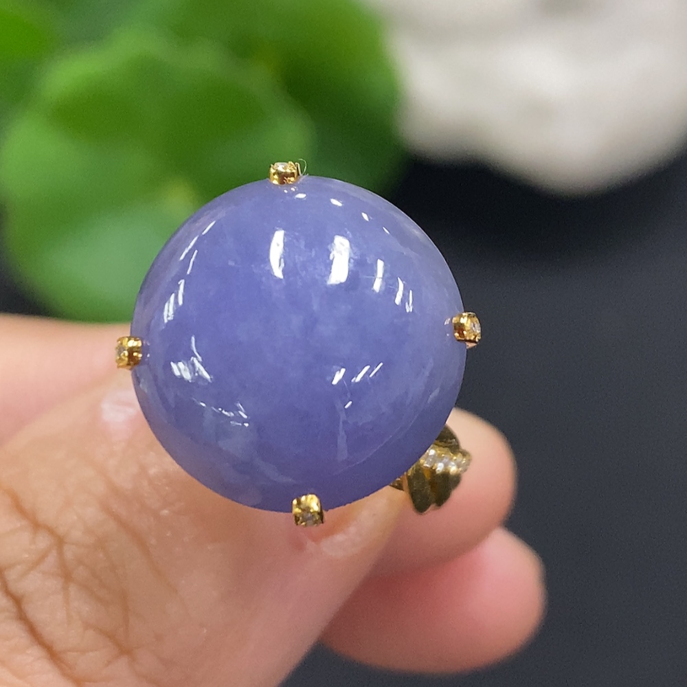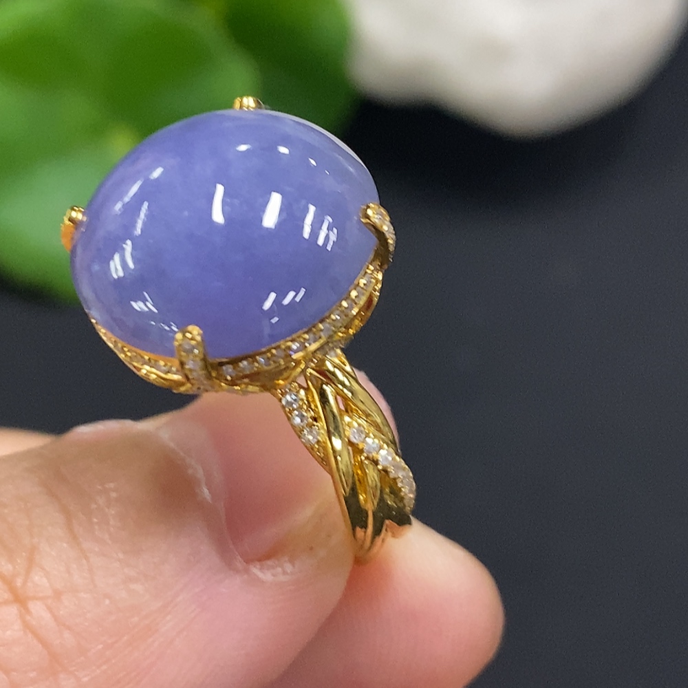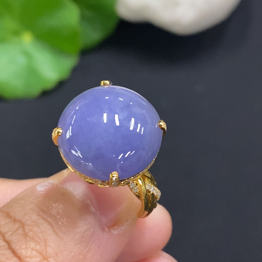 Jadeite Cabochon Inlaid Ring 18K Gold Size 12 Total Weight Approx. 7.5g (with Diamond Accents)