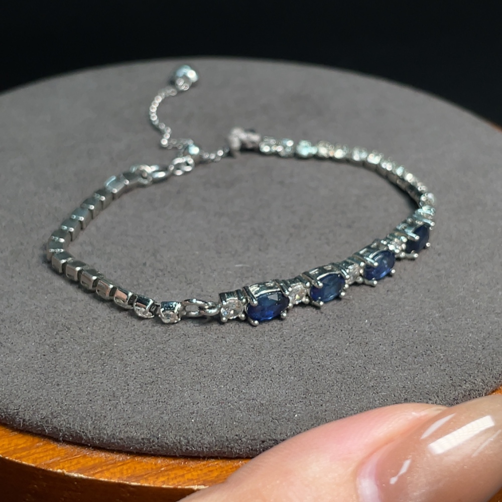 Sapphire Bracelet, Color Origin Undetermined, Non-Gold, Total Weight Approx. 4.29g