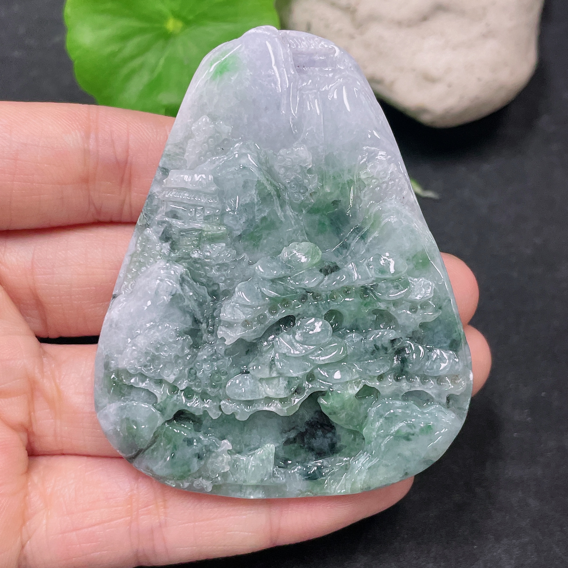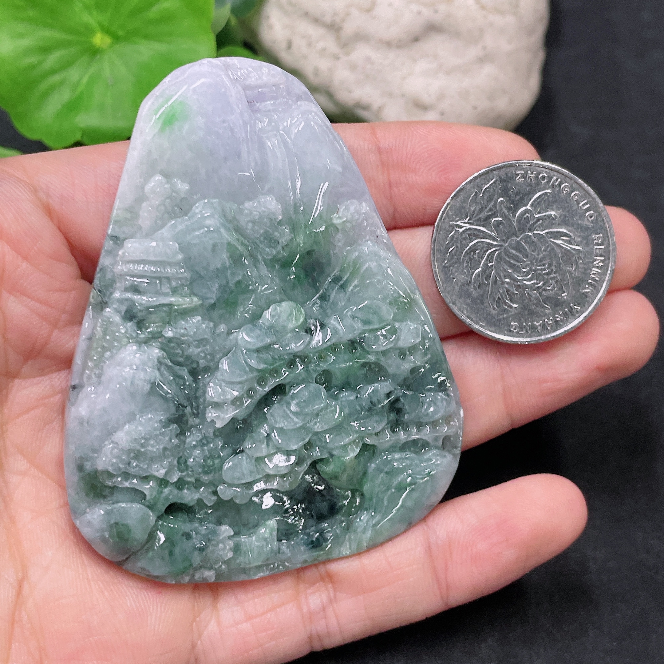 JadeitePendant Landscape with Other Mineral Components, Total Weight Approx. 74.3g