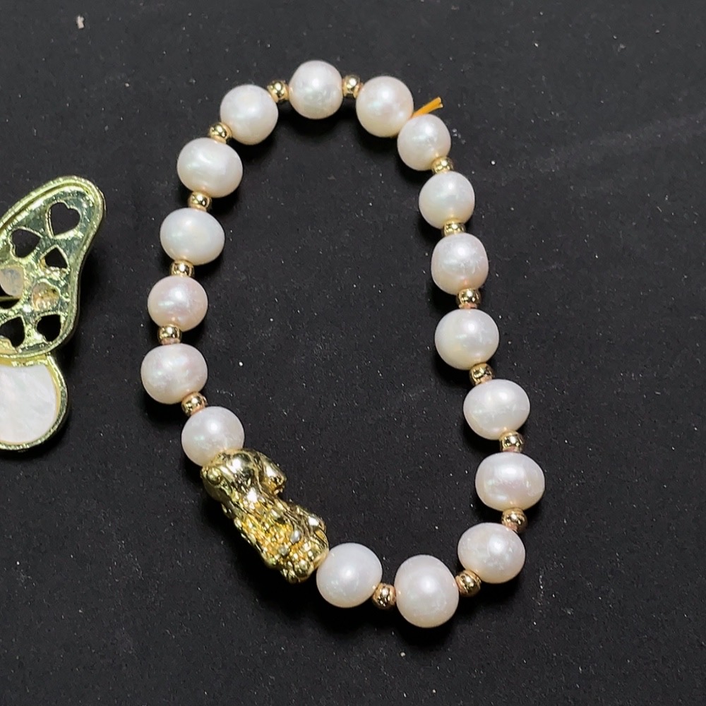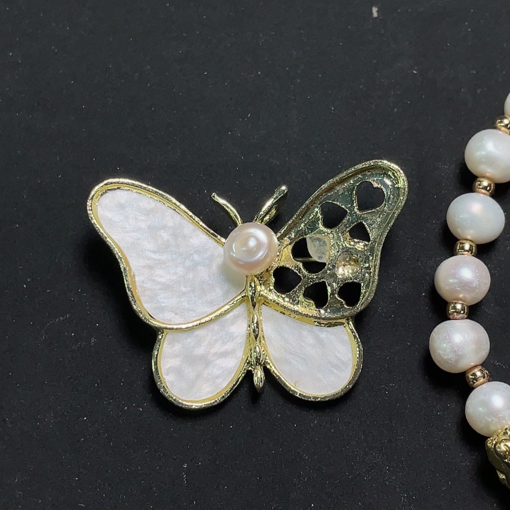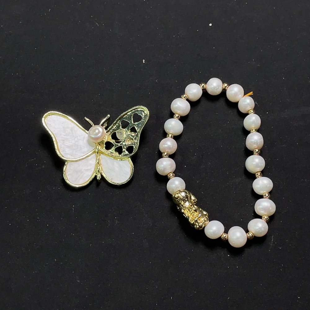 Pearl Brooch + Bracelet, Total Weight Approx. 21.16g, Non-Gold Setting, Sell as a Lot