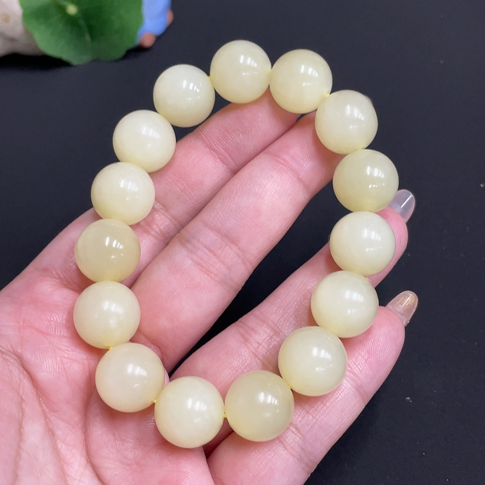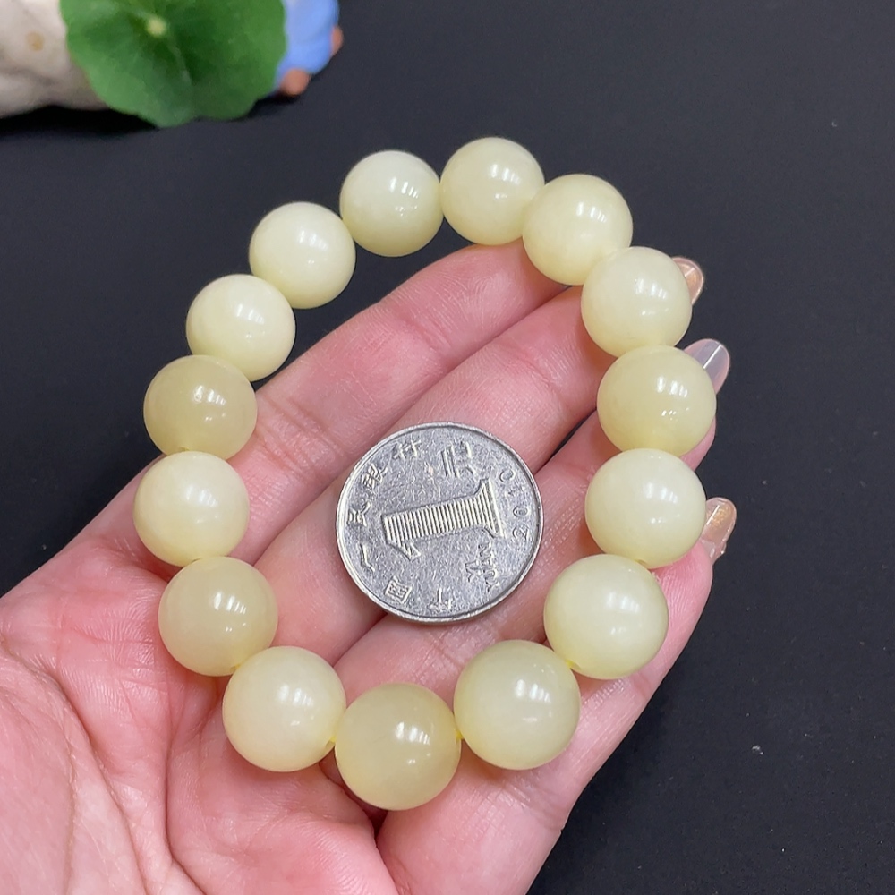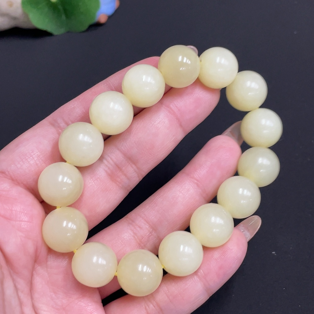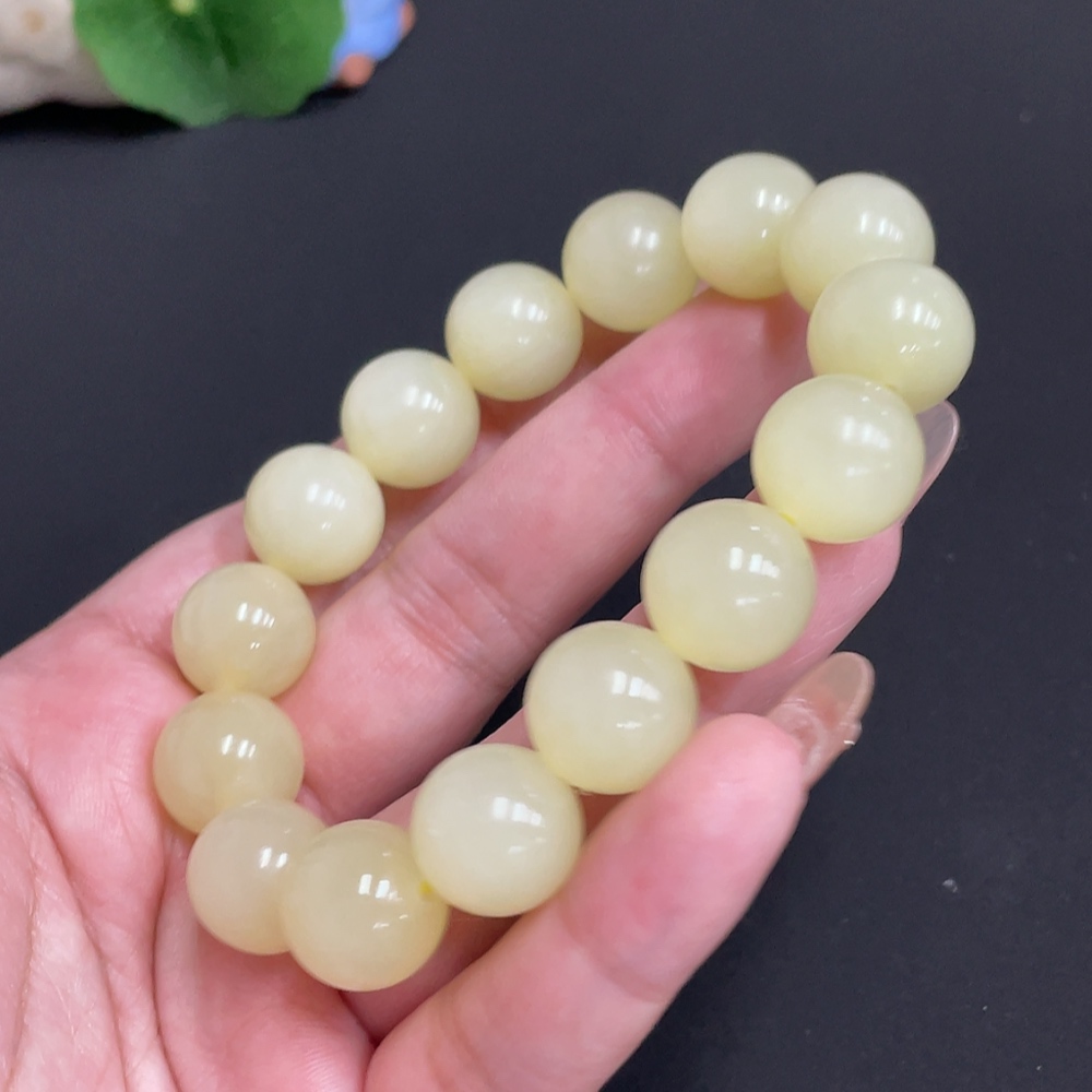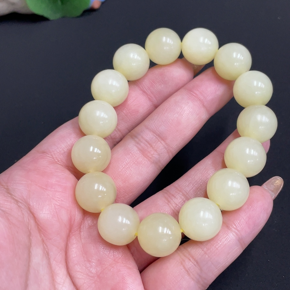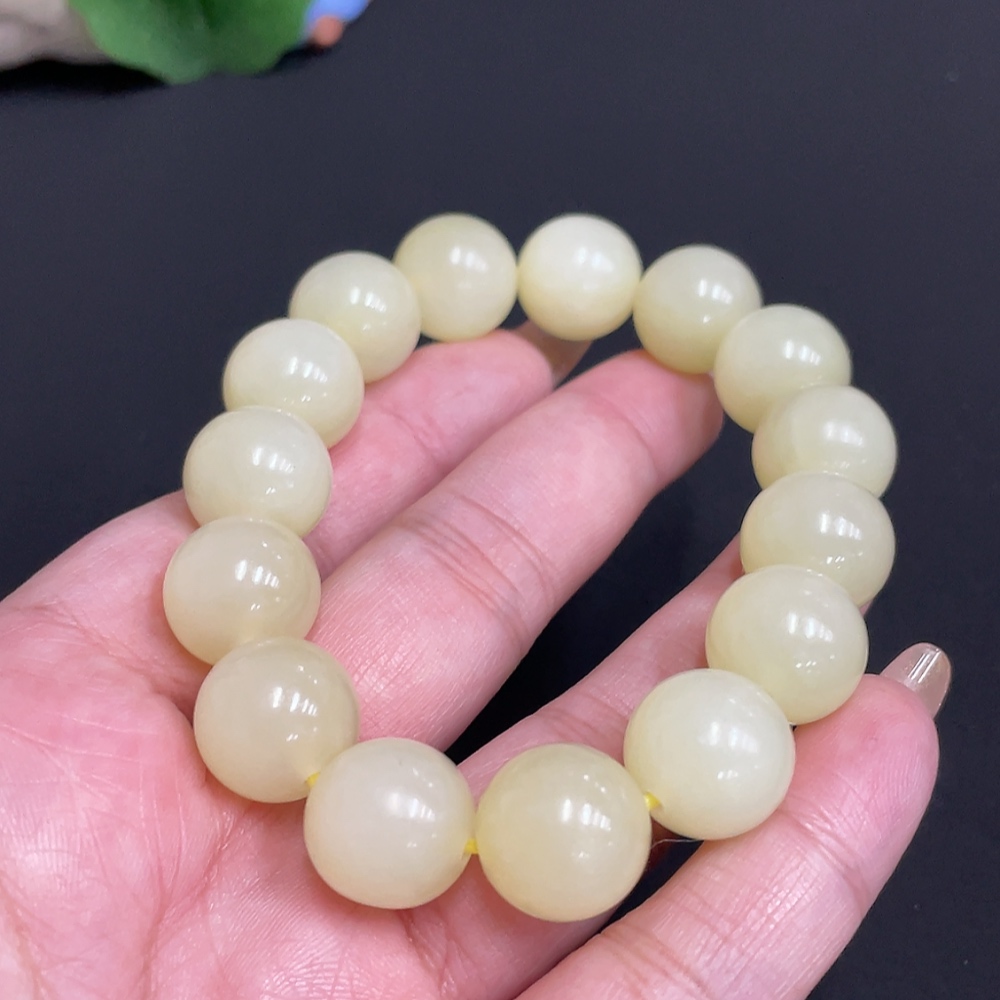 Hetian Jade Bracelet, Approx. 13.4 mm Beads, Total Weight Approx. 62.6g