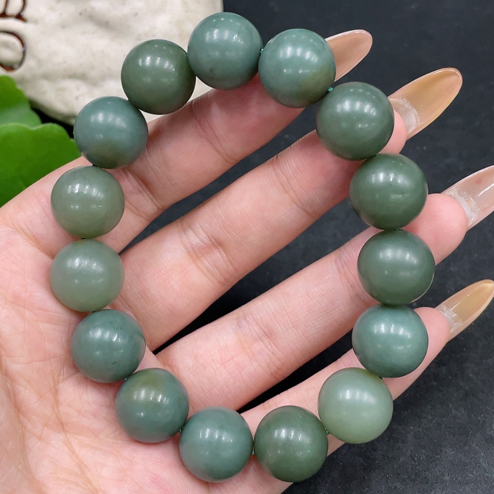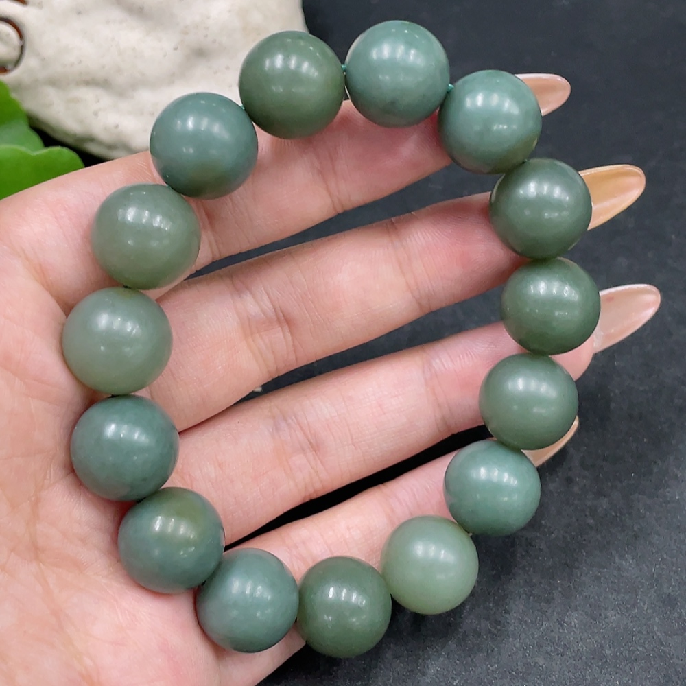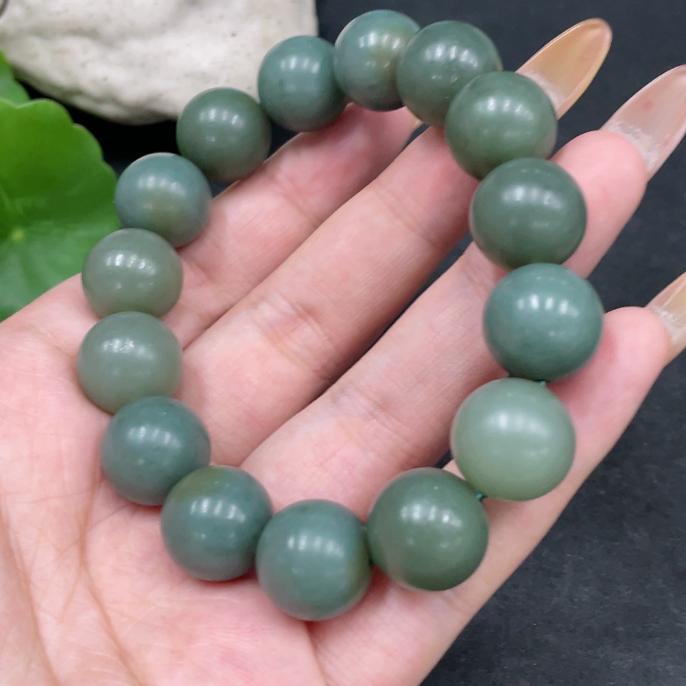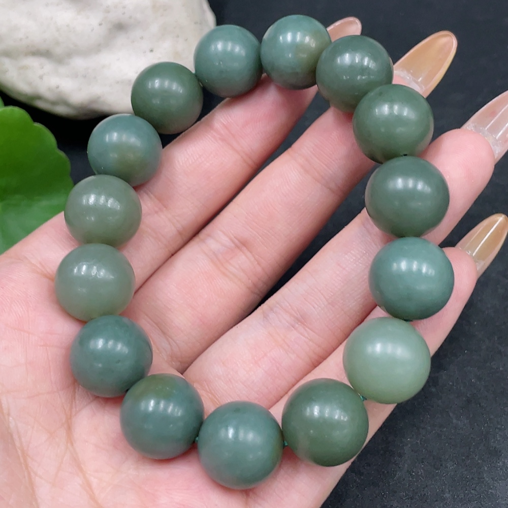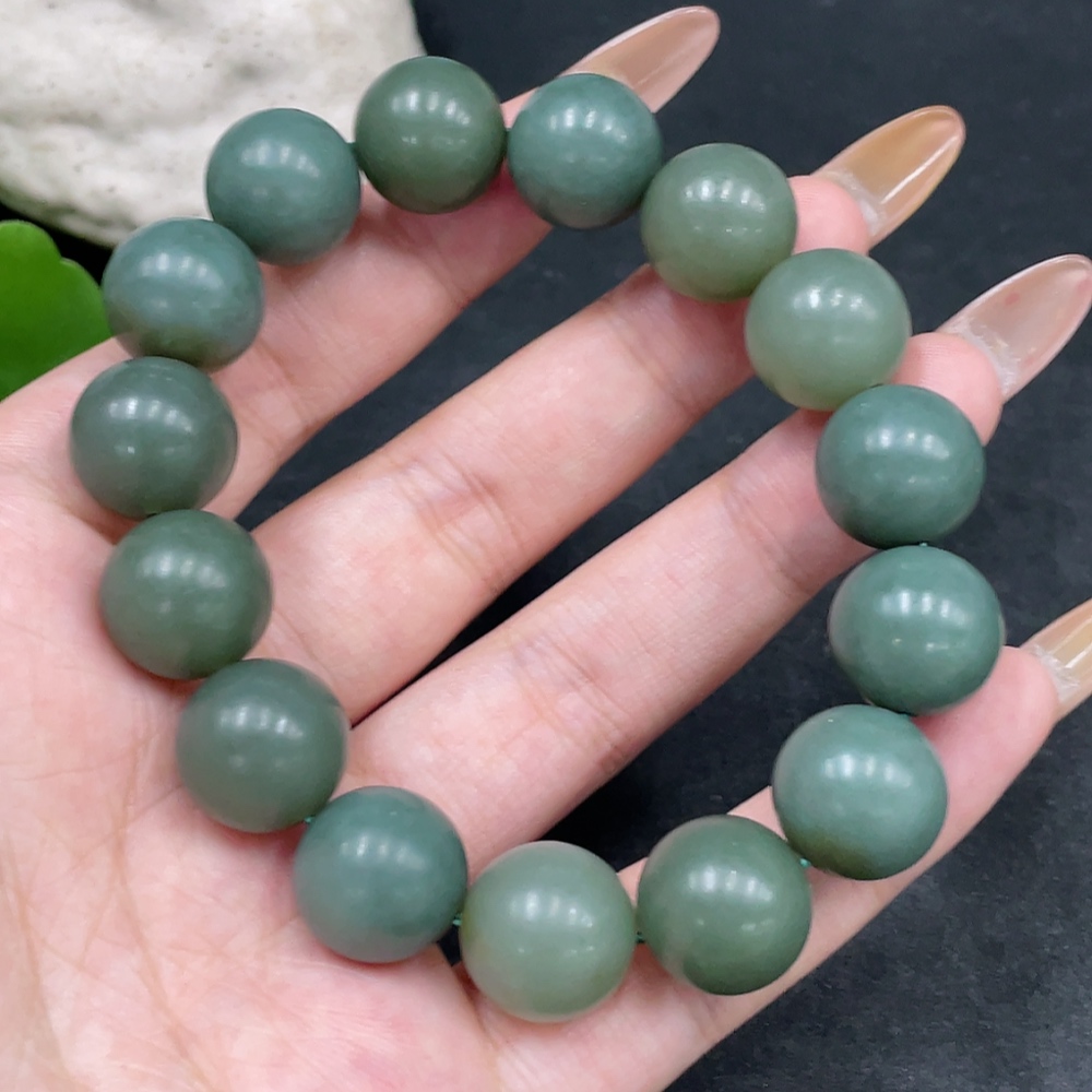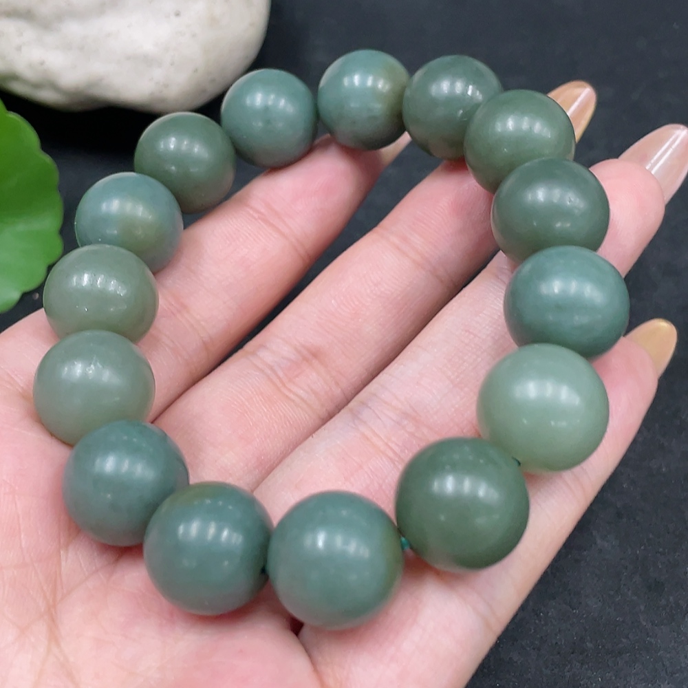 Hetian Jade Bracelet, Approx. 13.6mm Beads, Total Weight Approx. 62.2g