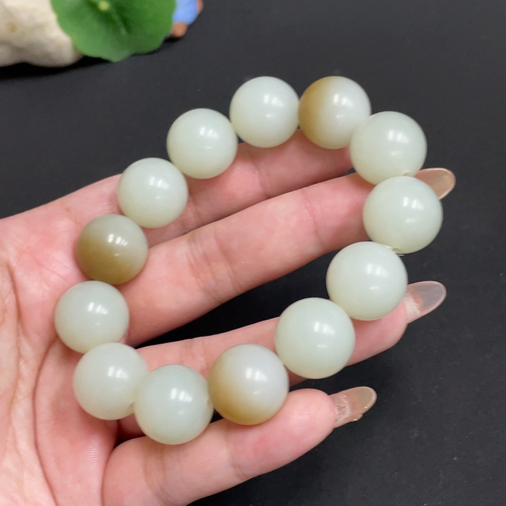 Hetian Jade Bracelet, Approx. 15.9 mm Beads, Total Weight Approx. 81.8g