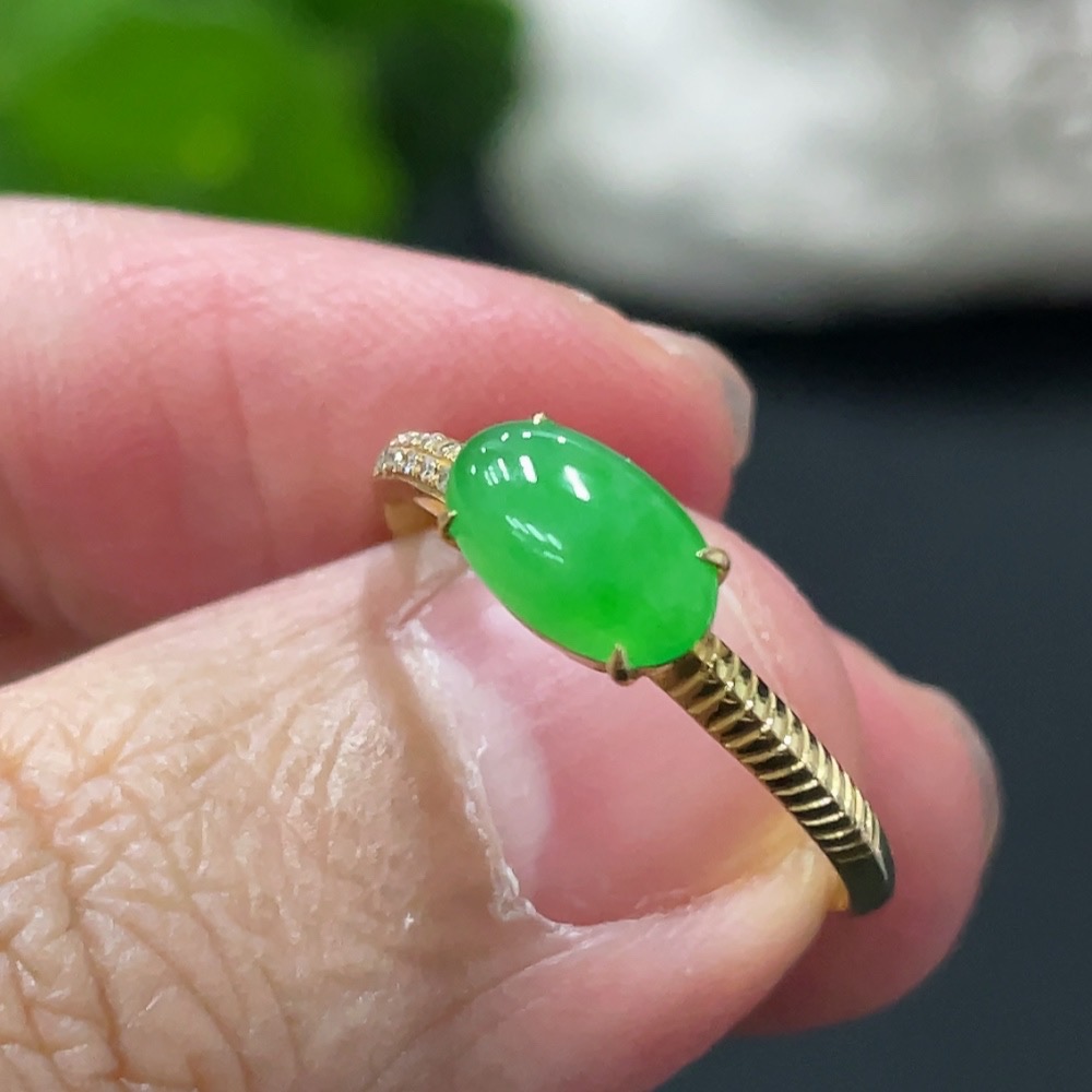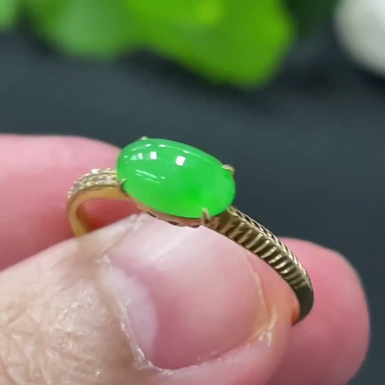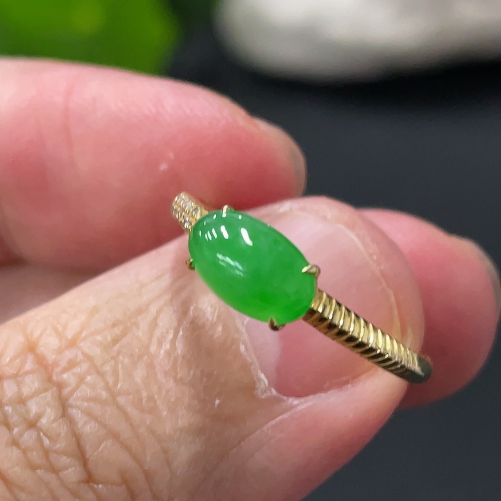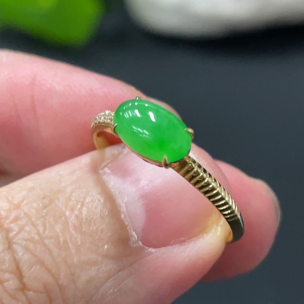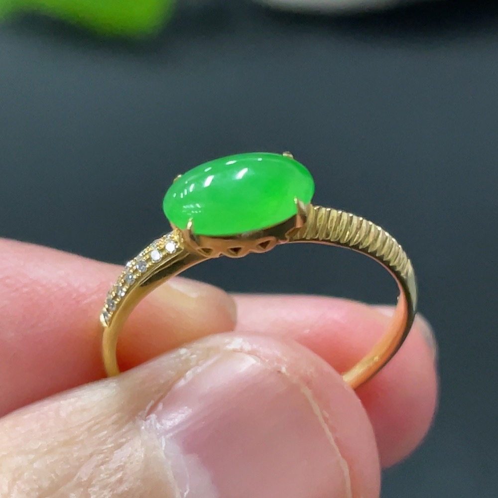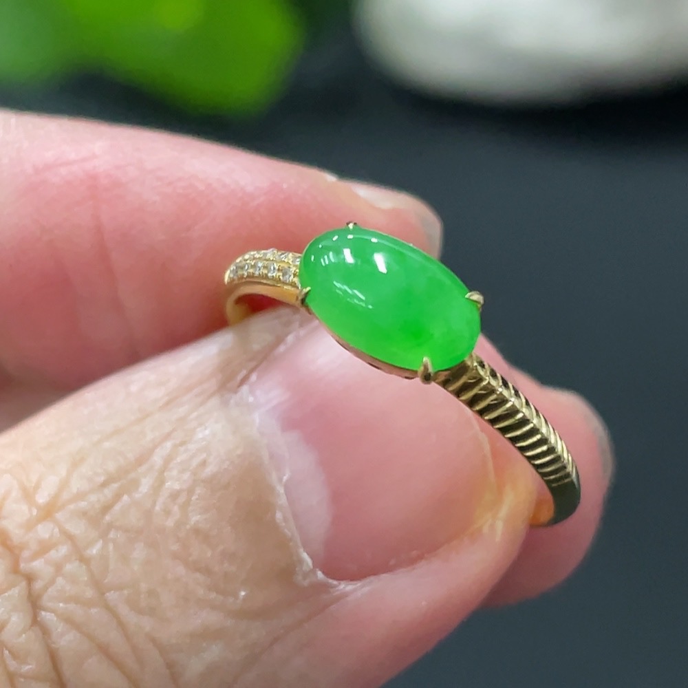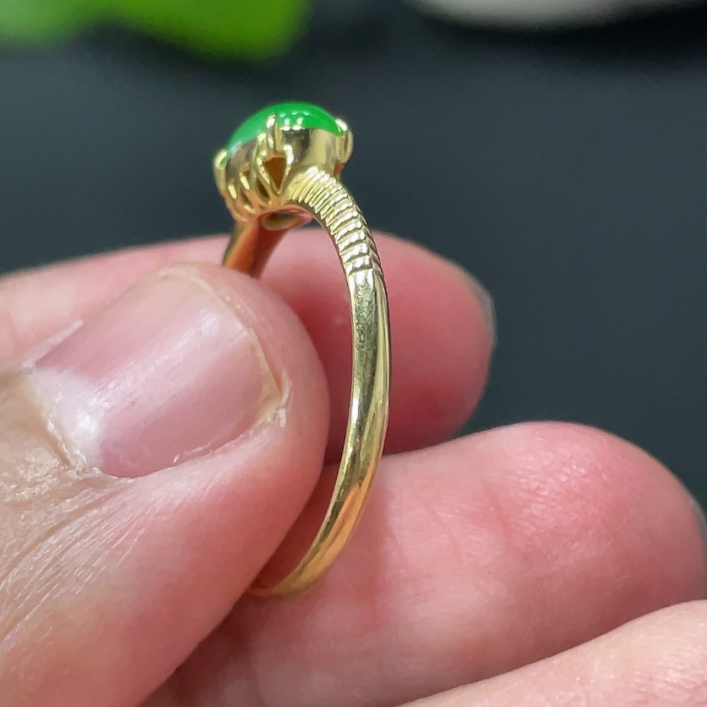 Jadeite Cabochon Inlaid Ring 18k Gold Inlaid Size 15 Total Weight Approx. 1.77g
