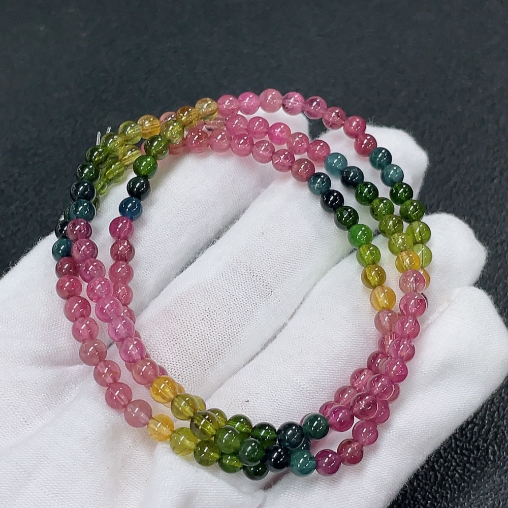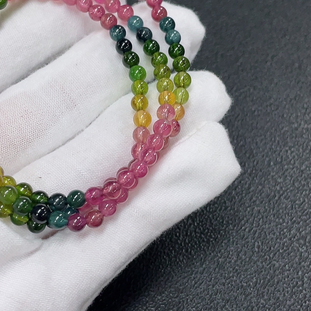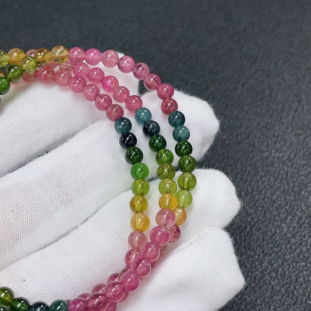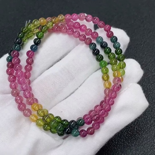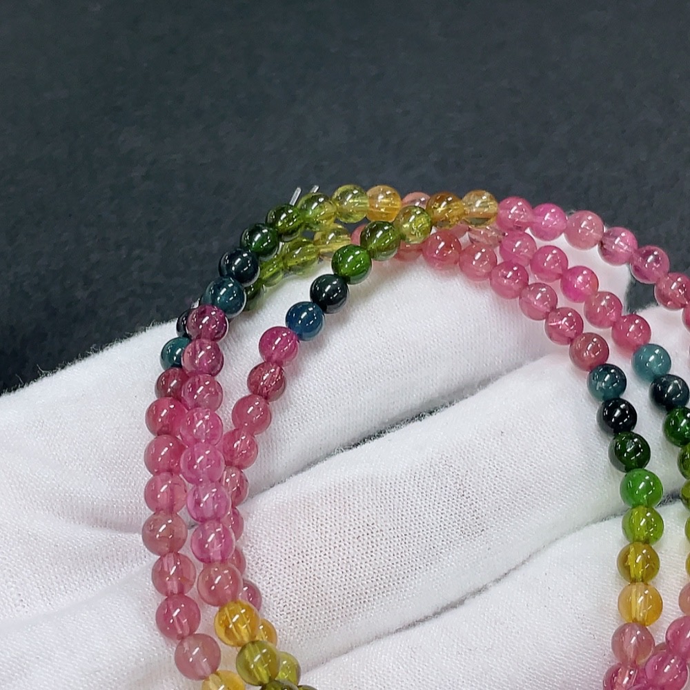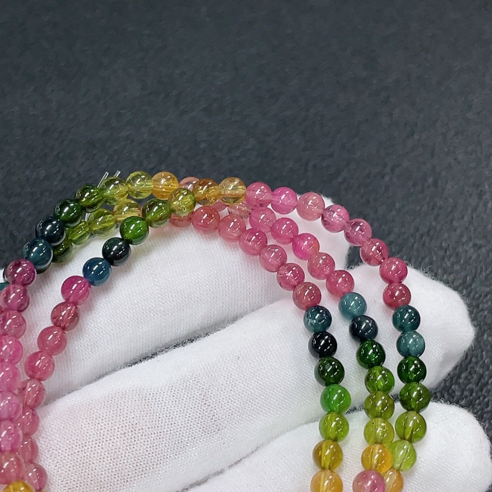 Tourmaline Bead Strand with Other Mineral Components and Visible Organic Matter, Total Weight Approx. 15.85g, Size About 4.2mm