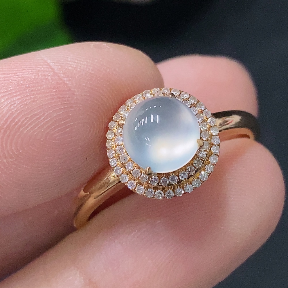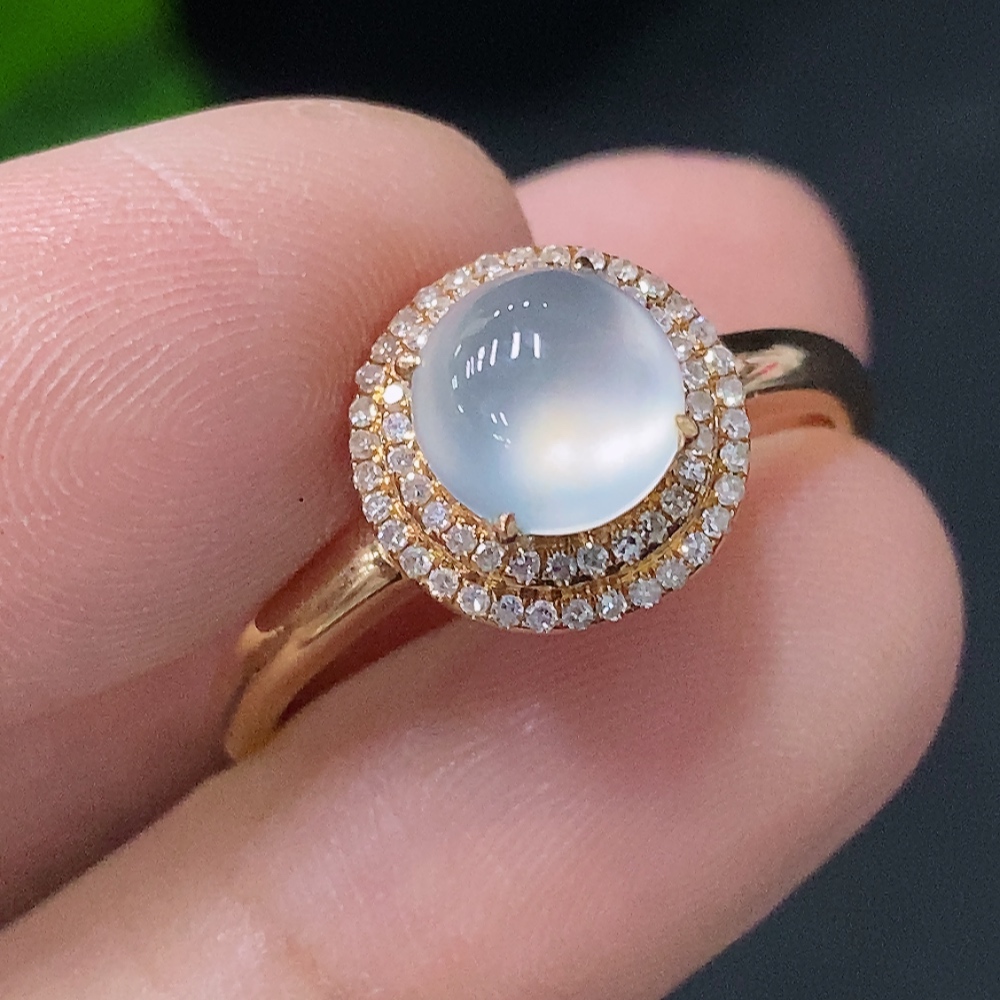 Jadeite Inlaid Ring 18k with Diamond Accents Size 17 Total Weight Approx. 3.17g