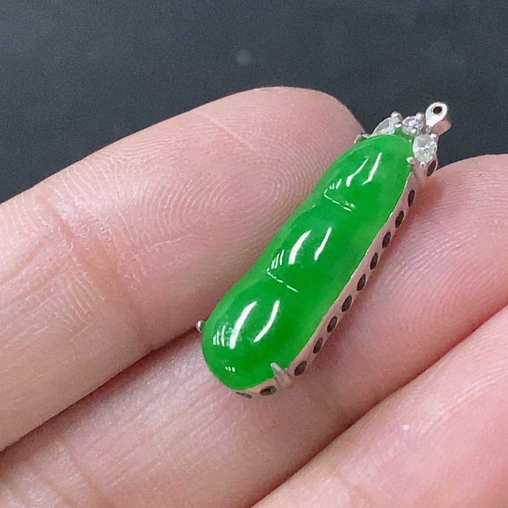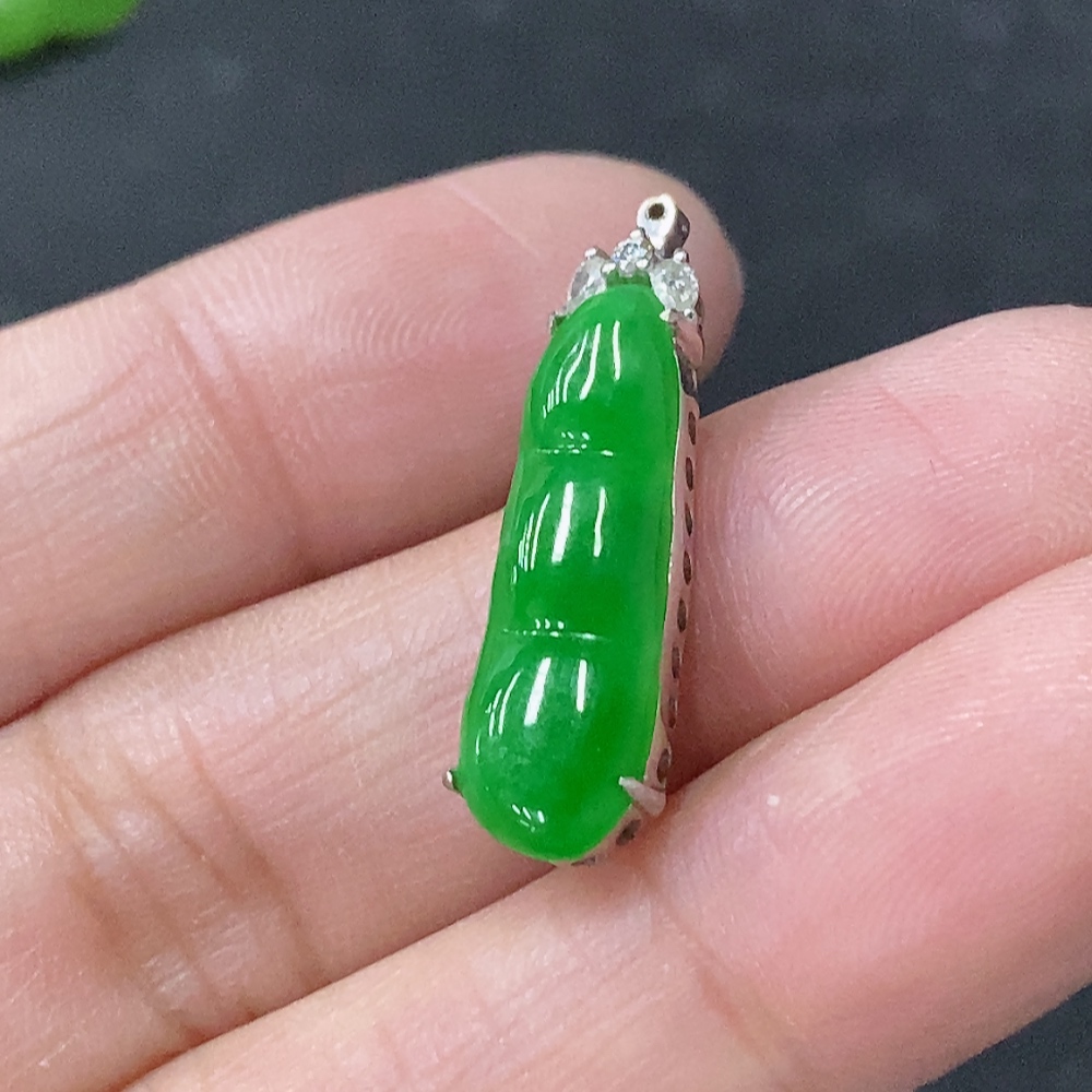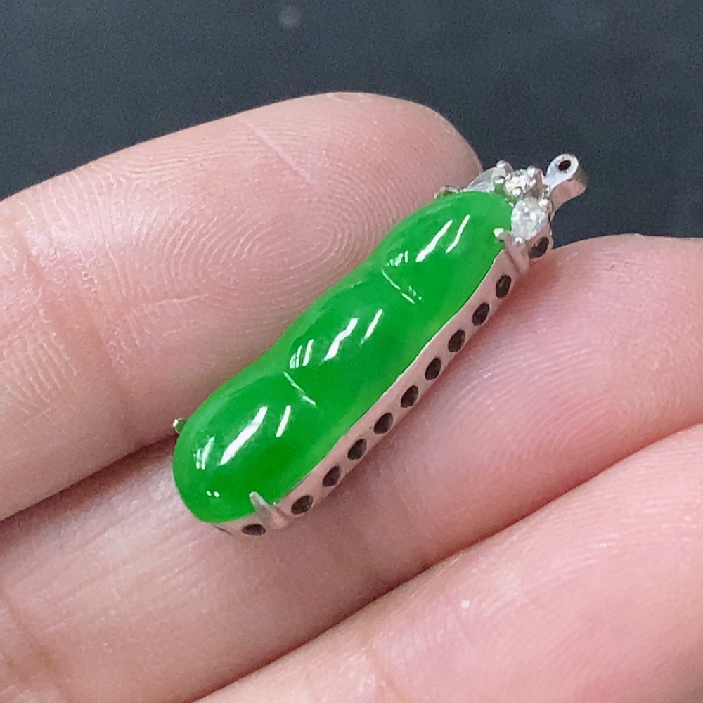 Jadeite Inlaid Blessing Bean Pendant with 18K Gold and Diamond Accents, Total Weight Approximately 2.13g