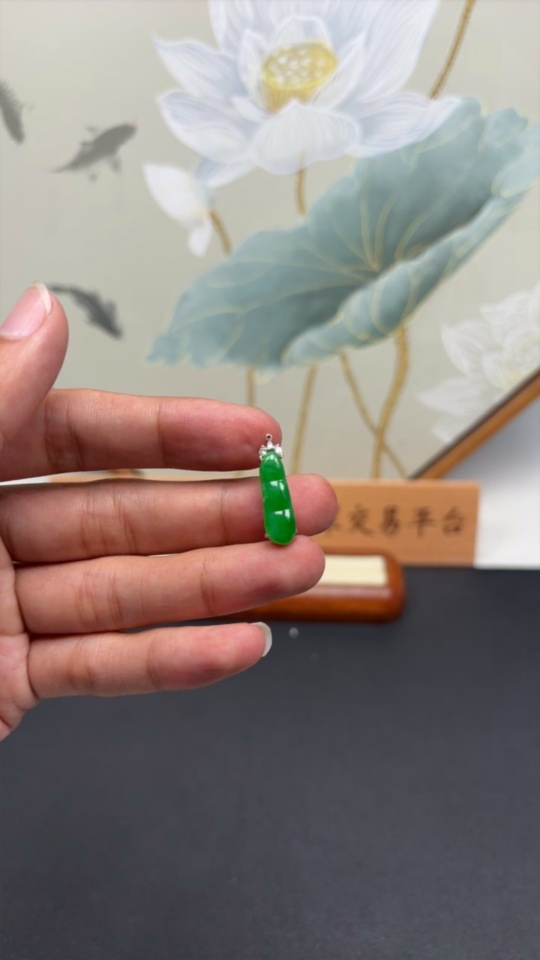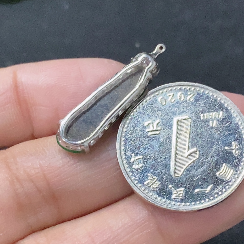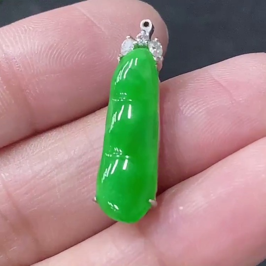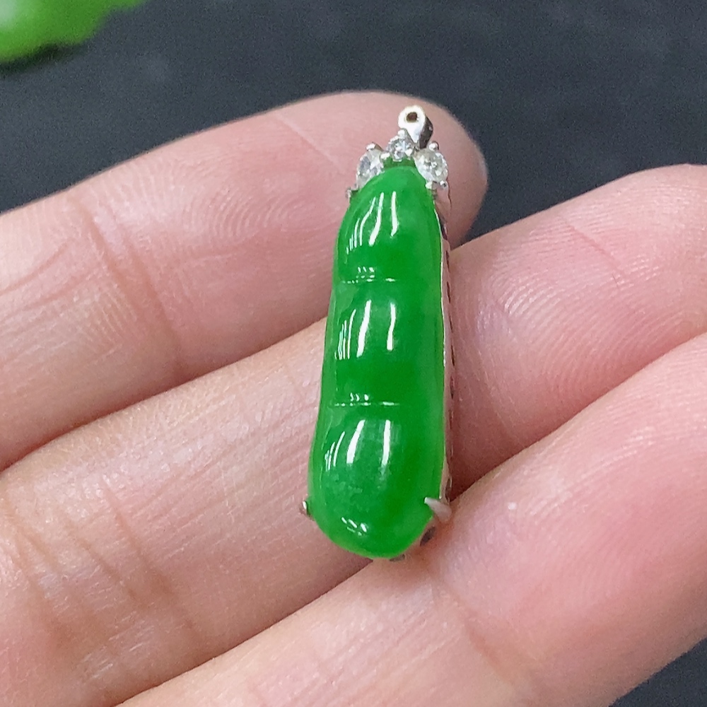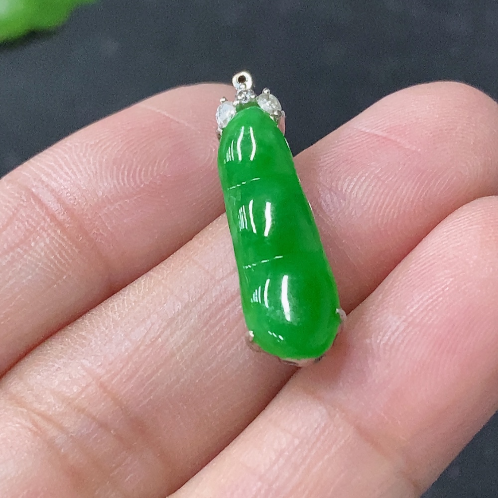 Jadeite Inlaid Blessing Bean Pendant with 18K Gold and Diamond Accents, Total Weight Approximately 2.13g