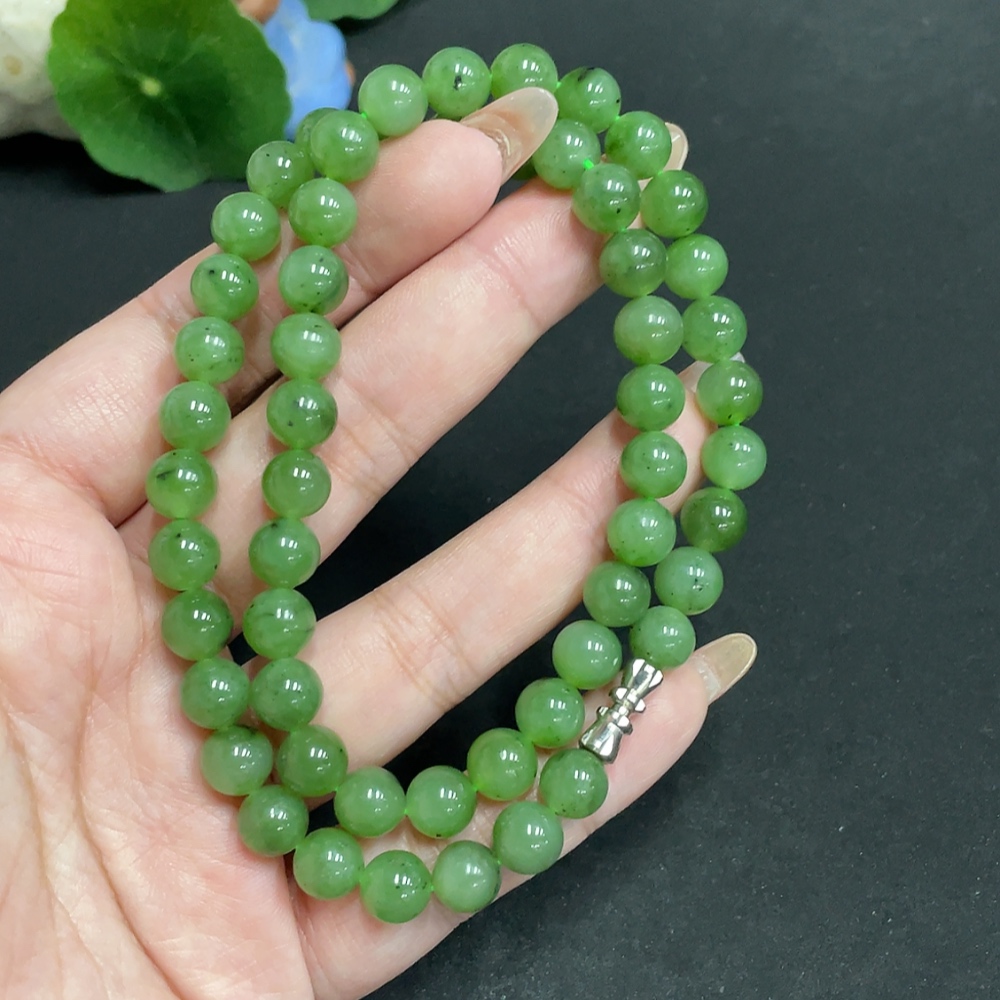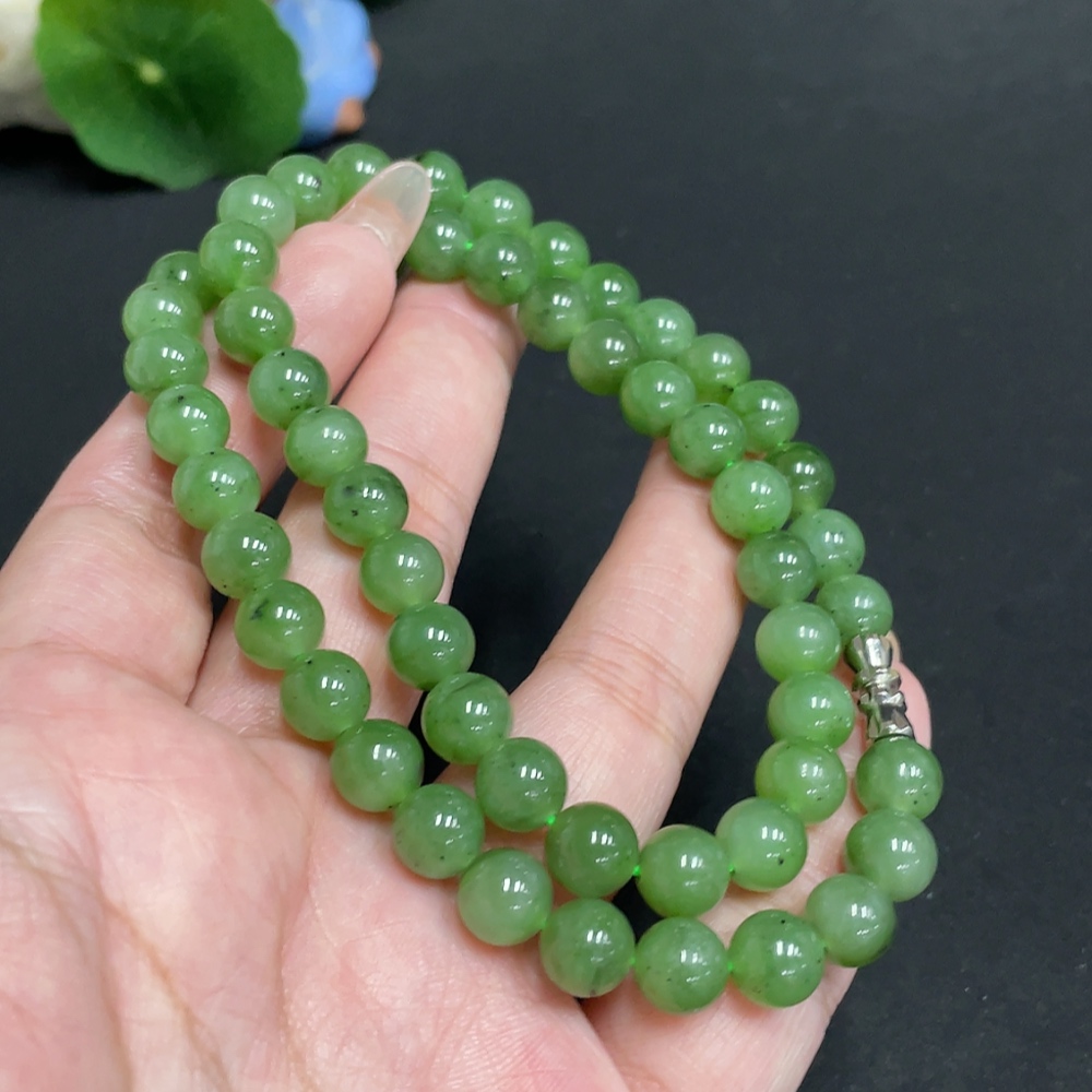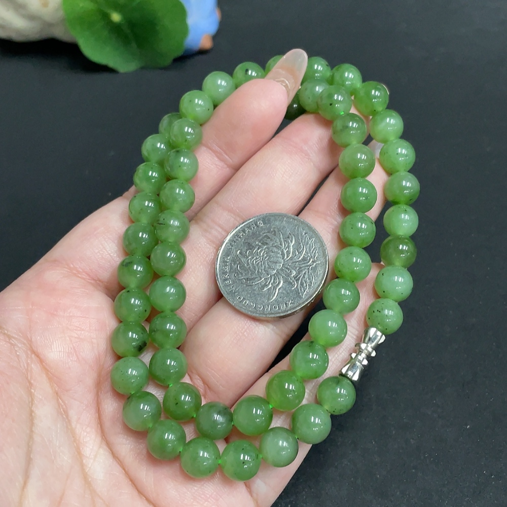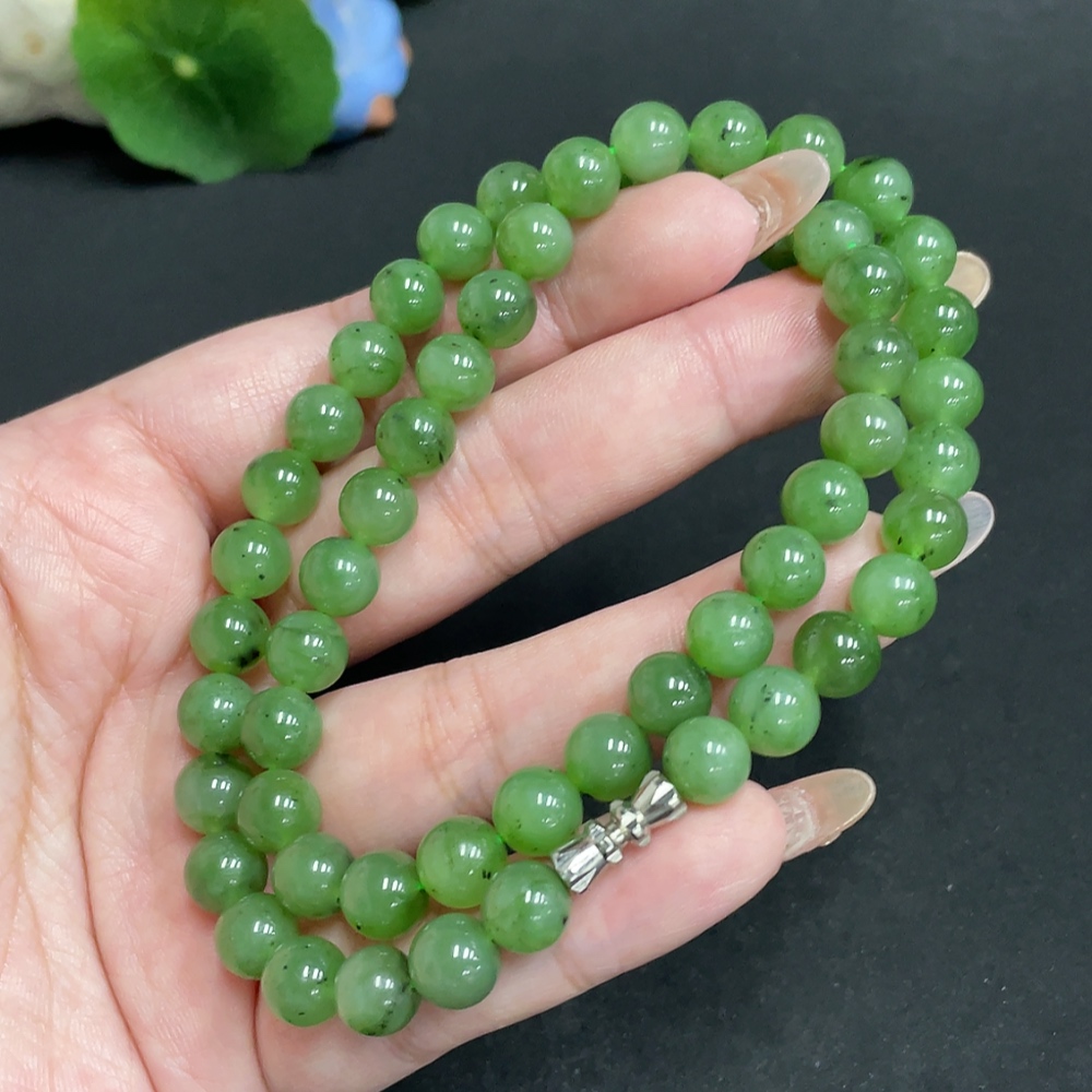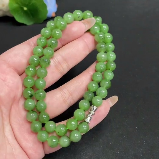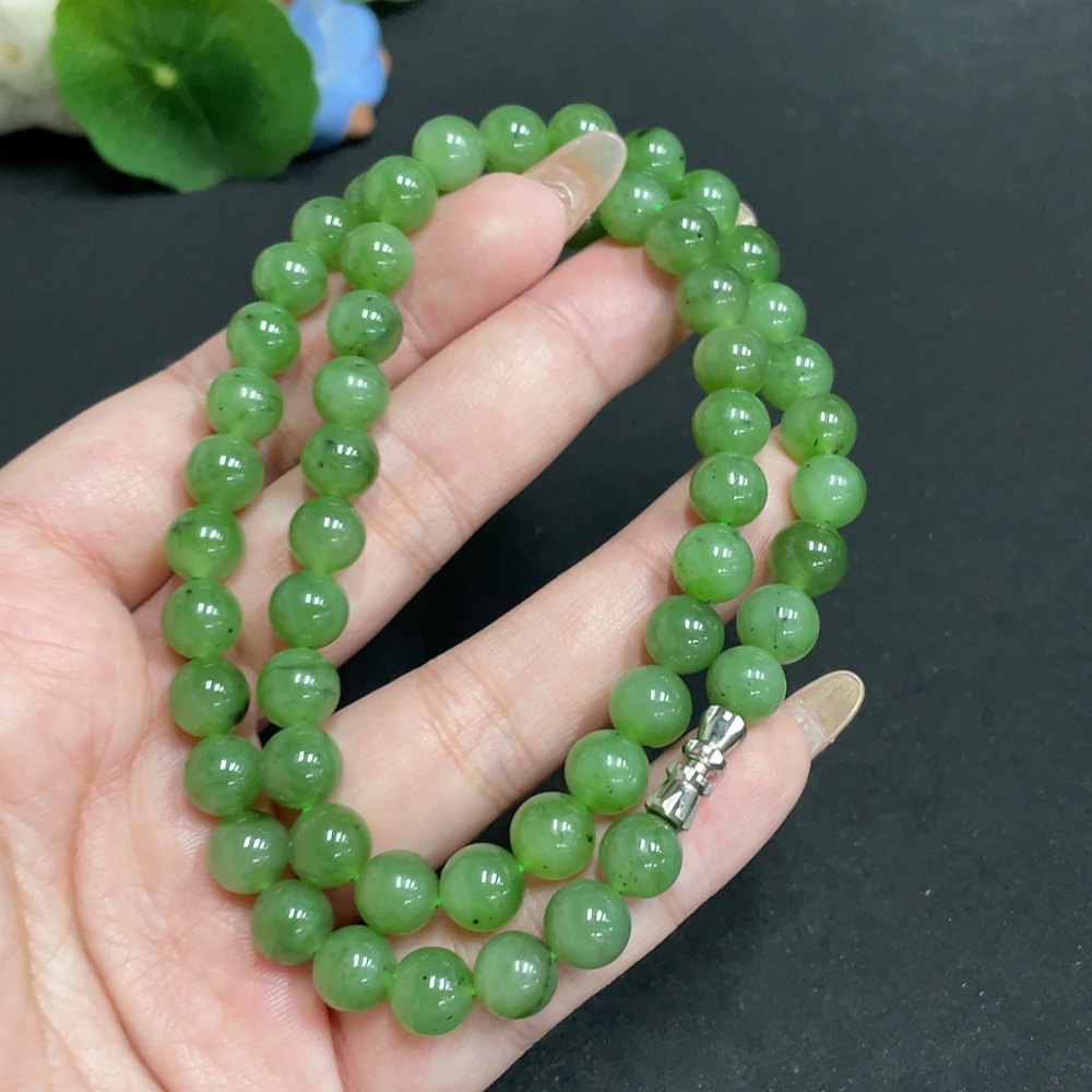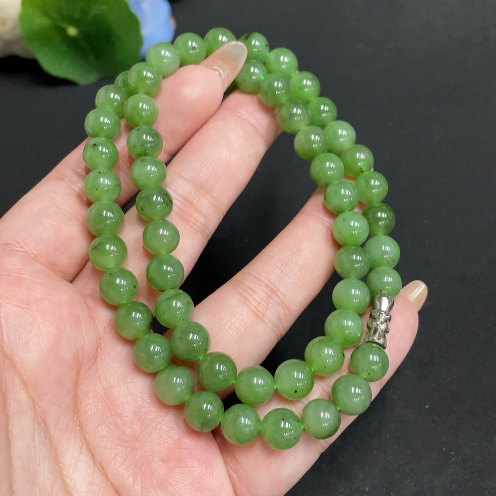 Hetian Jade Bead Necklace, Approx. 7.8mm, Total Weight Approx. 45.3g