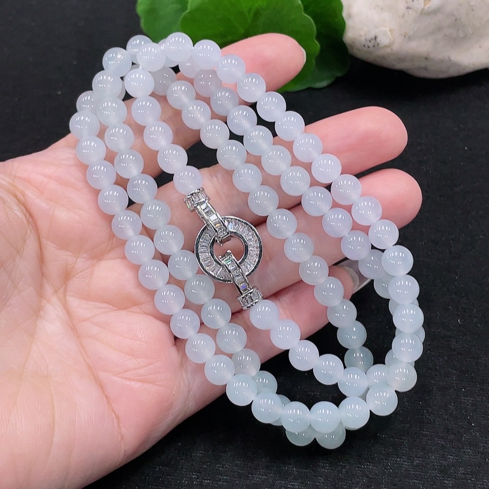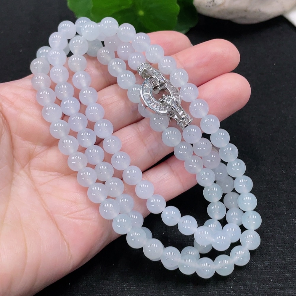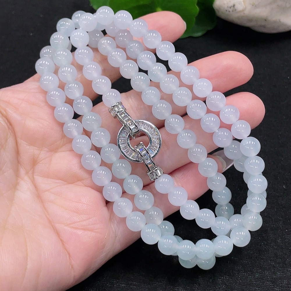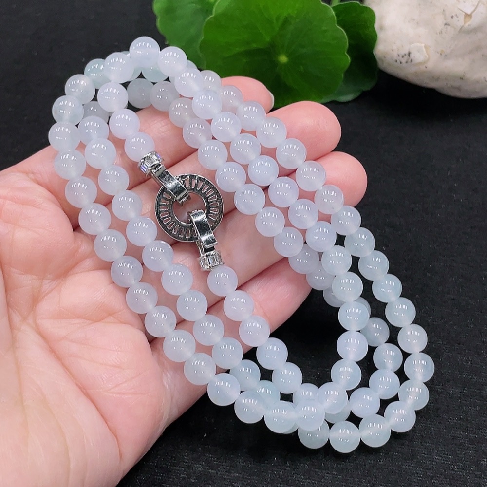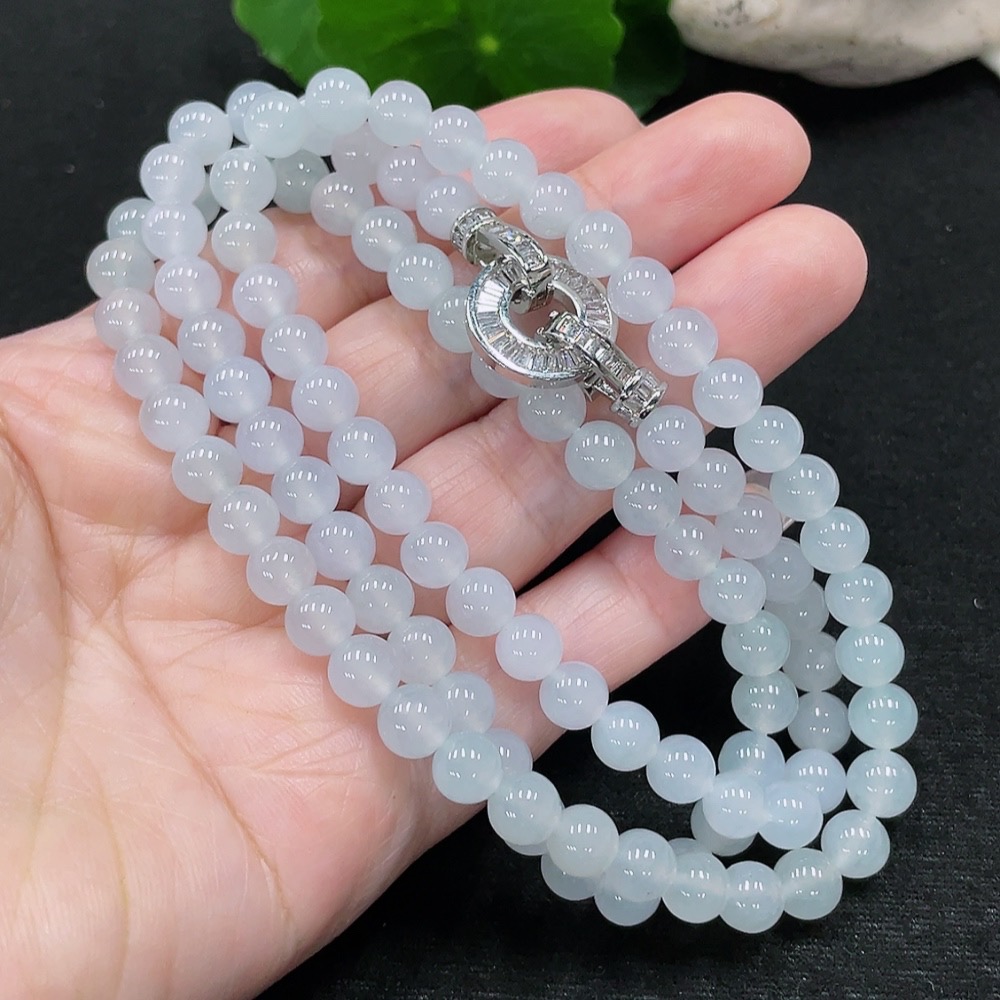 Jadeite Bead Necklace Approx. 6.6mm Total Weight About 53.6g (Non-Gold-Inlaid)
