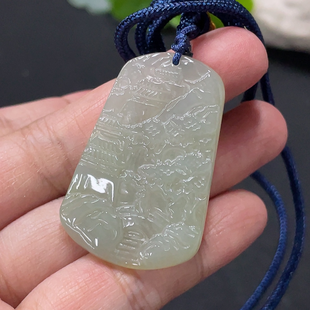 Jadeite Landscape Pendant, Total Weight Approx. 11g