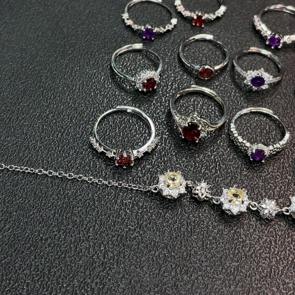 Trezaar - Garnet + Crystal Jewelry Non-Gold Total Weight Approx. 28.33g Sell as a Lot