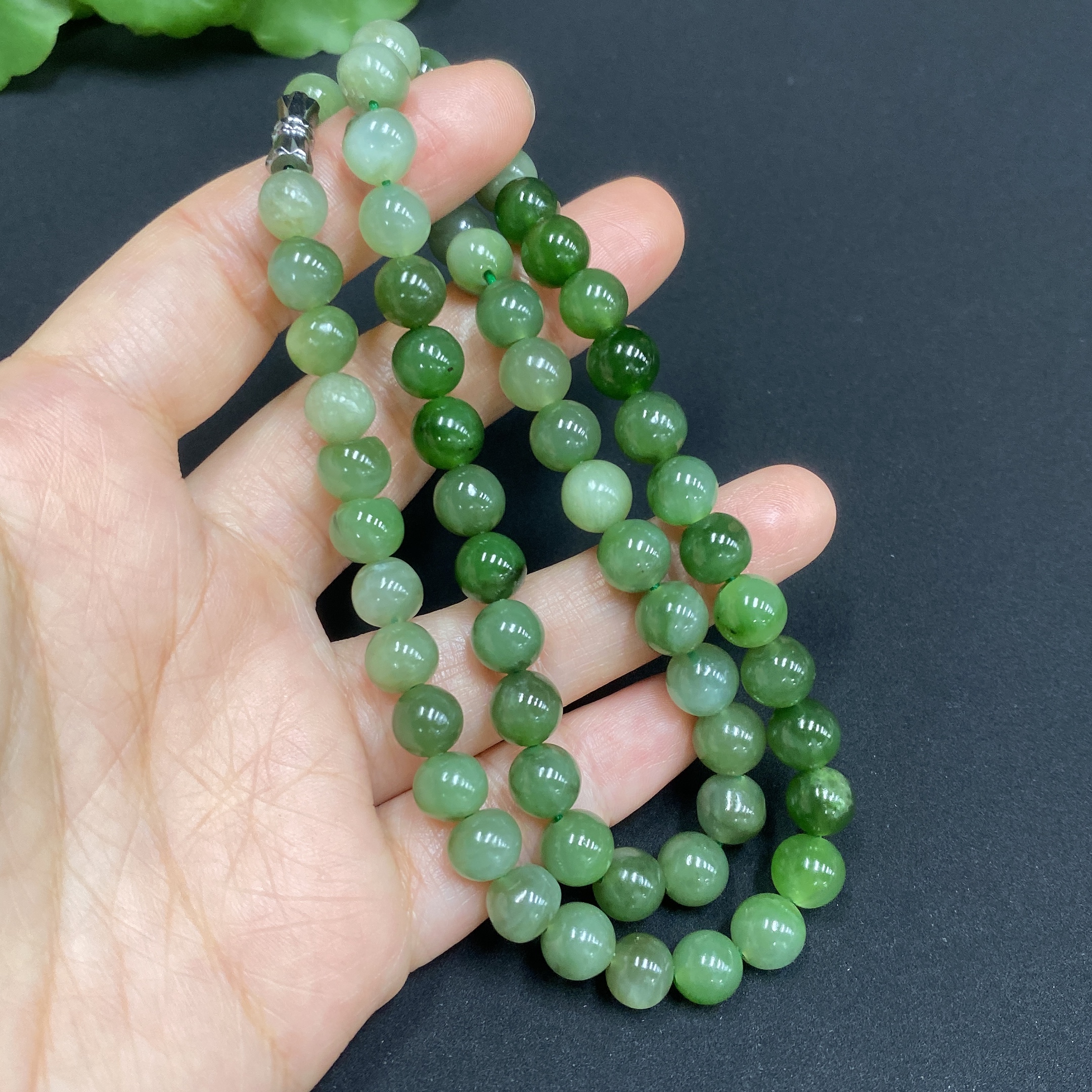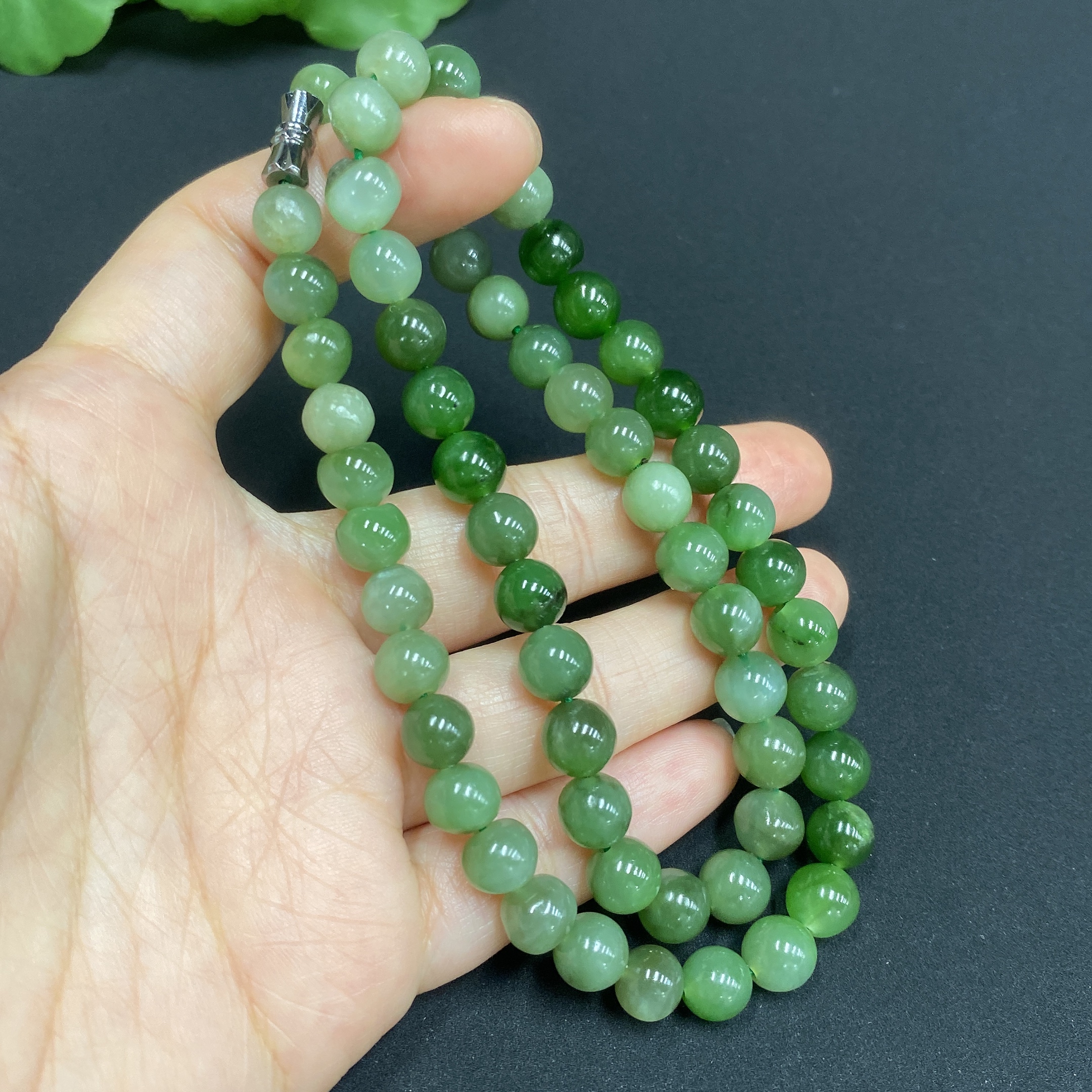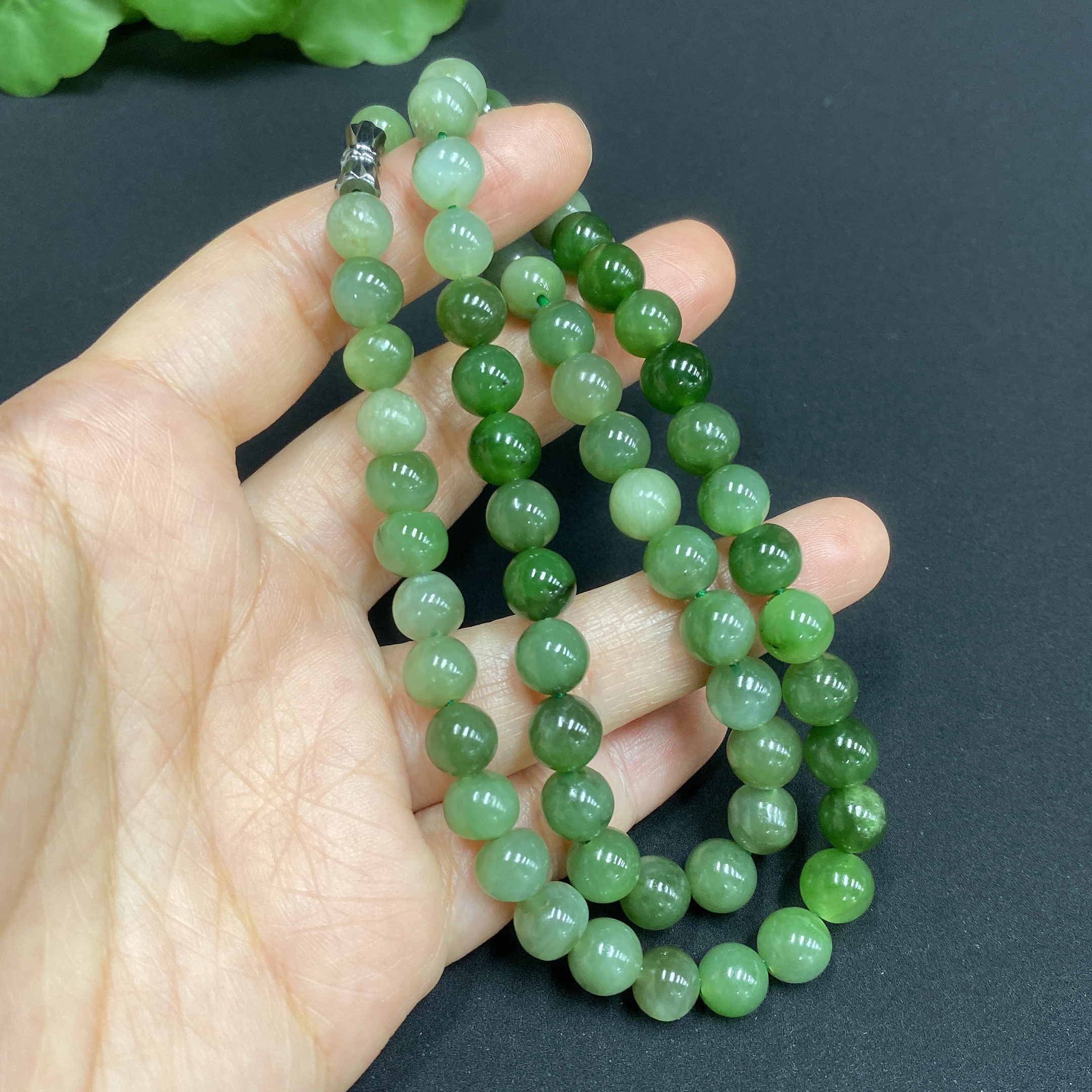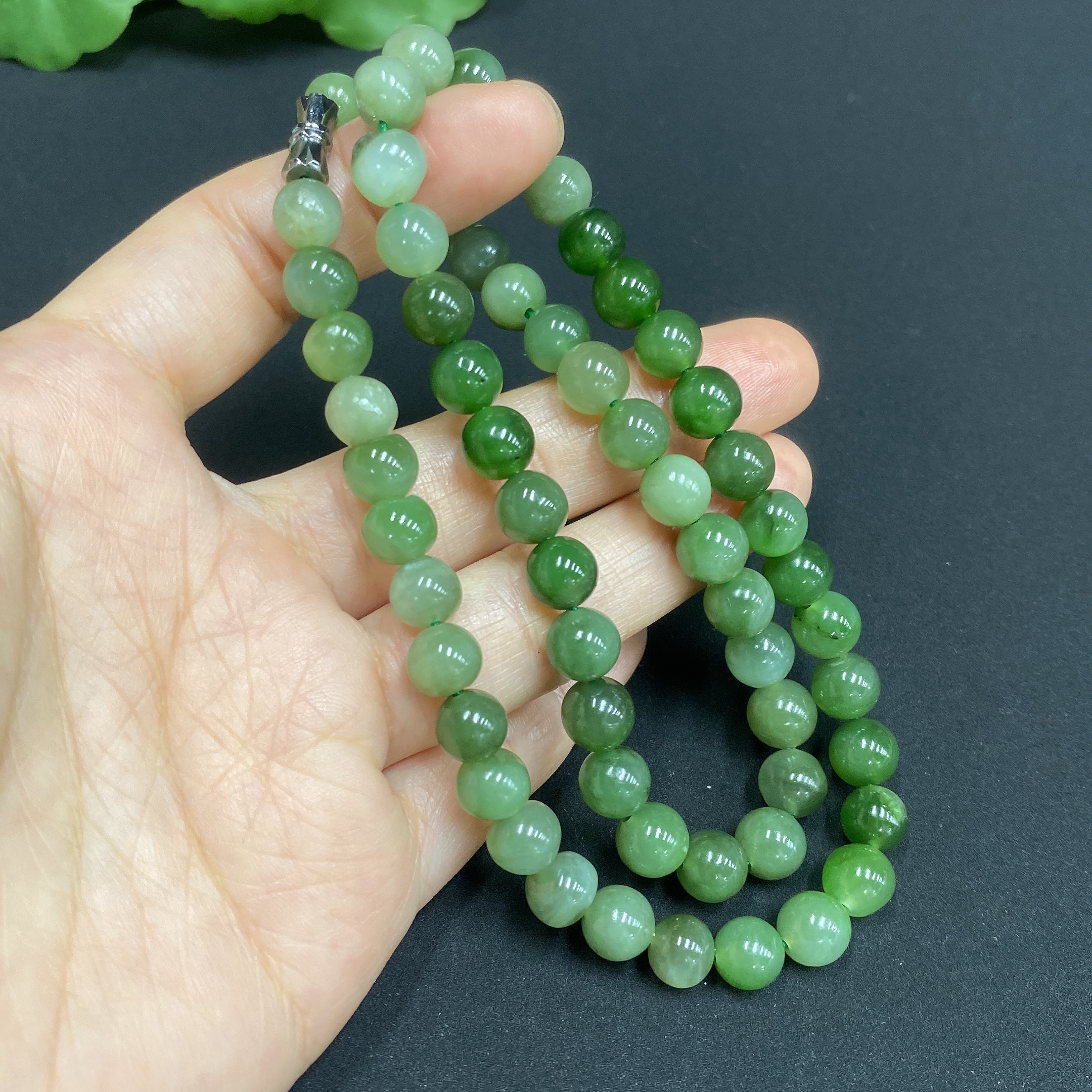 Hetian Jade Bead Necklace Approx.7mm Total Weight About 39g