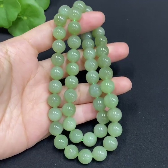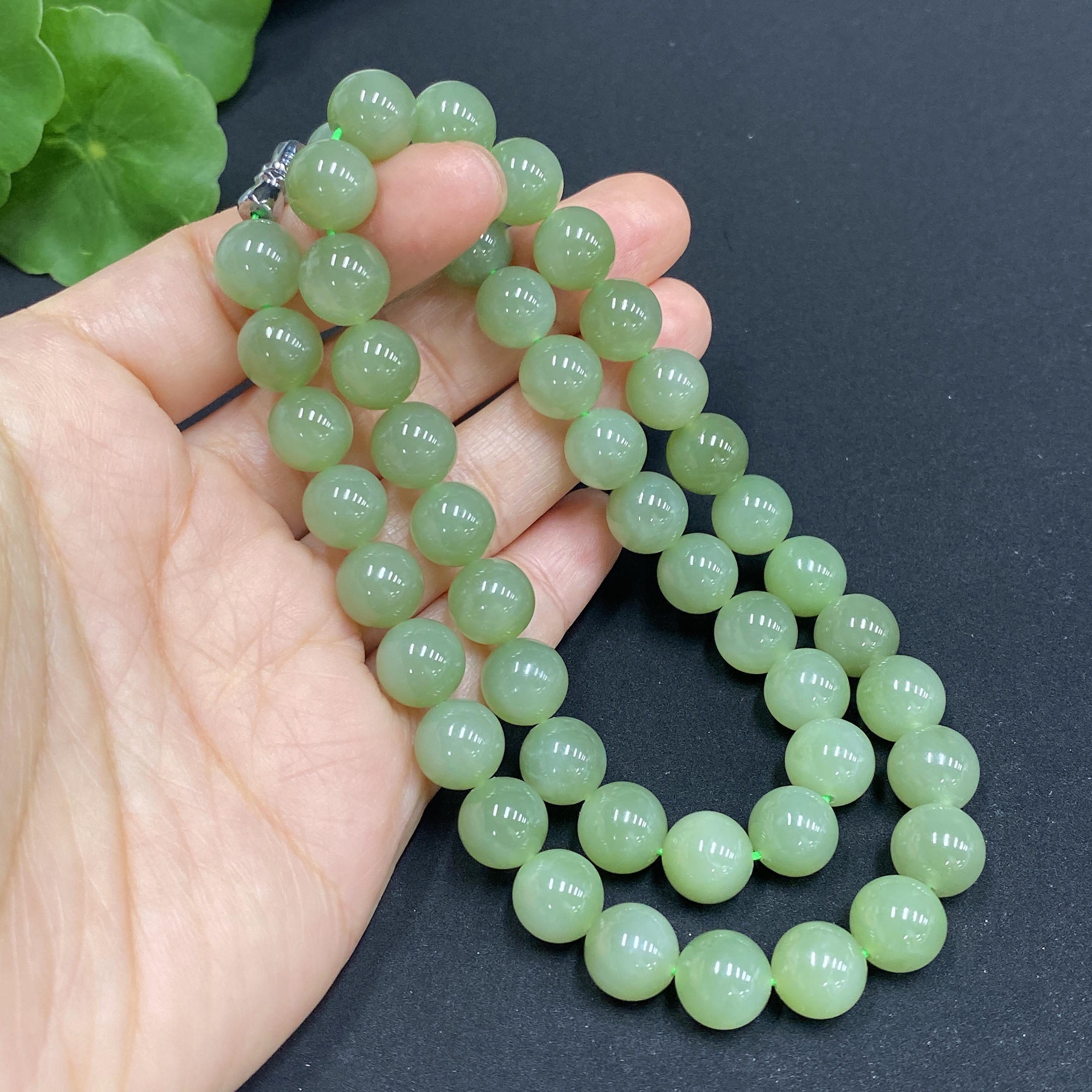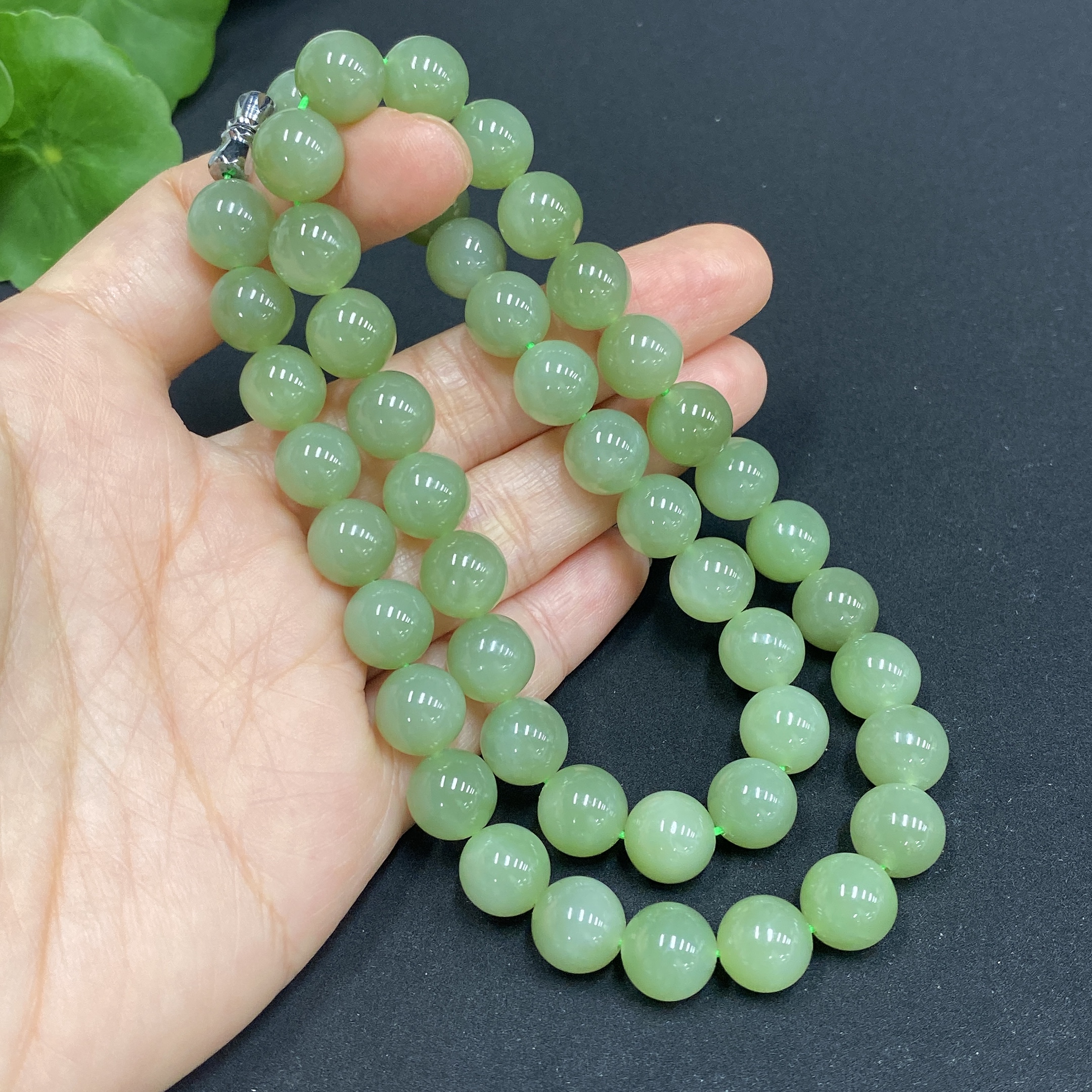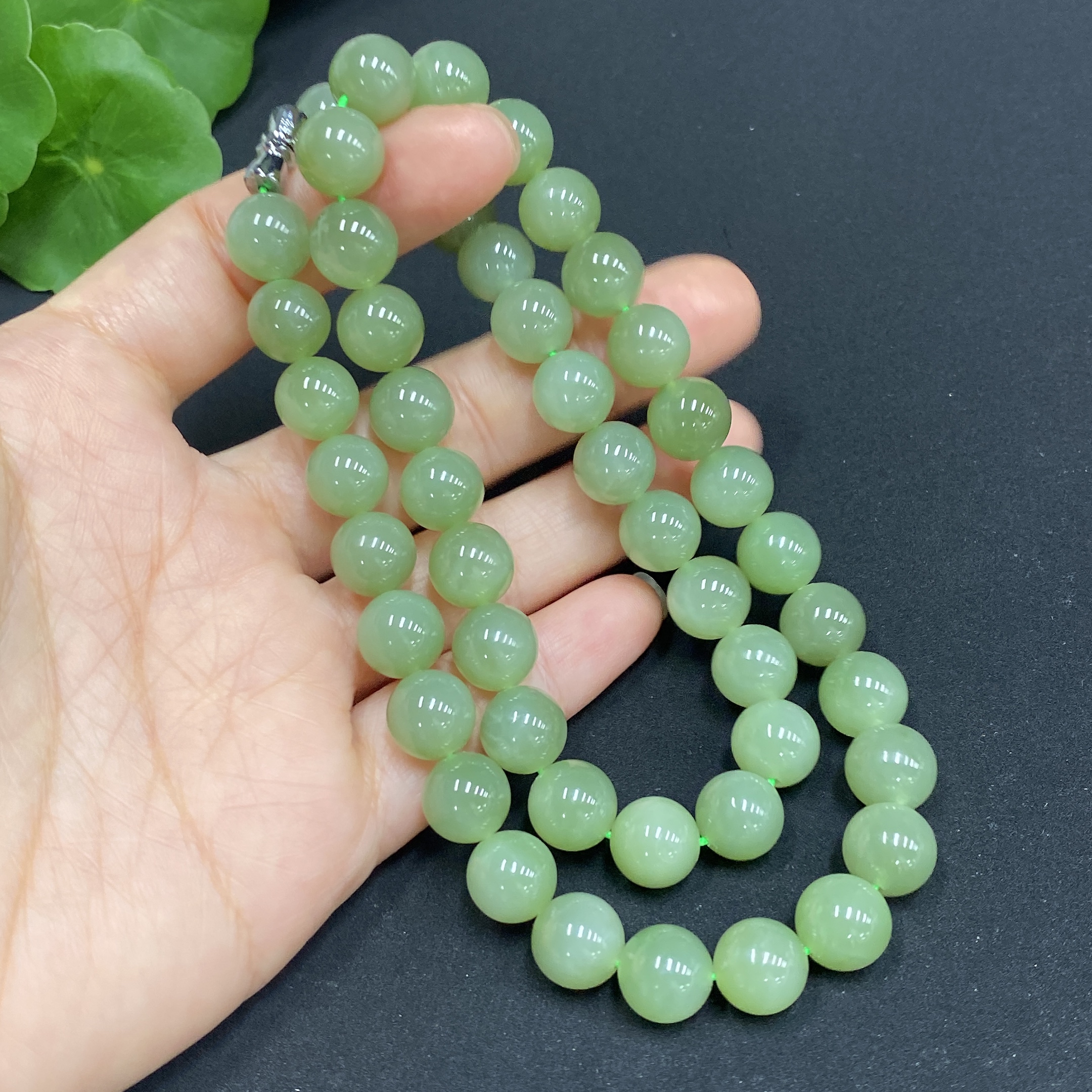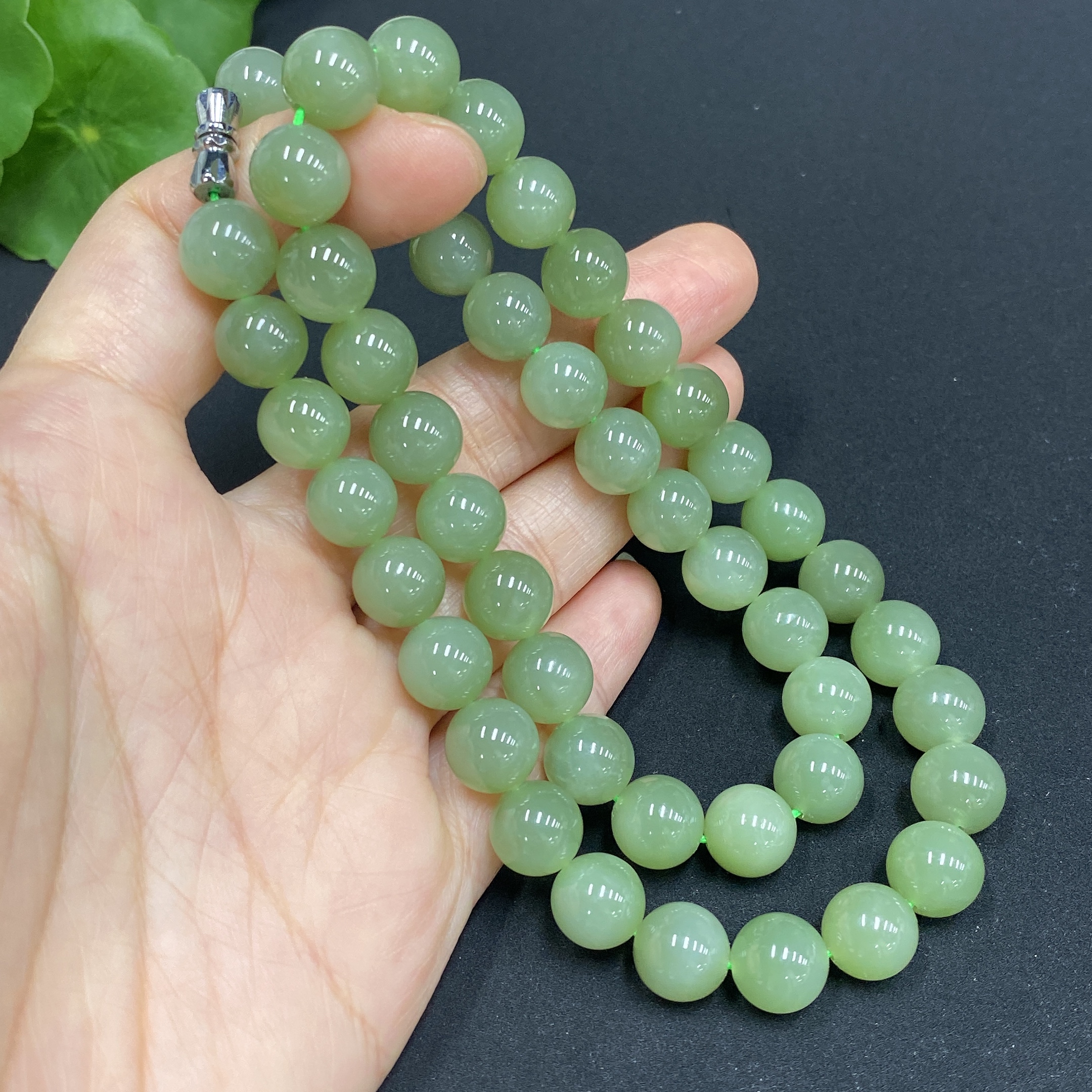 Hetian Jade Bead Necklace, Approx. 9.3mm, Total Weight Approx. 64g