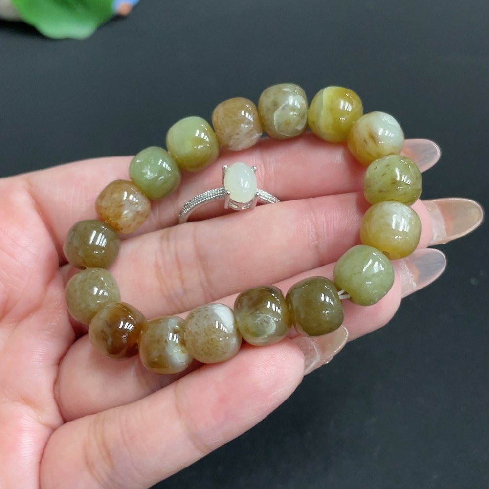 Hetian Jade Bracelet Inlaid with Adjustable Ring Total Weight Approx. 28.7g Non-Gold