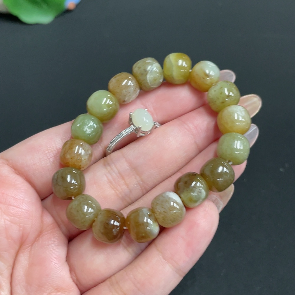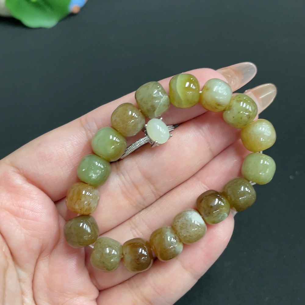 Hetian Jade Bracelet Inlaid with Adjustable Ring Total Weight Approx. 28.7g Non-Gold