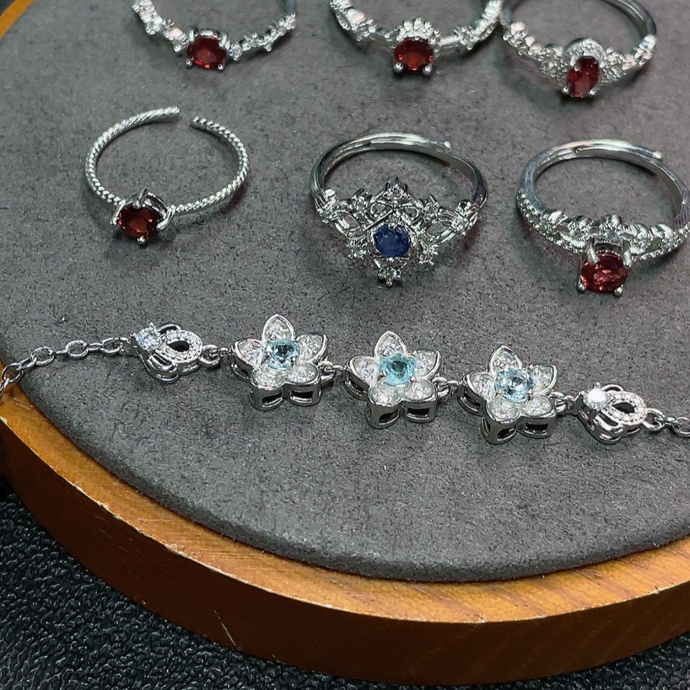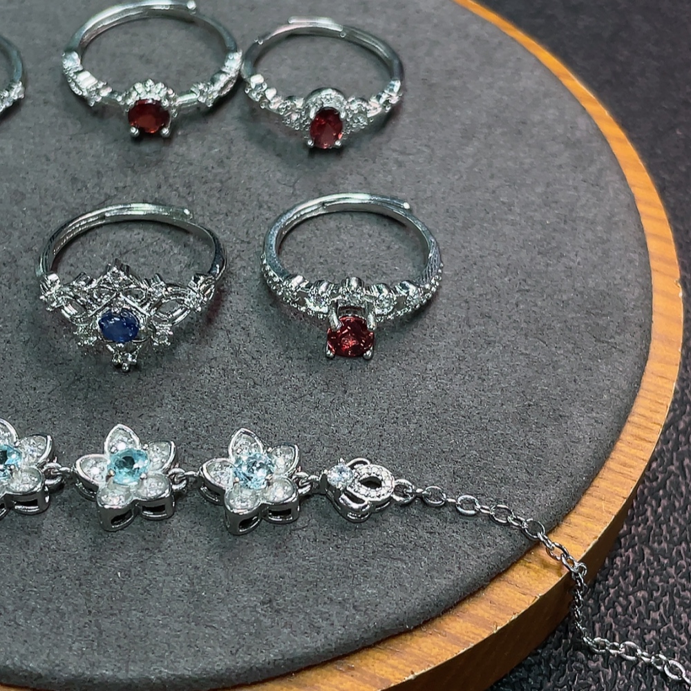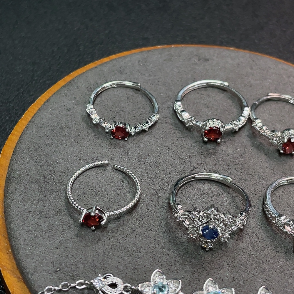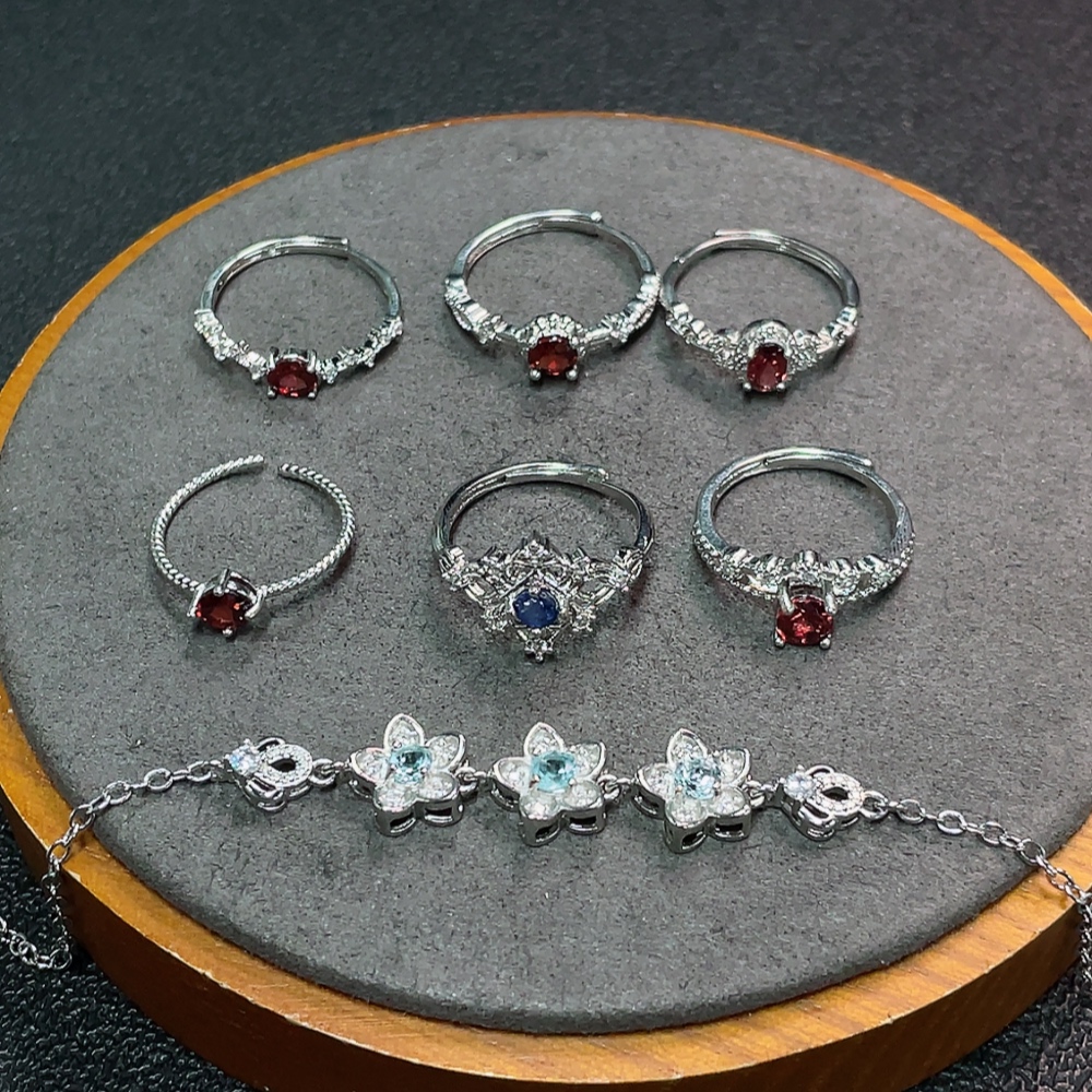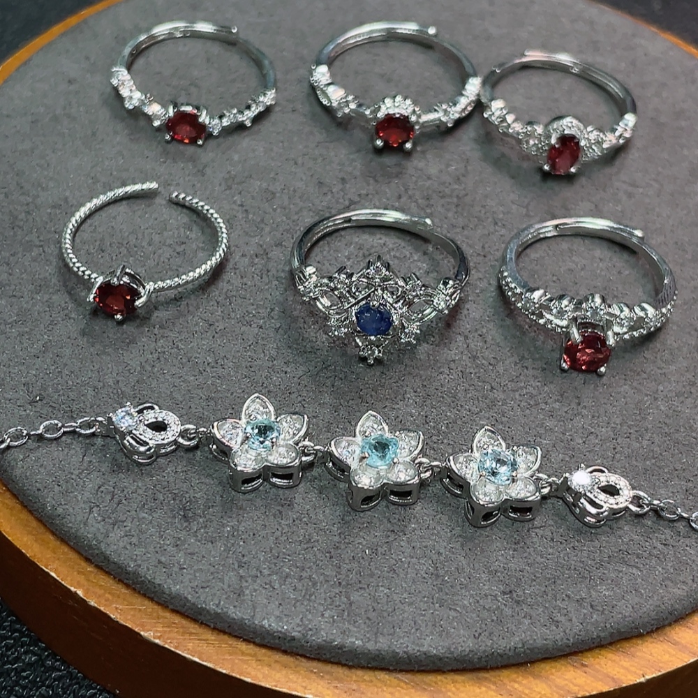 Sapphire + Garnet + Topaz Jewelry with Undetermined Color Origin, Non-Gold, Total Weight Approx. 14.35g, Sell as a Lot