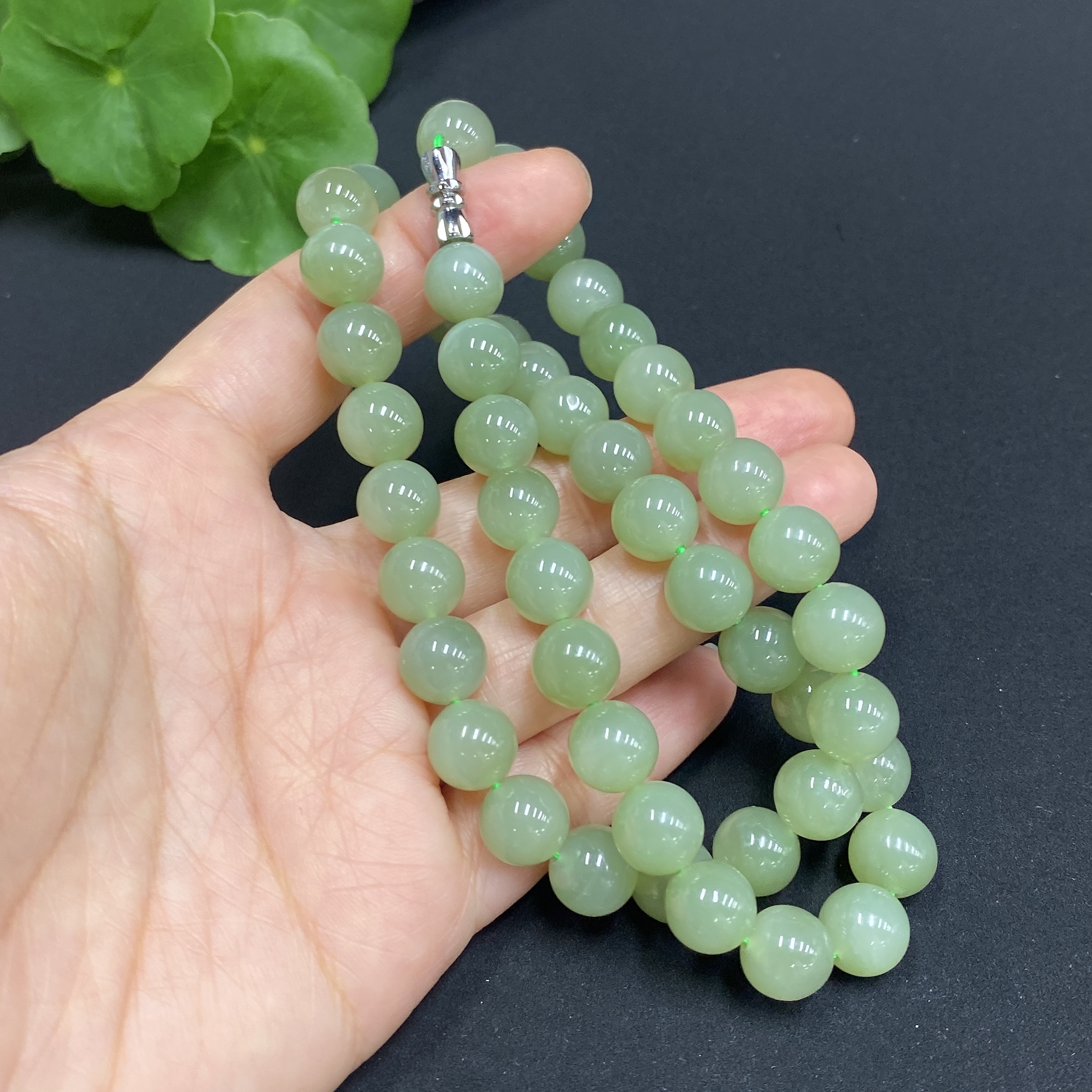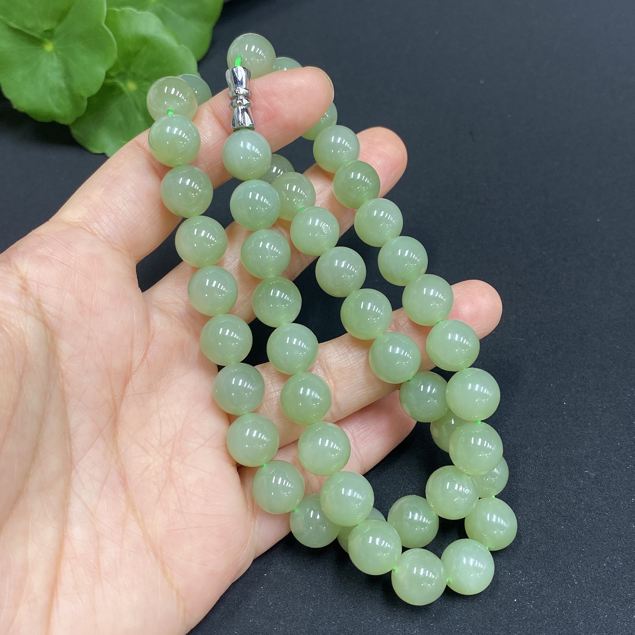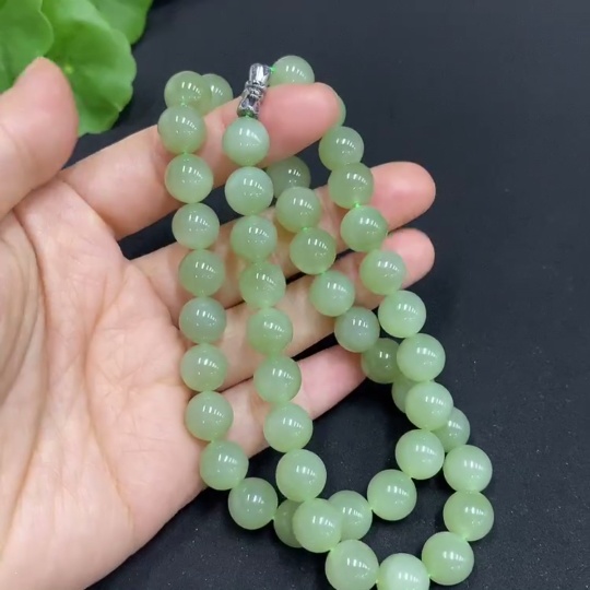 Hetian Jade Bead Necklace, approx. 9.3mm, total weight approx. 64.5g