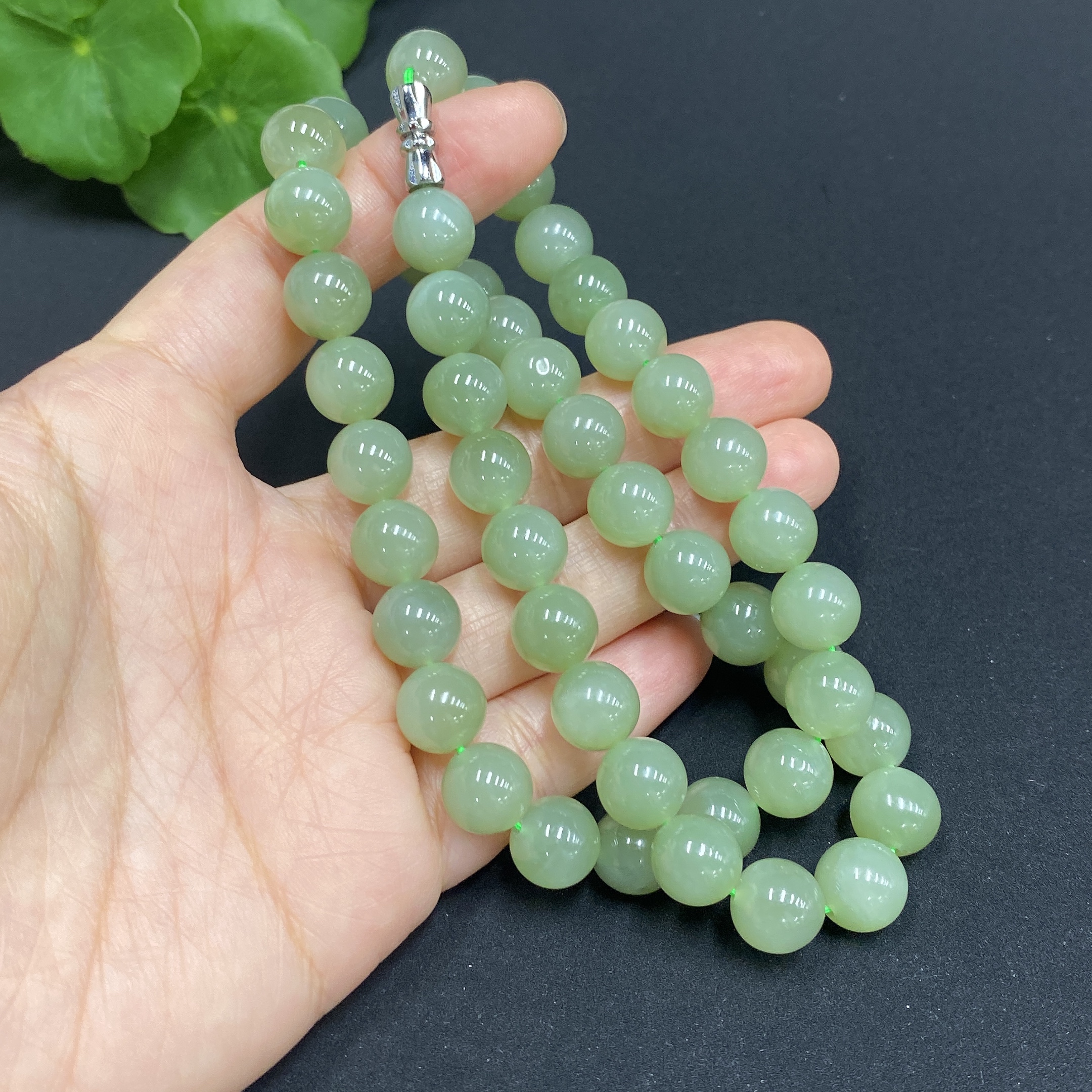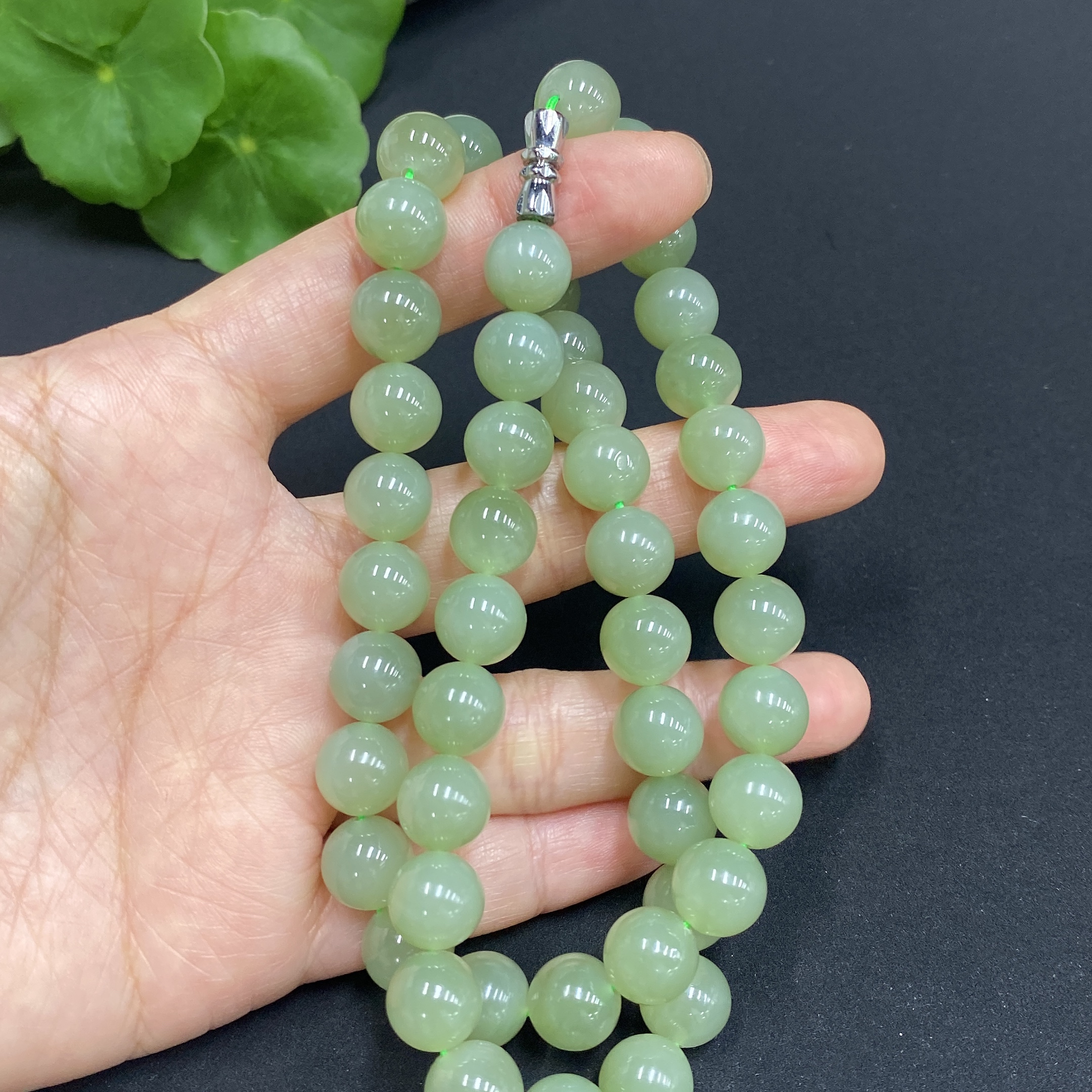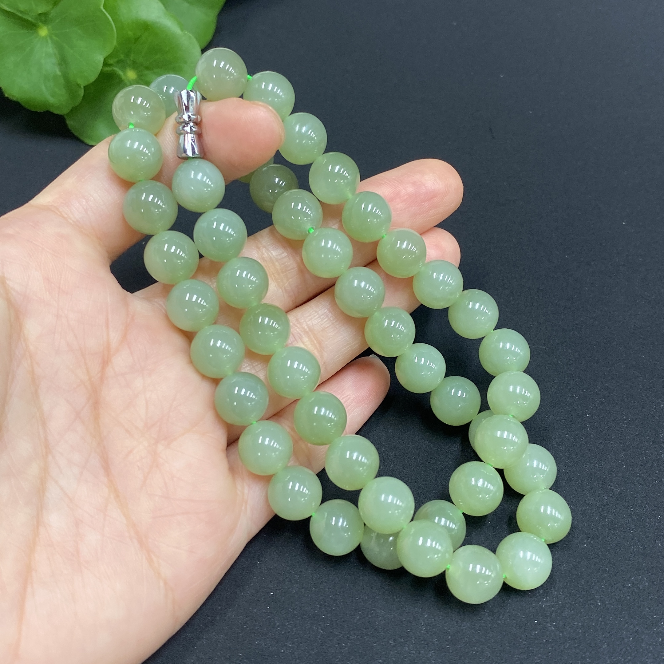 Hetian Jade Bead Necklace, approx. 9.3mm, total weight approx. 64.5g