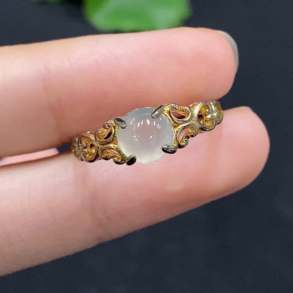 Jadeite Cabochon Ring, Non-Gold Setting, Adjustable, Total Weight Approx. 1.84g